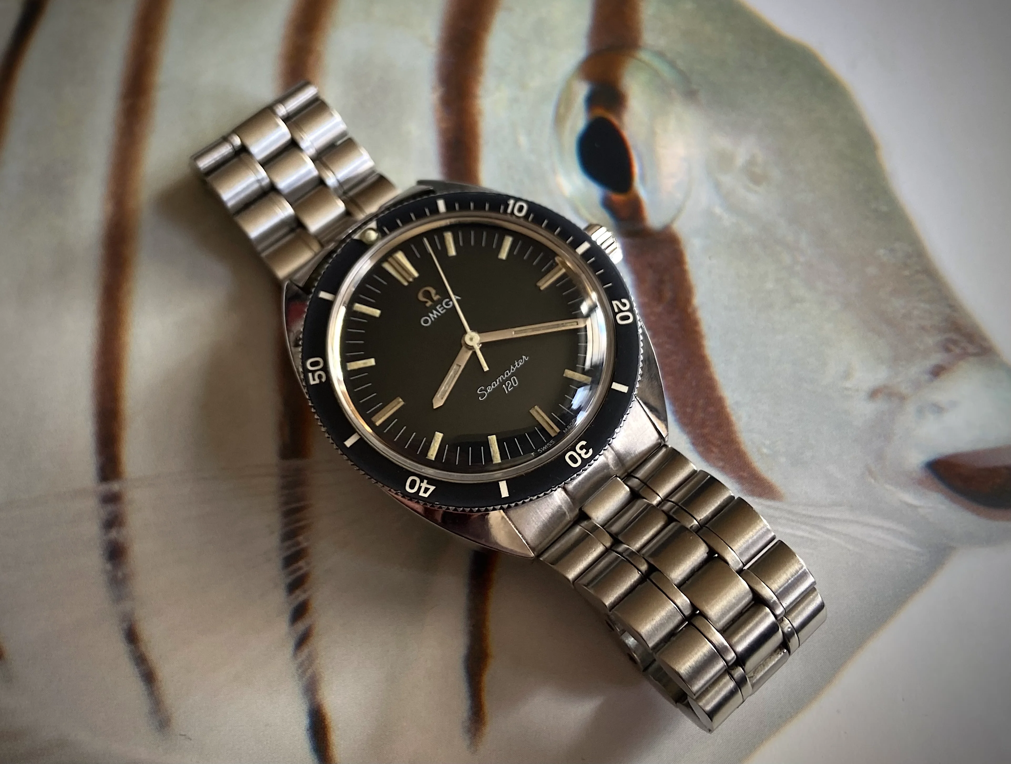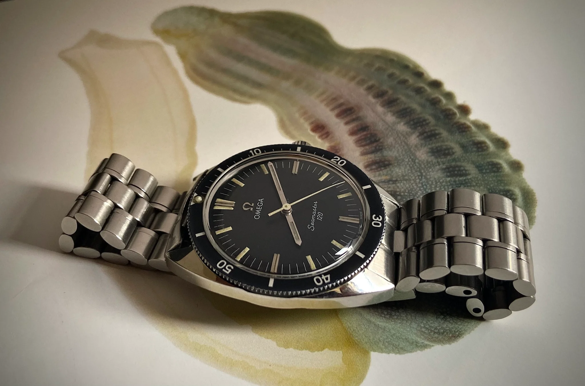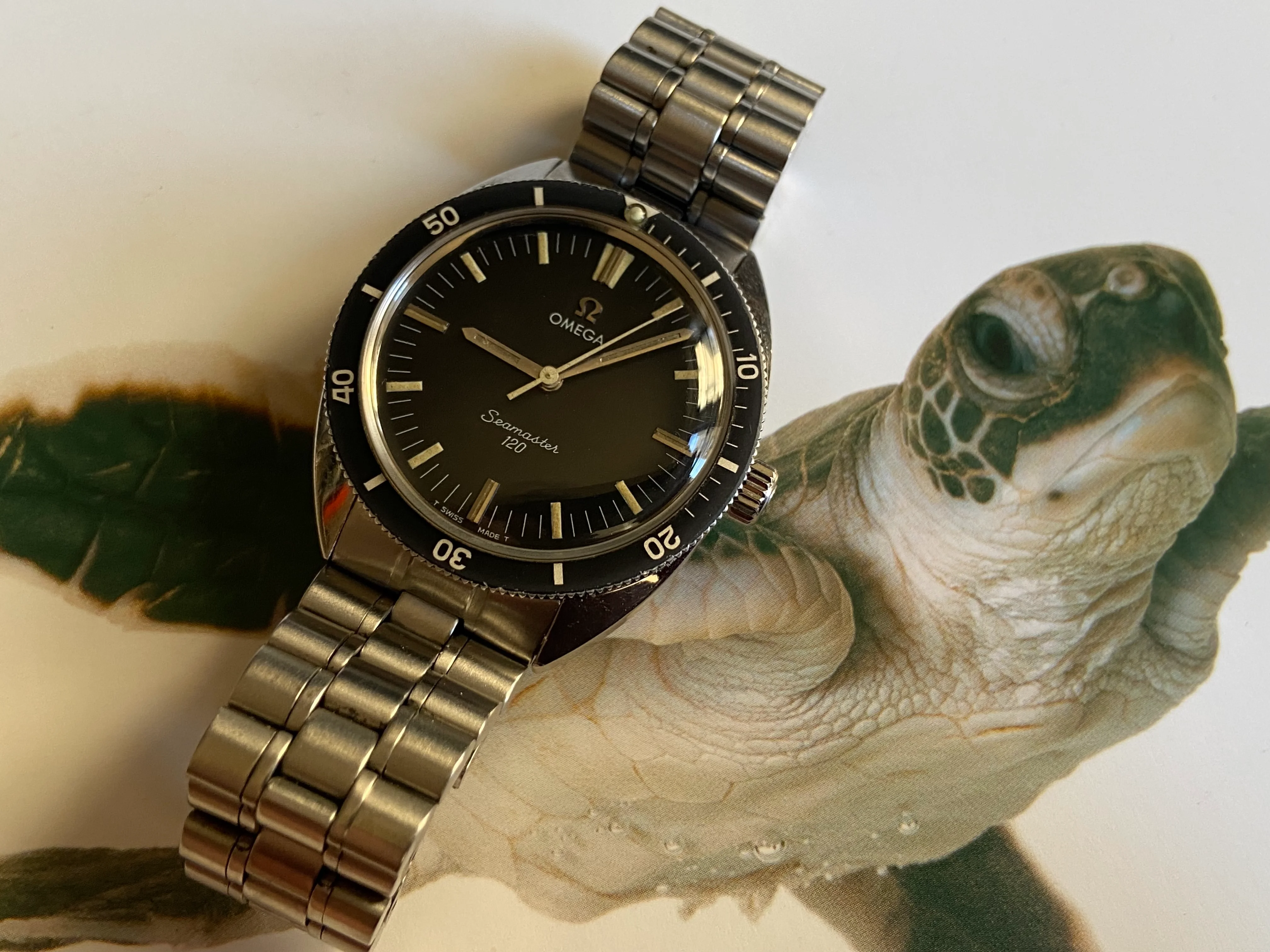 Posts 3,446 Likes 17,527 hmmmcamu ·Mar 20, 2025 1967 OMEGA Seamaster 120 Skin Diver cal. 601 manual wind no date paired with No.11, STAINLESS STEEL, 1098, Ω OMEGA bracelet and 19MM ref.# 547 end links. Edited: Mar 21, 2025