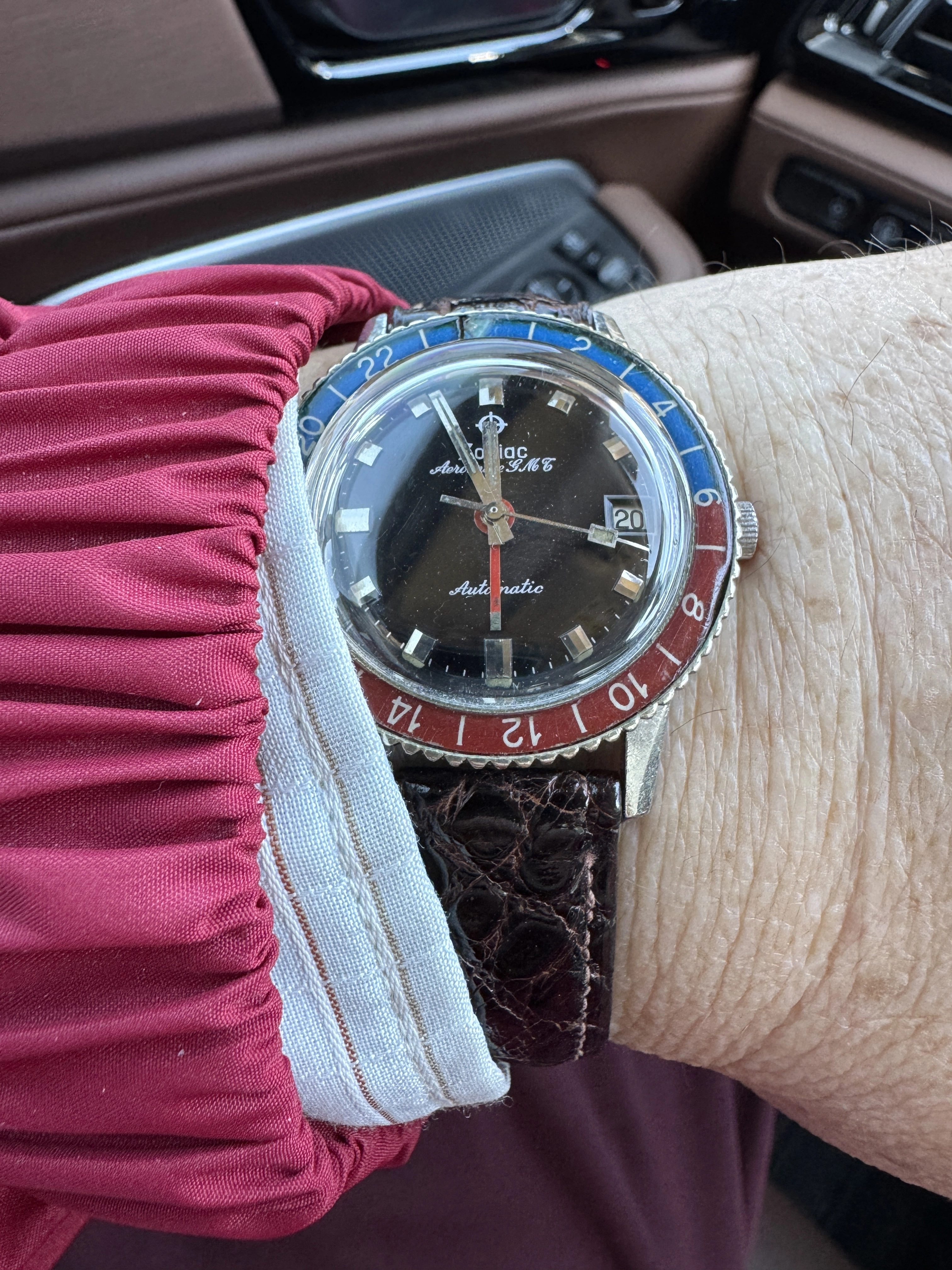 Posts 3,446 Likes 17,528 hmmmcamu ·Mar 20, 2025 TexOmega Zodiac Aerospace GMT Pepsi Zodiac Aerospace GMT Aviator / Diver 660ft Cal. 75 Automatic Hacking ( 17 Jewel ) Snap down Hermetic case.