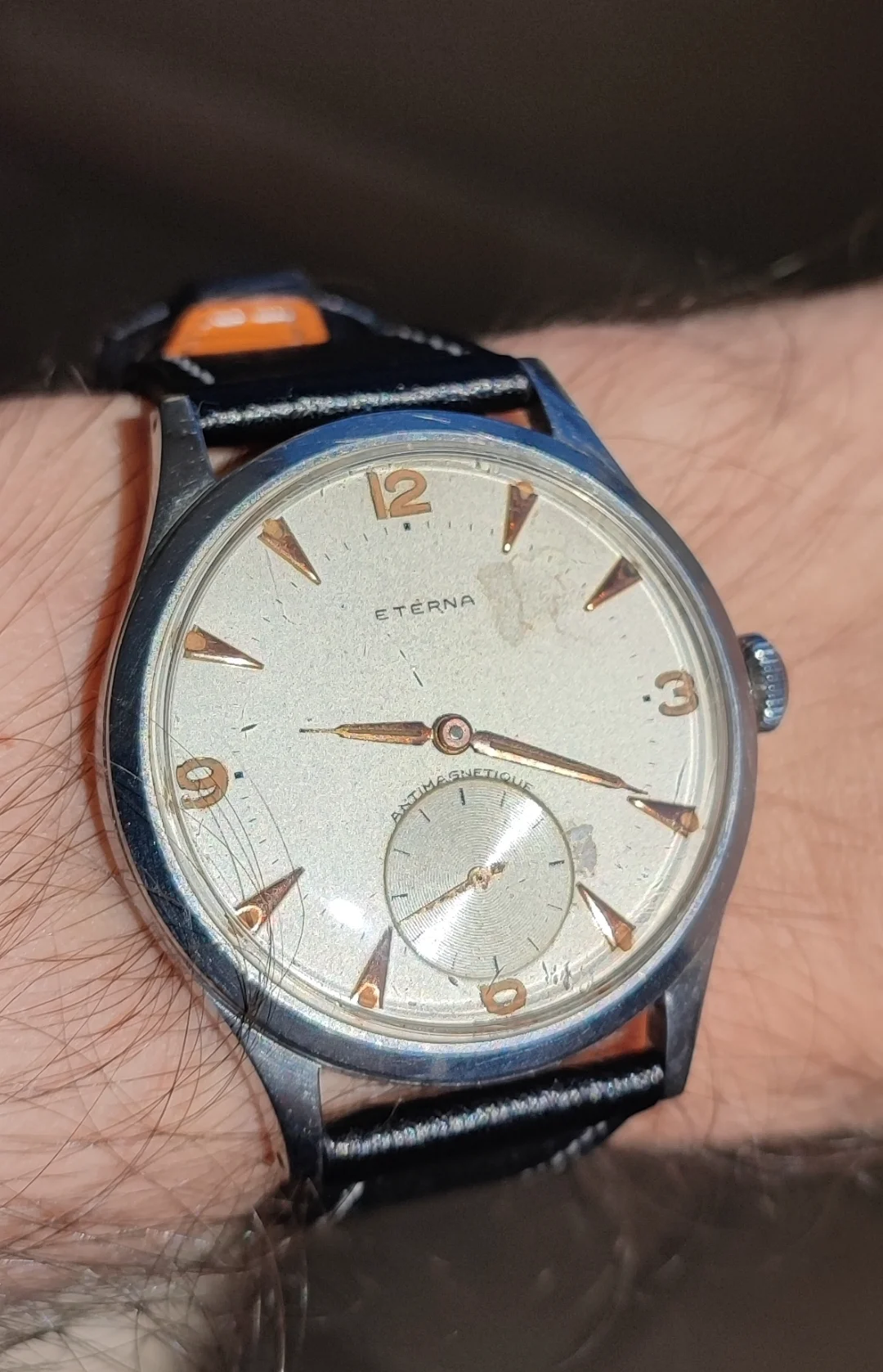 Posts 331 Likes 3,289 gilb12 ·Mar 21, 2025 Morning with Eterna Antimagnetique, 852 , 38 mm (two points in the Dial , but overall very good condition imho) Edited: Mar 21, 2025