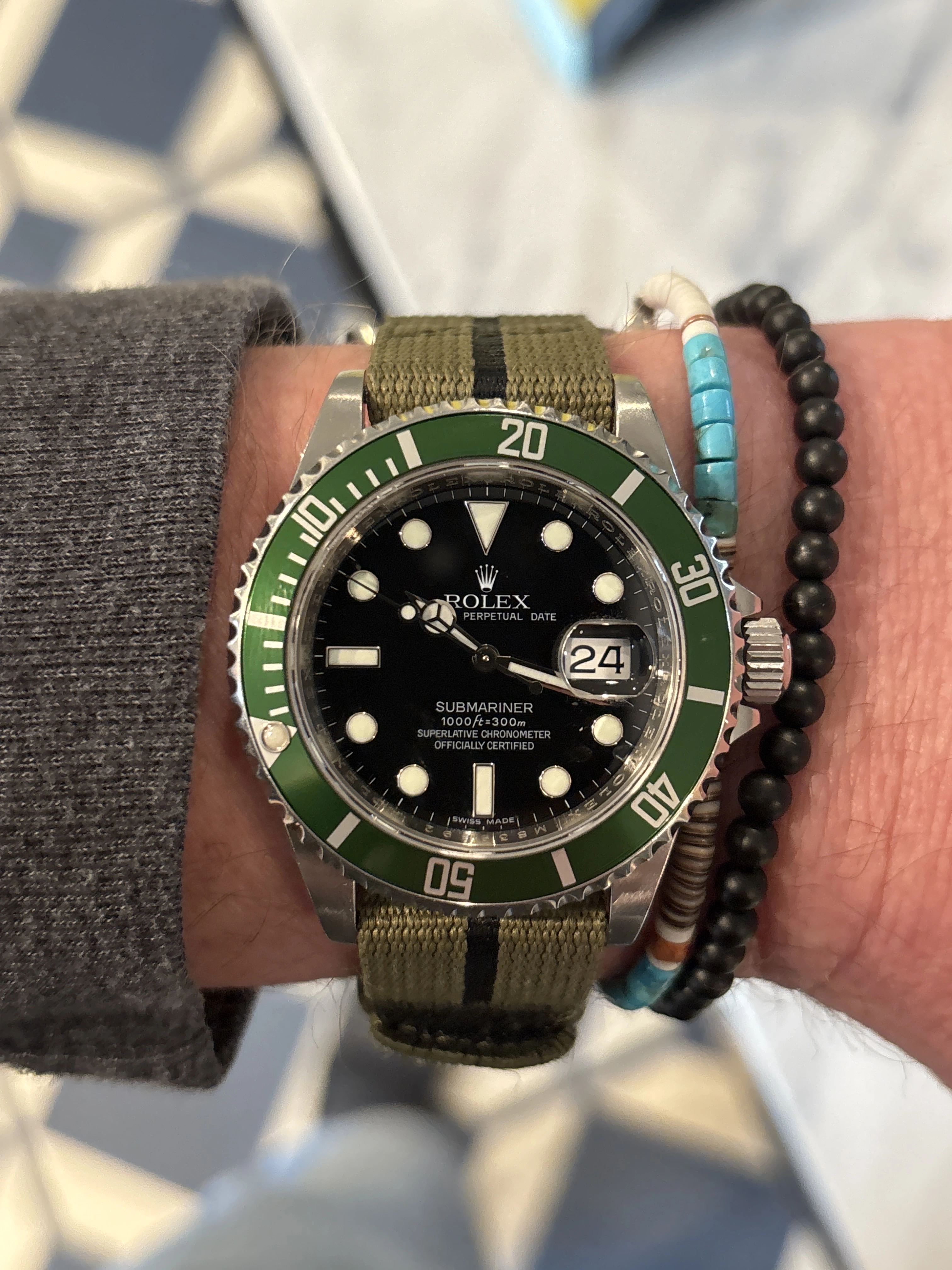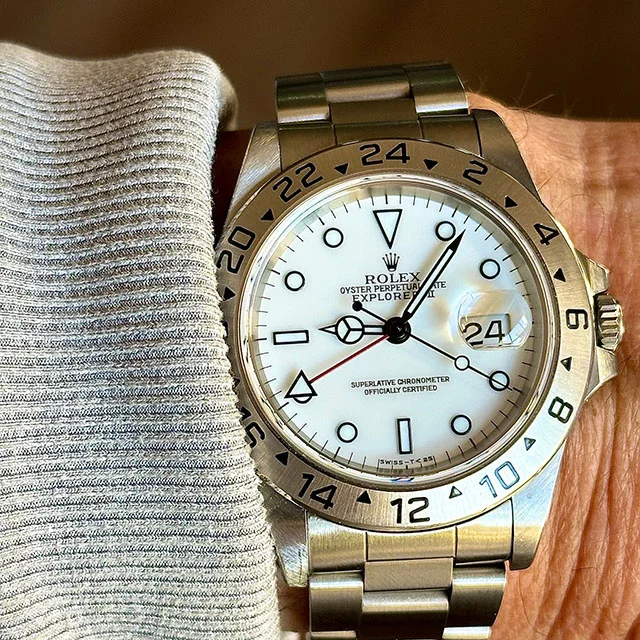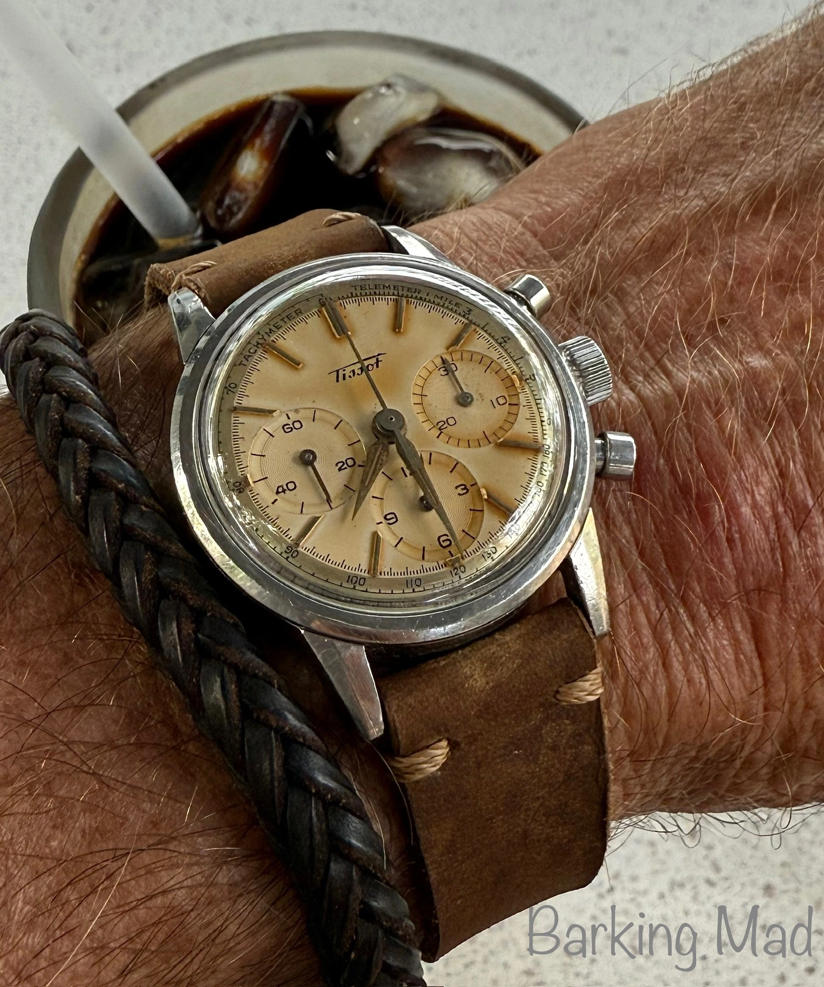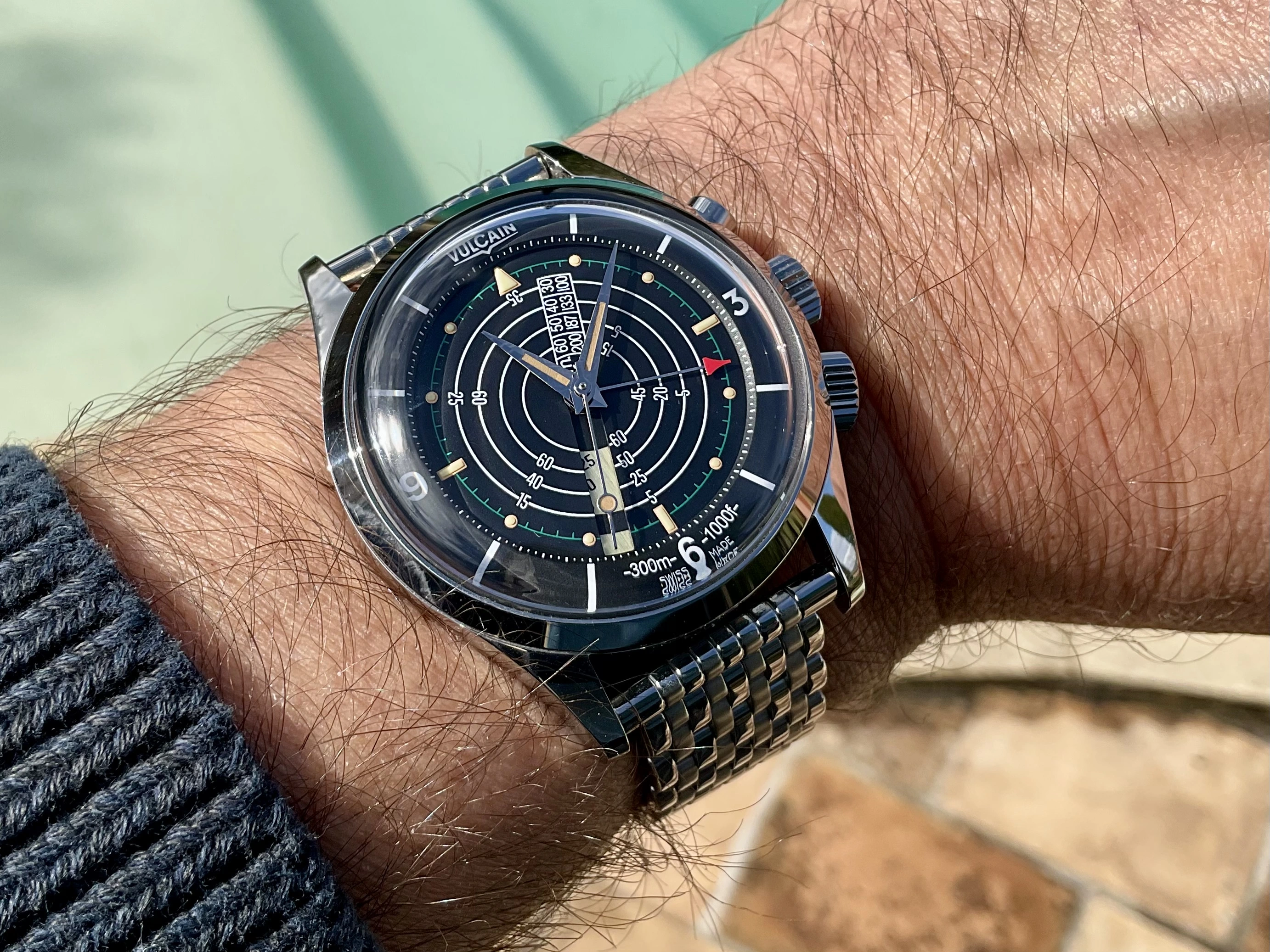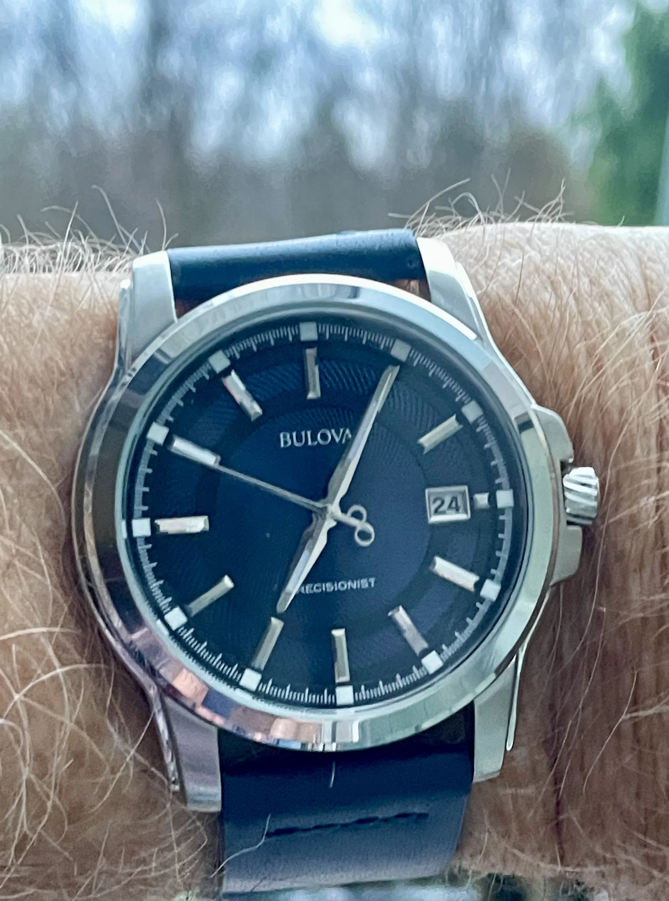 This one I haven’t worn for several years. For two reasons. Several years ago, it quit! I tried a new cell, to no avail. So it has sat in my vault until last week when I happened to look at it, to find it was running! This one is likely from the early to mid-1970s, before Omega was absorbed by Swatch. This one is a stepper motor quartz. It came my way when the husband of a friend whose watch it was, passed away. Nobody in the family wanted it, and she wanted to find a good home for it. So she gave it to me. The bracelet is too tight a fit on my large wrist, so I likely won’t wear it very often.
