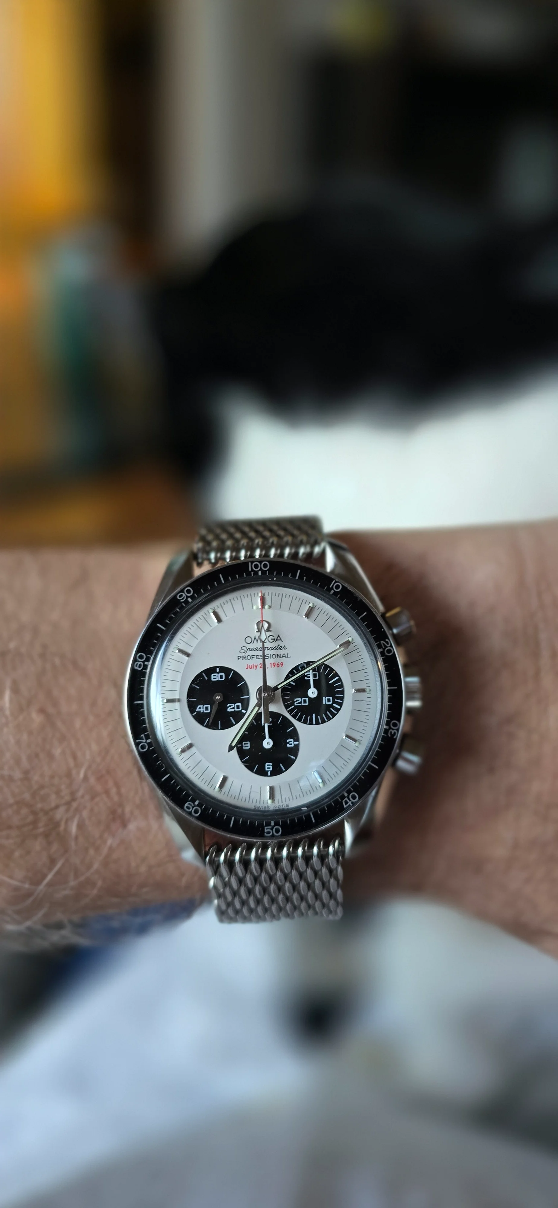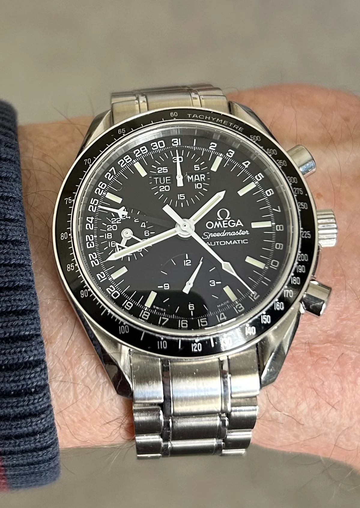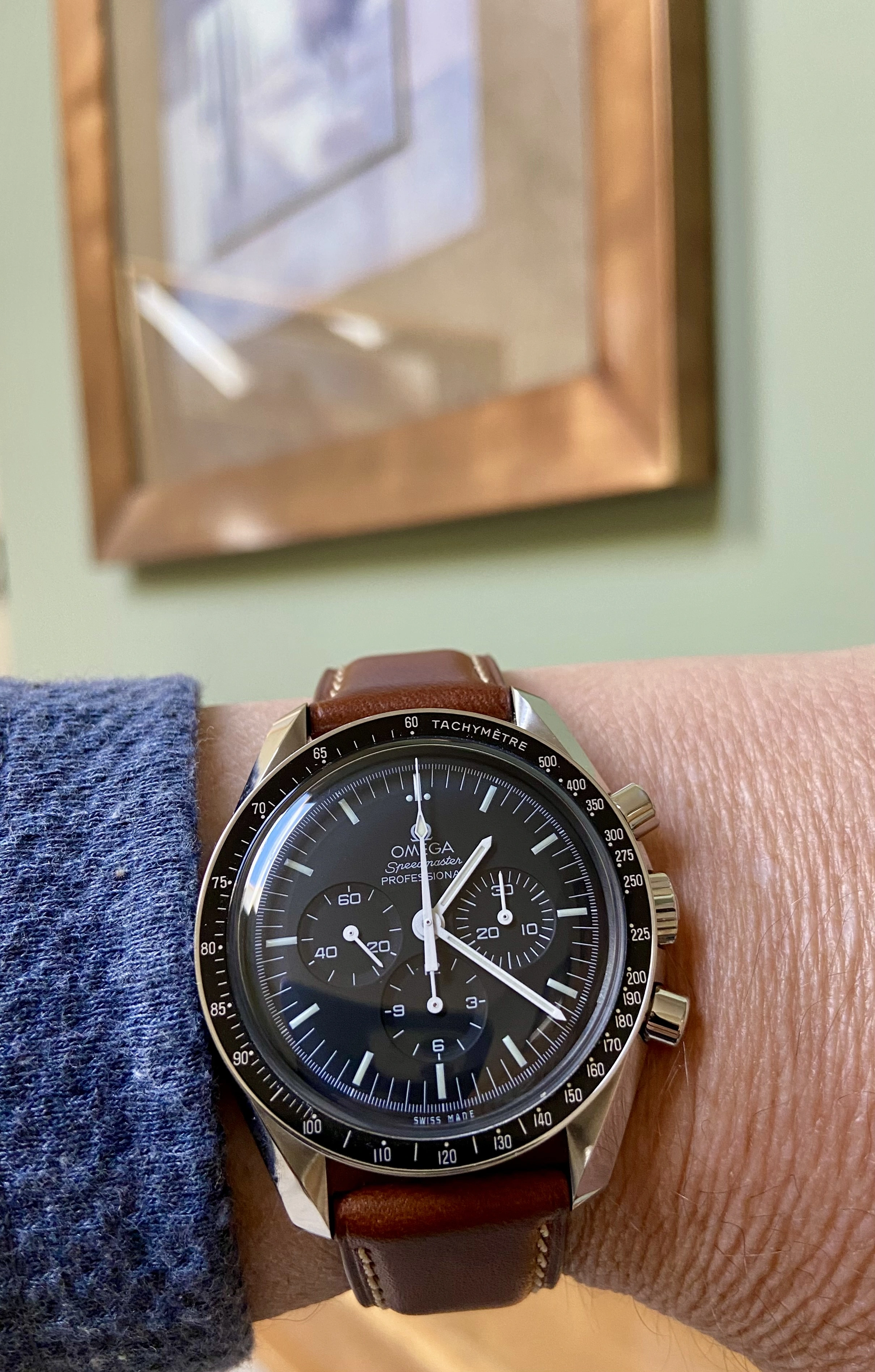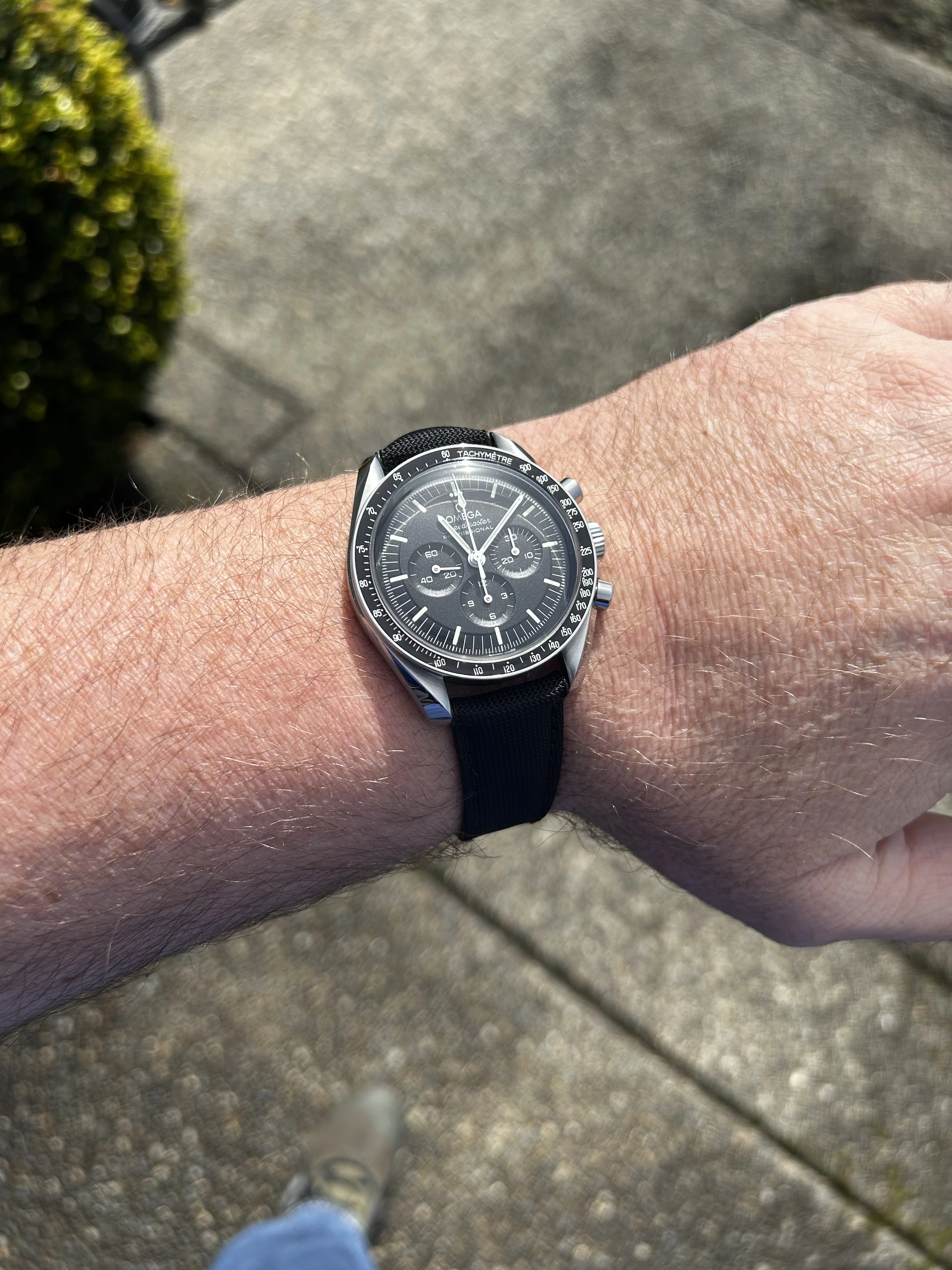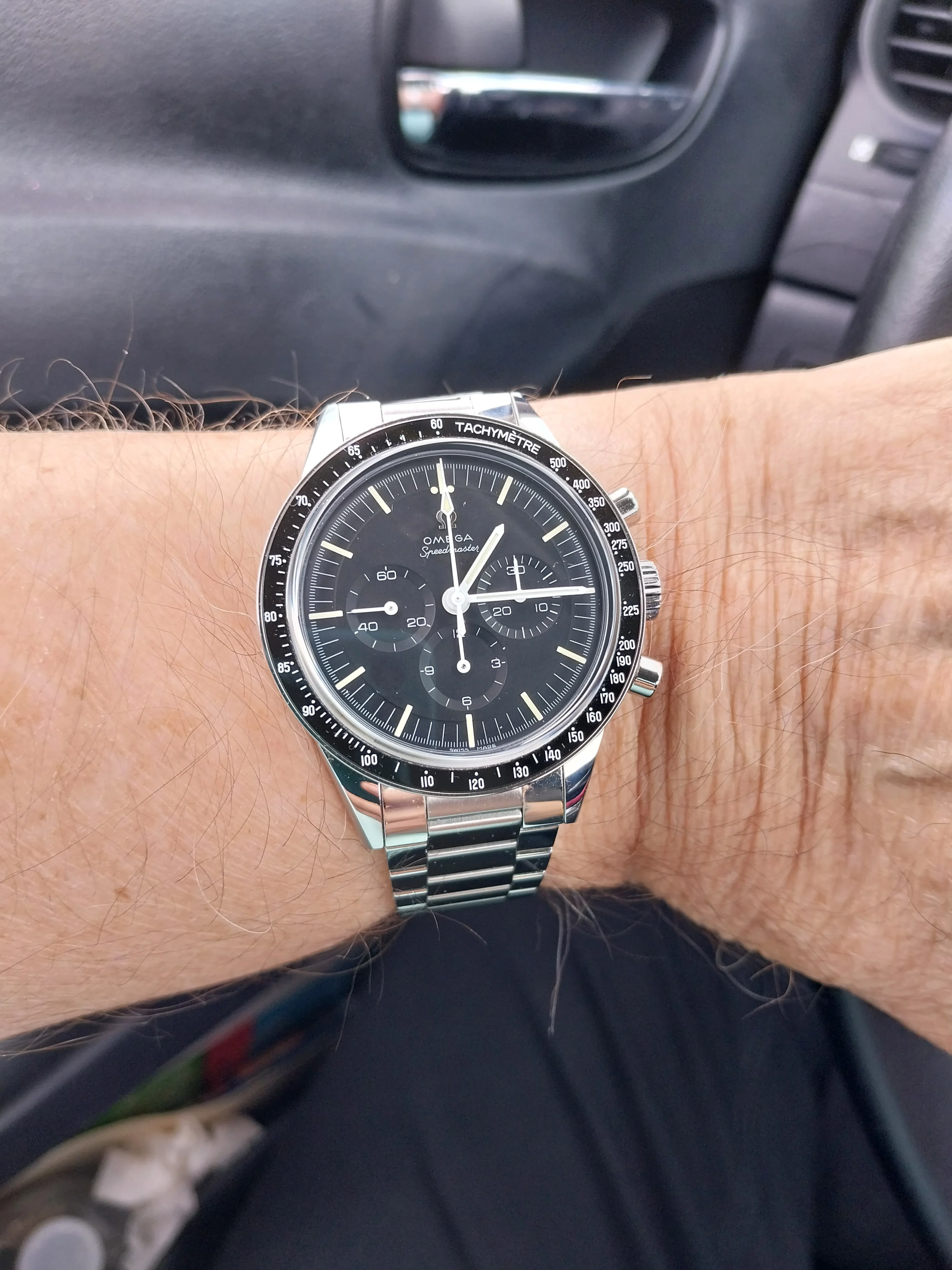 I've lost a bit of weight so I've had to take a link out of the 3 Speedmasters I have on bracelets, and it is always a tedious job with Omega bracelets with screws. Ed White 321 fits fine again. It's still the best steel Speedmaster Omega has made in the last 50+ years, imo. Just realized I've had this watch for three years now, got it on March 28, 2022. Time flies.