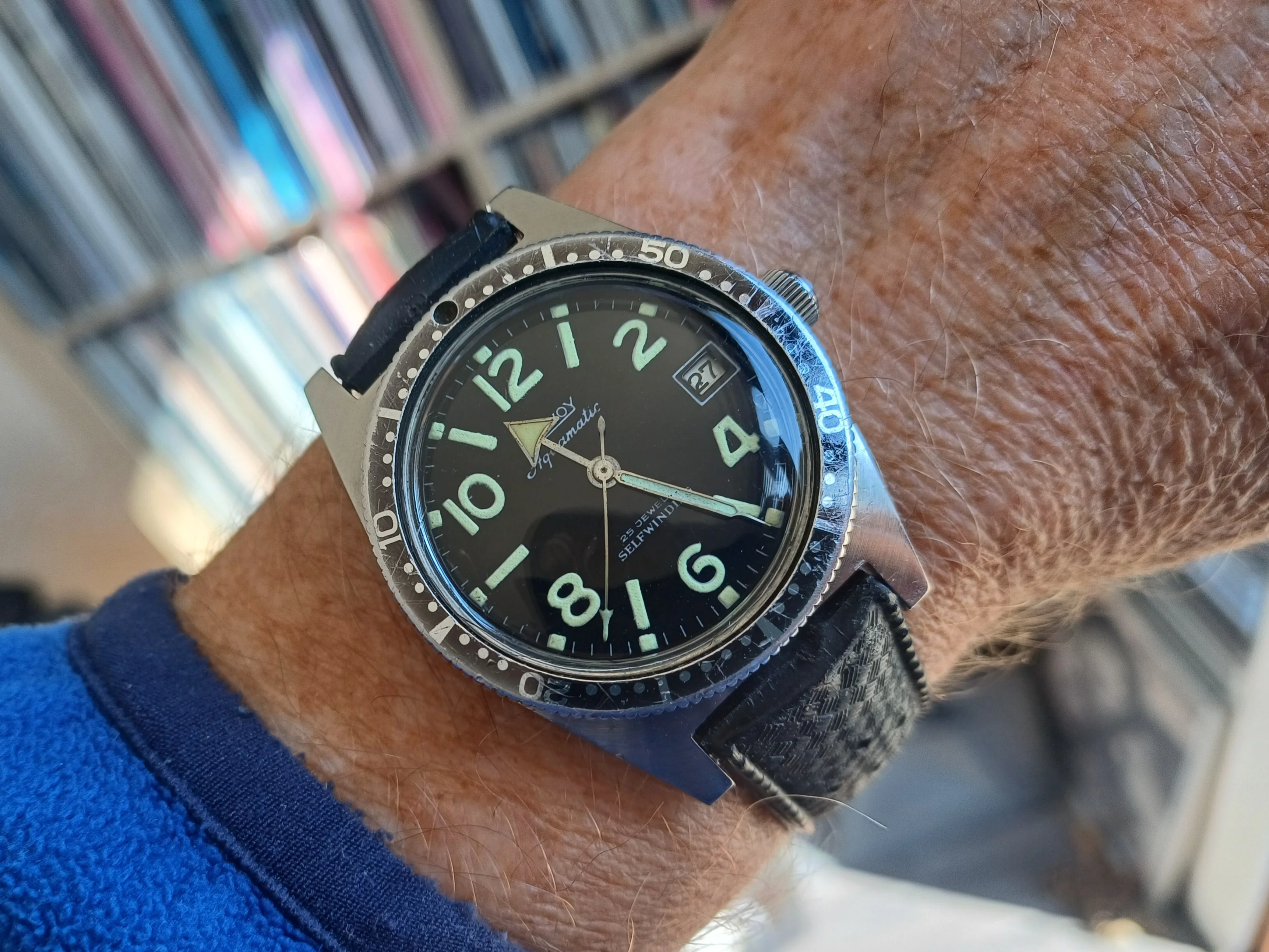 Savoy Aquamatic skin diver today , no history & can't find anymore detail about it . It doesn't get worn very often & spends far too much time sitting in a drawer .