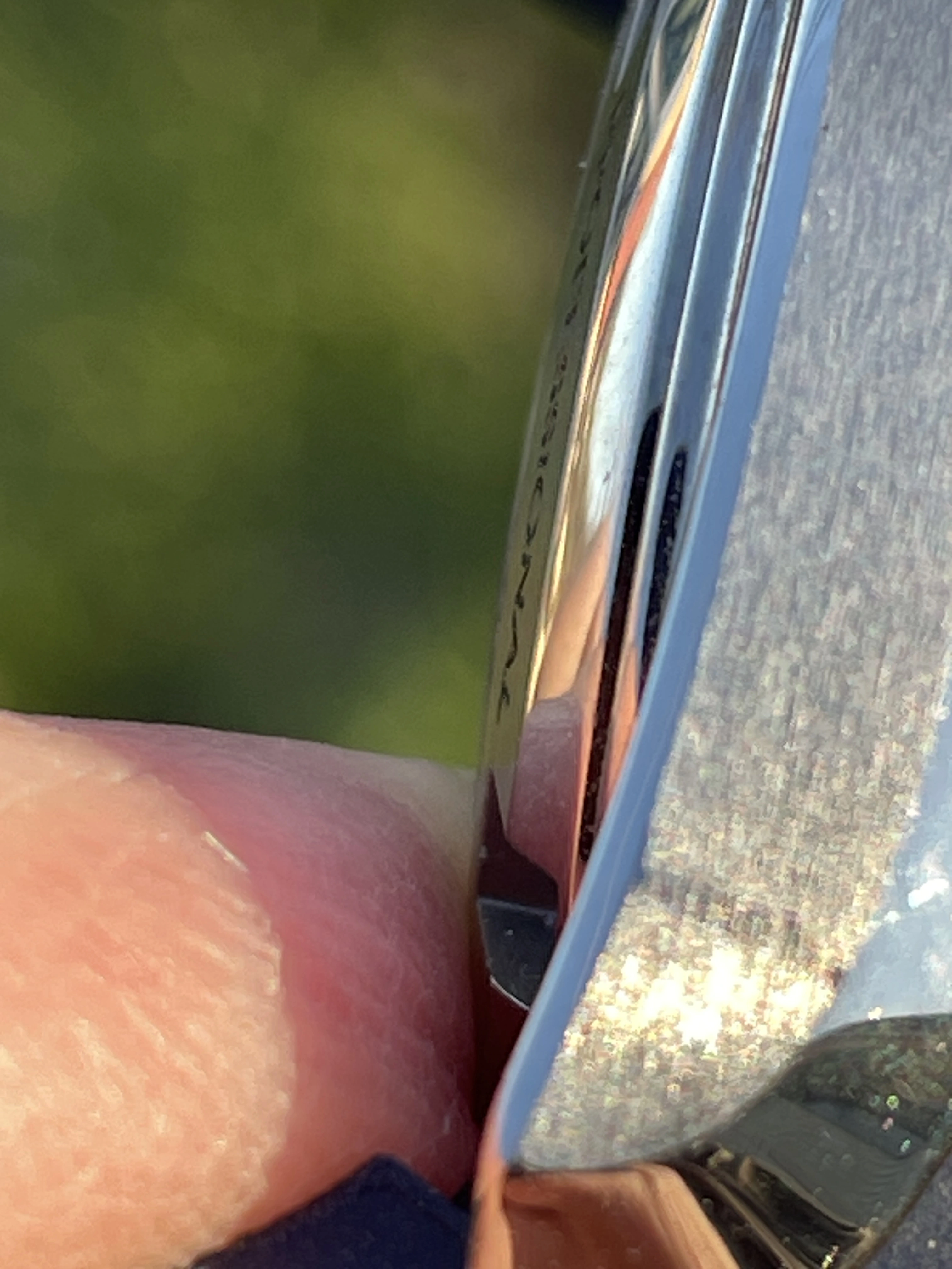 Damn I haven’t had this long the sticker on the back still in place. Seems like a lot of effort to remove it but this am I noticed I already dinged the finish. I was upset for twenty minutes then i remembered all the sickness etc. around me and I shook it off. I tried to remember when I did the damage I did two restraints on people and saved one from a bad fall it may sound kinda cool if I could pin it on one of those events but I’m pretty sure it was a file cabinet.