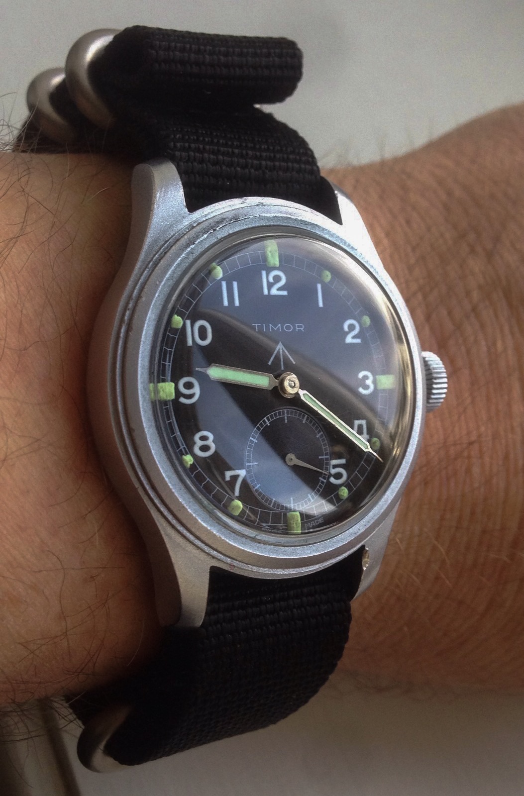 Posts 4,440 Likes 18,259 Northernman 路Apr 18, 2015路Lemaniac Another old warrior back in service this morning. Timor British Military issued WWW 1945 "dirty dozen " Freshly serviced chronometer rated cal 6060 movement ticking along.