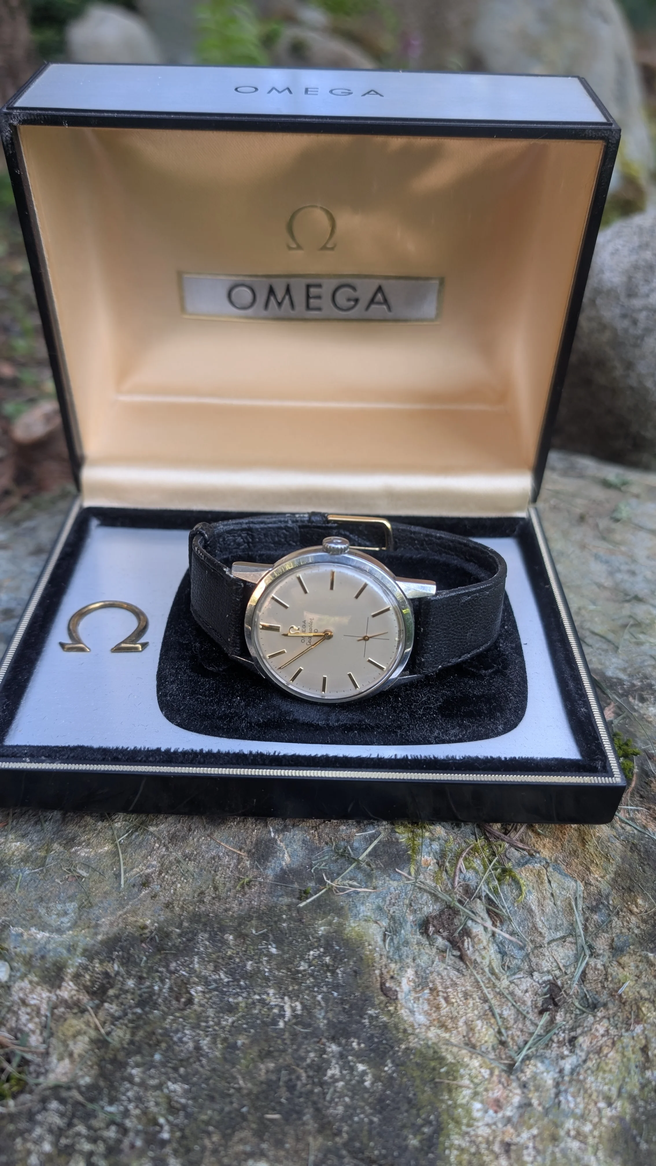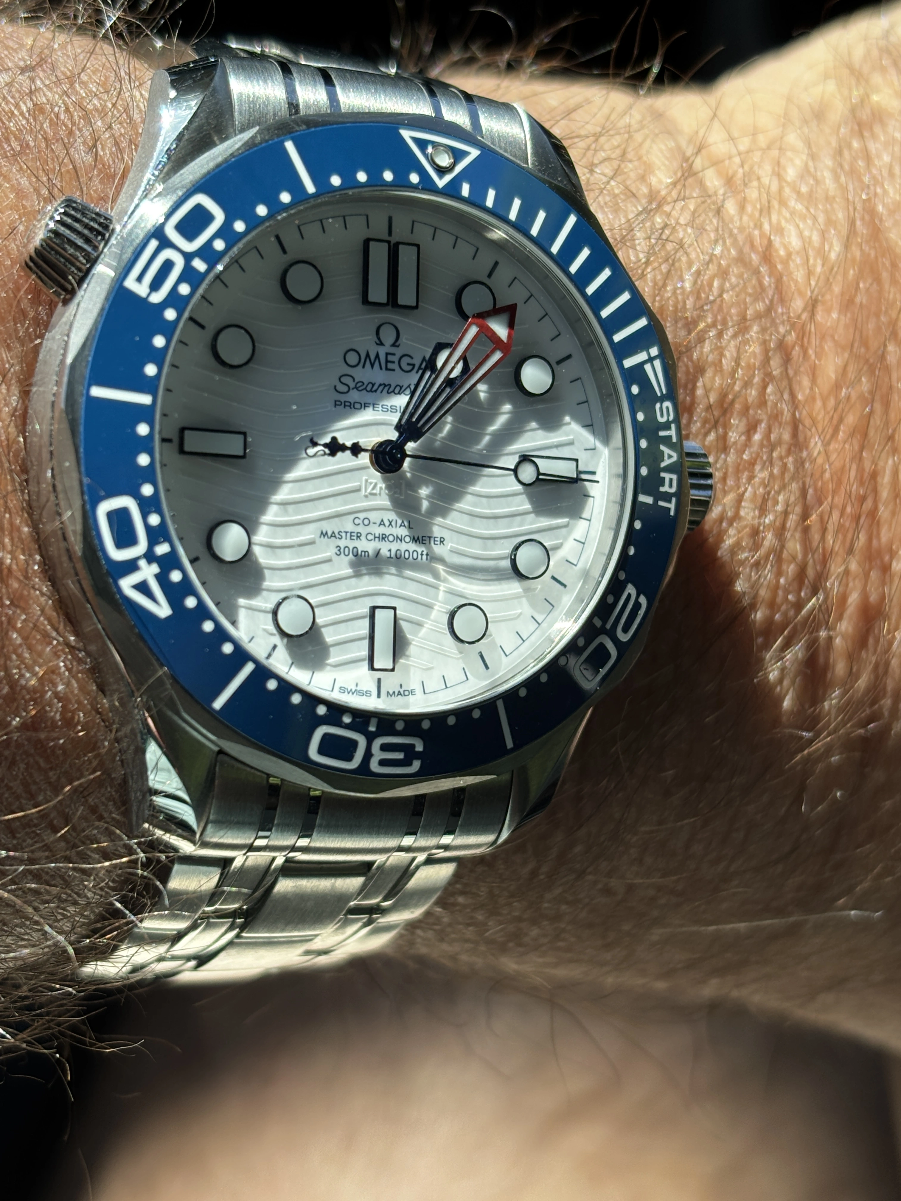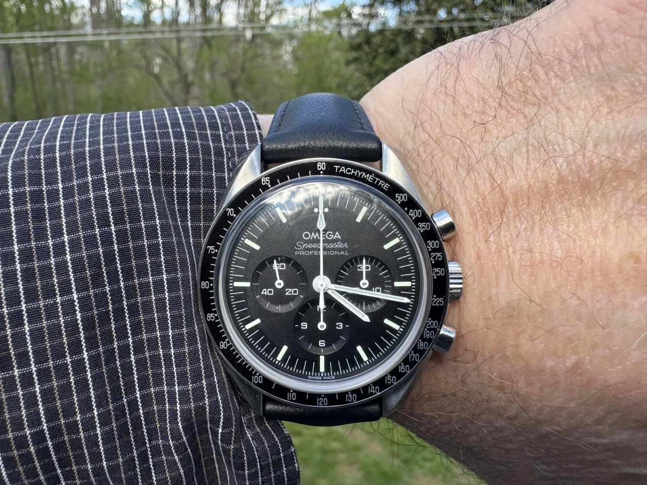 While visiting our youngest son in Silicon Valley last weekend, we stopped into the San Jose mall, which turned out to be a watch-shopper's paradise -- boutiques for almost every brand you read about on all the watch-fanatic sites. I had planned to only go to the TAG Heuer boutique, but my wife decided we should stop in the Omega boutique on our way to TH. While there, I looked at a couple of watches and then my wife says I should try on the moonwatch I was looking at. So, we sat down with the salespeople (we had two waiting on us, was a slow moment at the store), and I tried it on. It was very nice. But, just as I was about to take it off and hand it back, my wife starts saying, "Just do it. You know you're going to get one eventually anyway. Plus it looks really good on you."