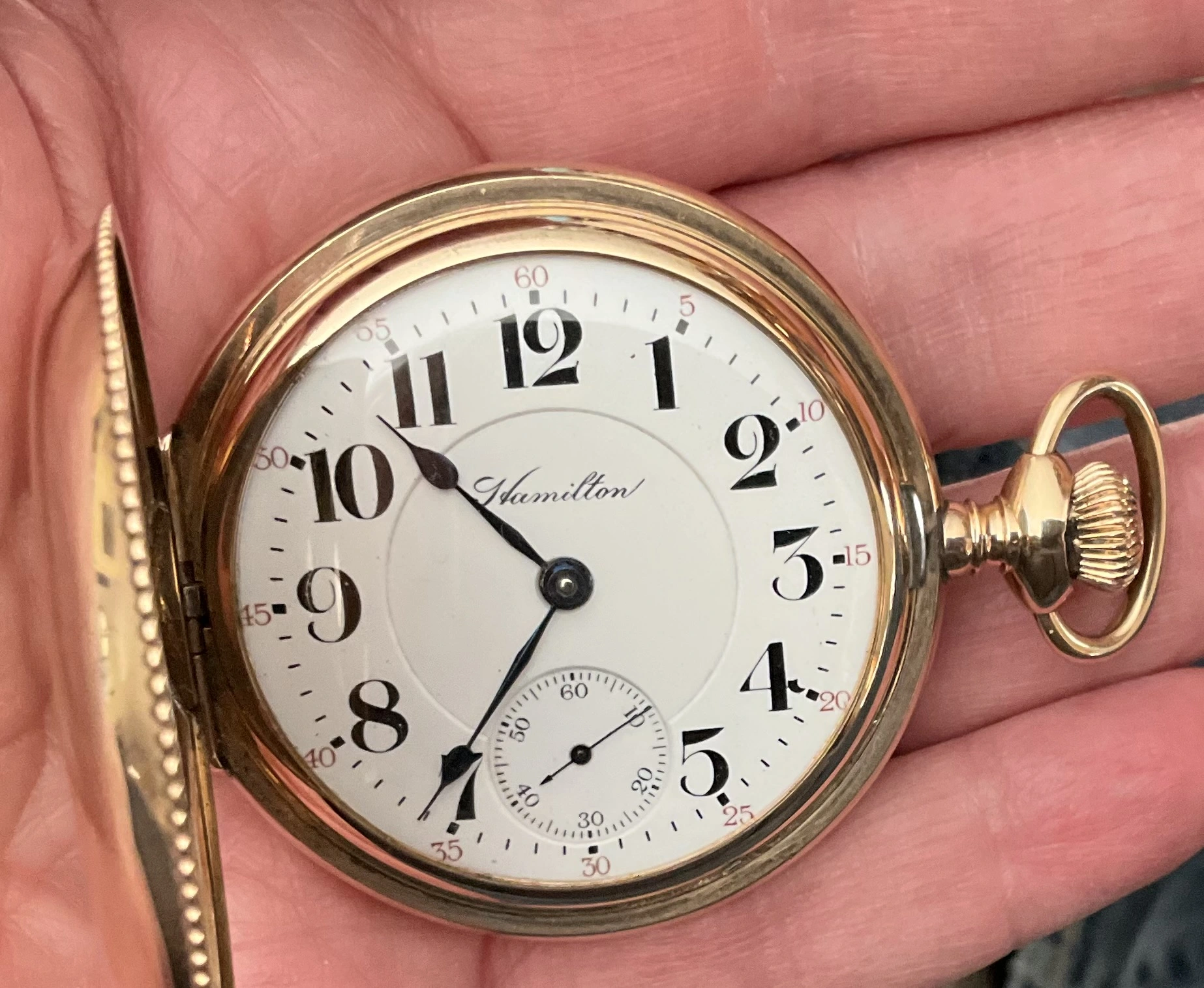 National Pocket Watch Day? Good idea, but by whose decree? I’m involved in a watch & clock appraisal clinic at our local historic park on Saturday. And it was time to decide which pocket watch I would carry. Hmmmmmm! This one! My Hamilton grade 941 which is the hunter cased version of the venerable grade 940, a popular railroad standard pocket watch. I’ll wear it on my late maternal grandfather’s 9-karat Waldemar chain with an 1897 English half-sovereign coin and 14-karat gold pocket knife. I’ll wear it Good Friday (today) on my @DaveK leather mystery