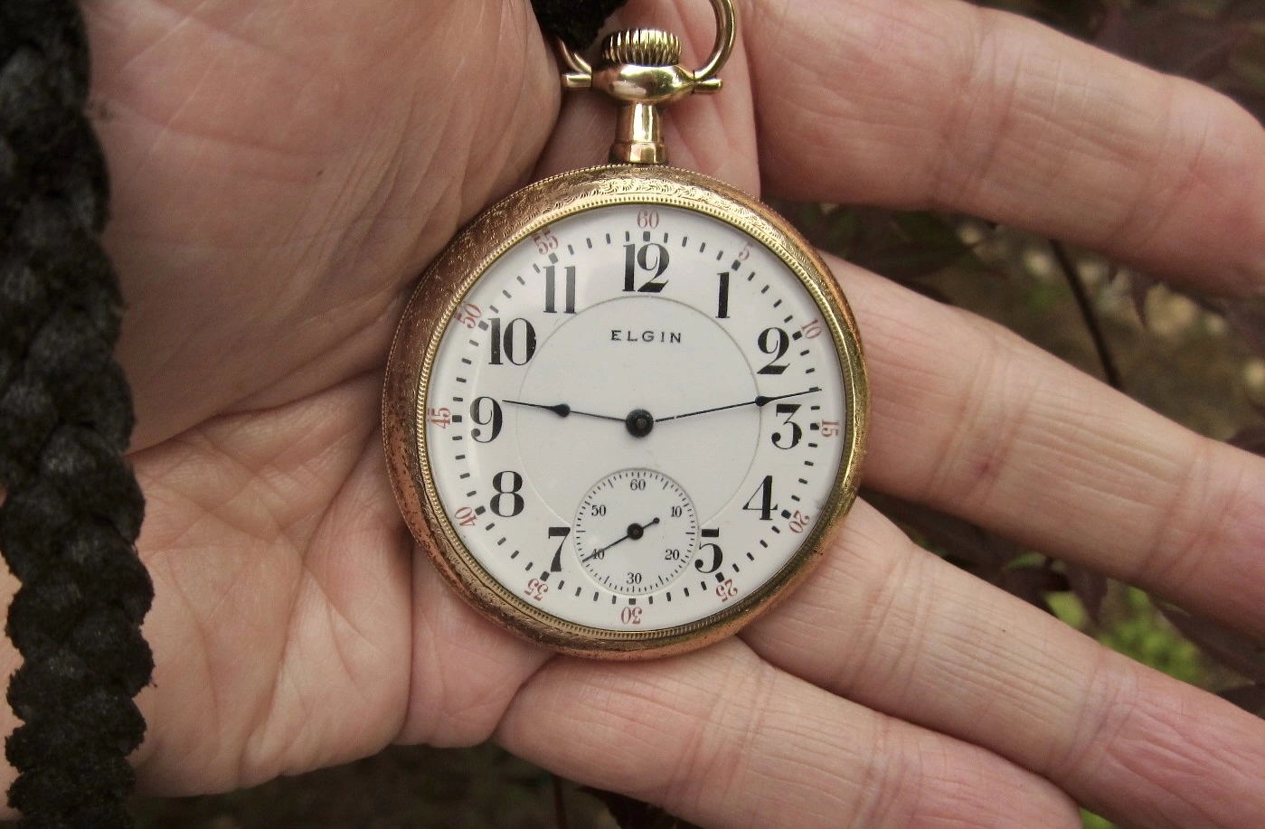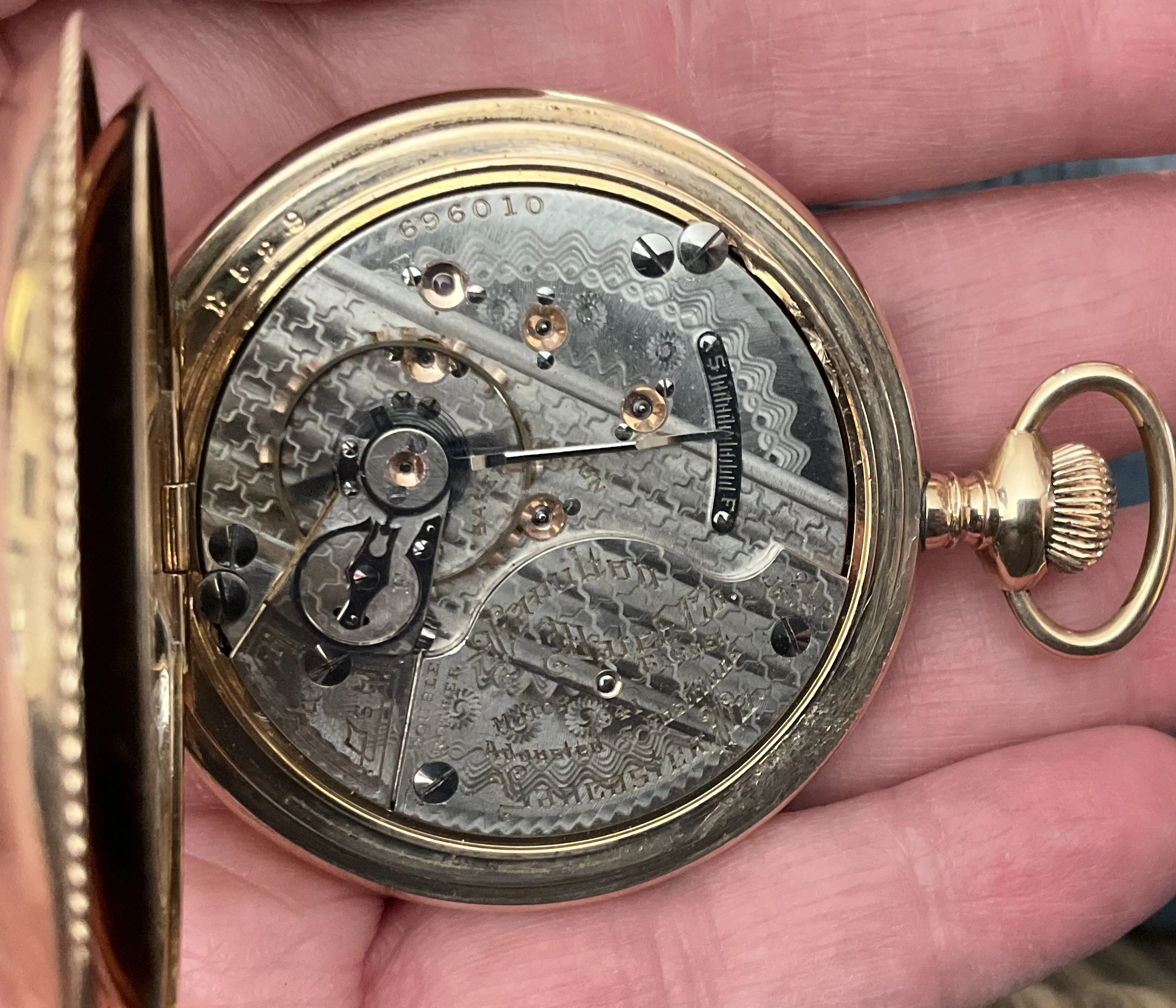 April 18th is National Pocket Watch Day! So, a rather rakish 1906 vintage Elgin Veritas with its three fingered bridge movement is serving.