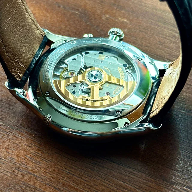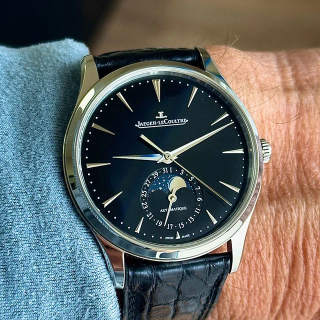 A smart black leather DaveK Mystery Braid lanyard secures the watch in the jeans watch pocket.