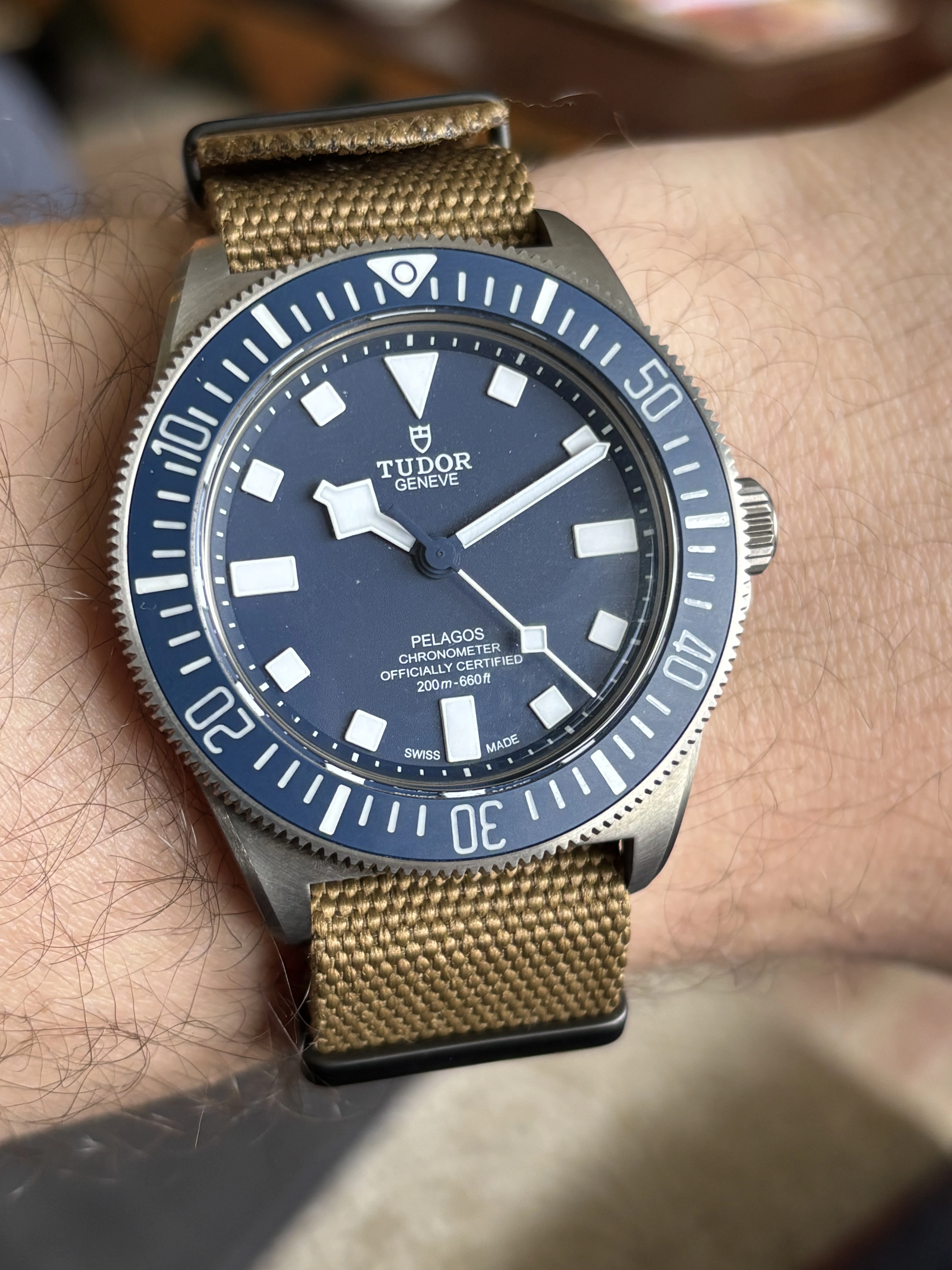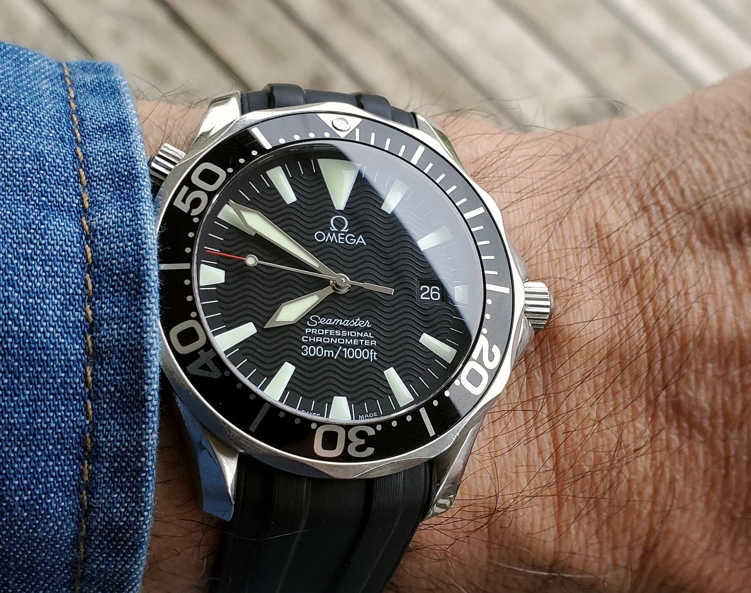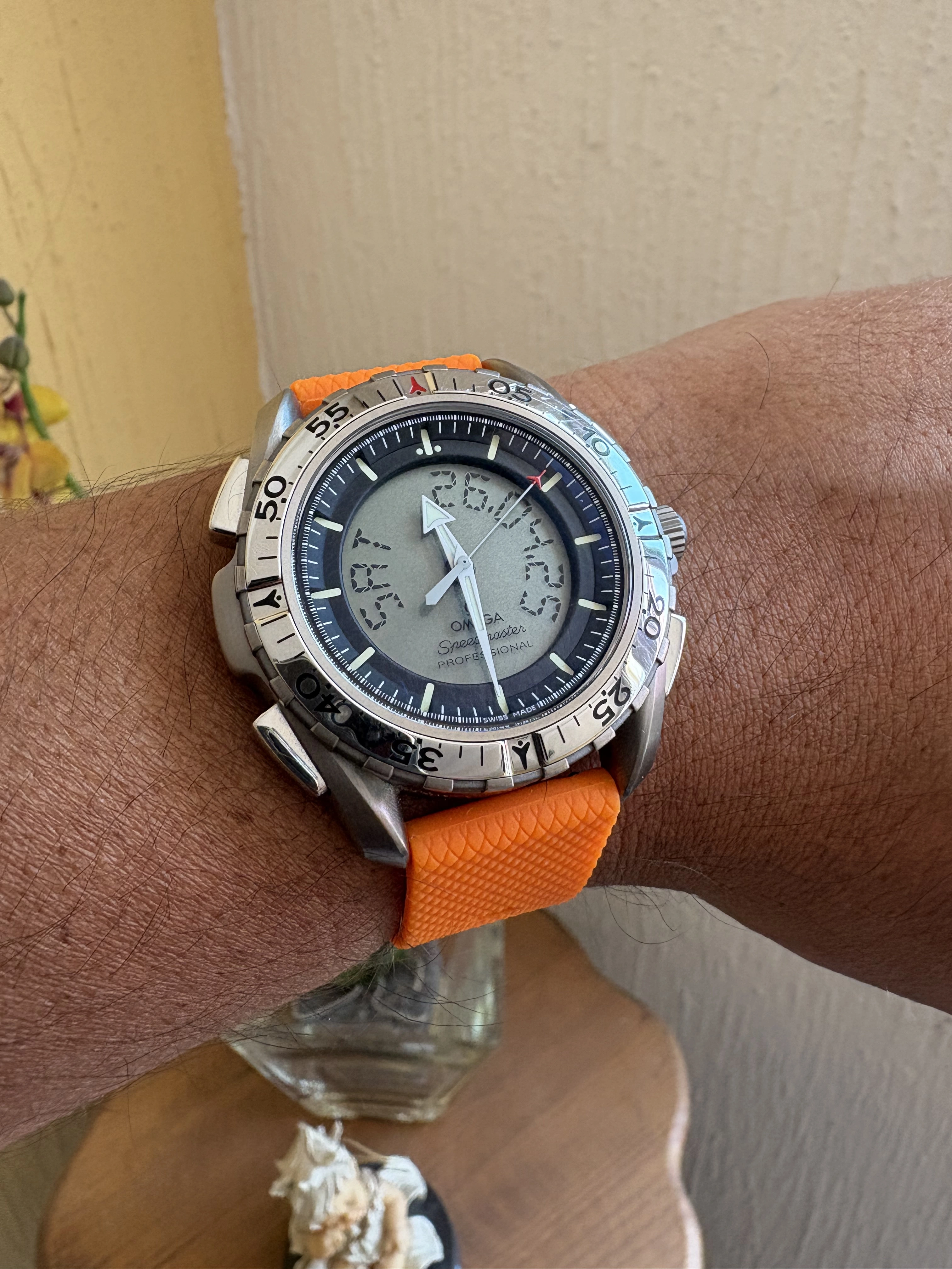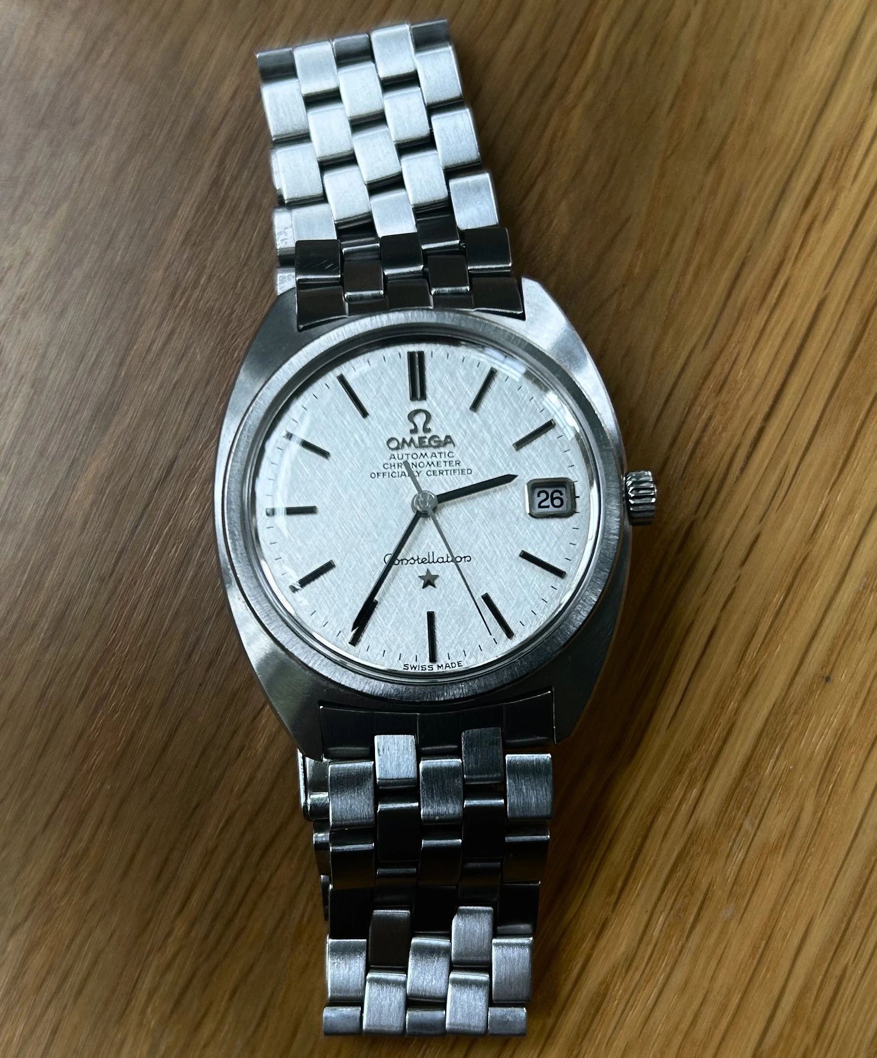 Time for a change. I’ve enjoyed the Accutron Spaceview, but I really miss having the date. So I have chosen a somewhat unusual watch. Unusual because it is a manual wind day-date model. A Gruen, probably from the late 1950s. Each time I choose this one, I have to retrain myself in setting the calendar. Not a quick change. Set the DAY first, then back and forth until the correct DATE. The day reverses but the date only advances. So once the day is set, it’s back and forth until the date is correct. Then, set it to time.