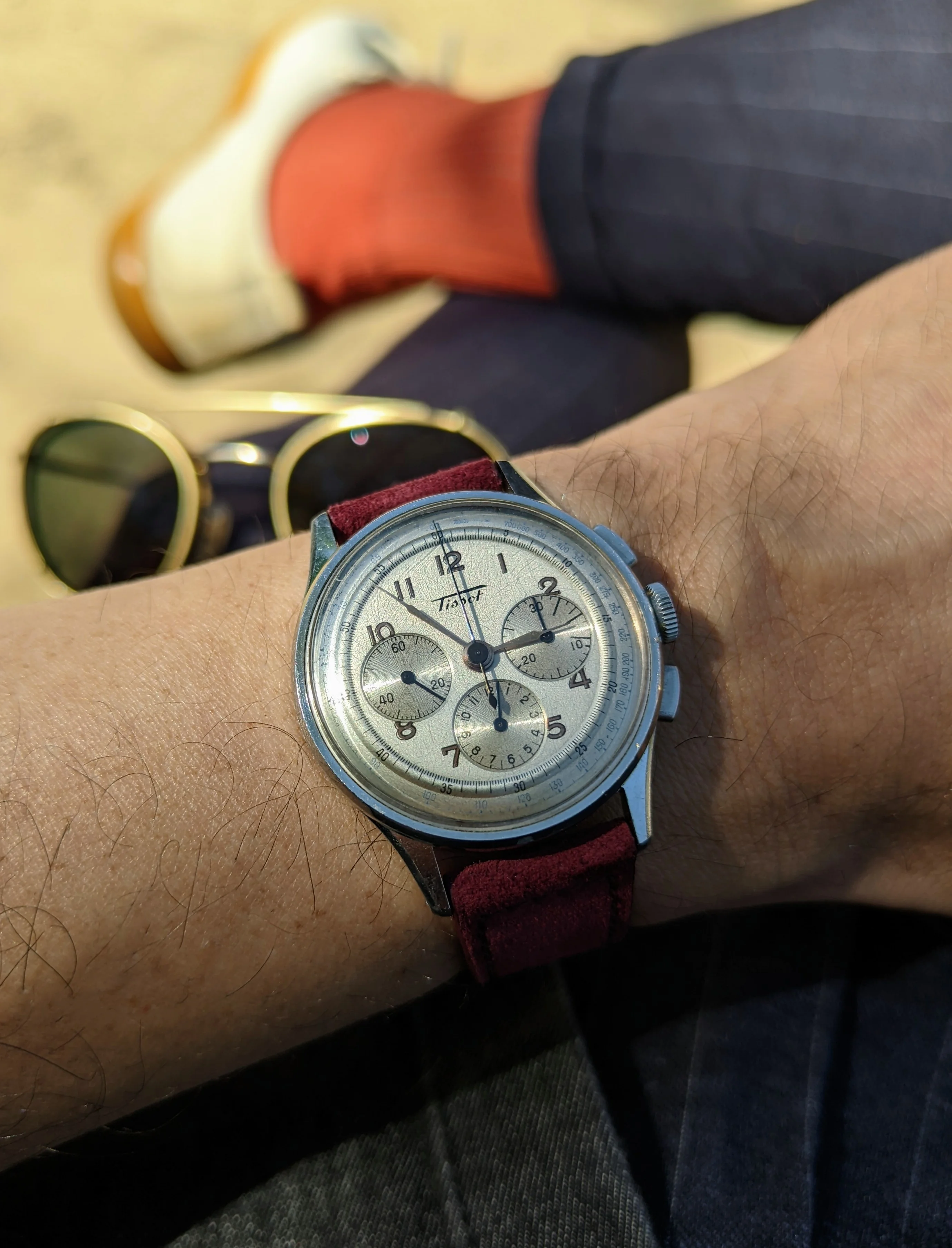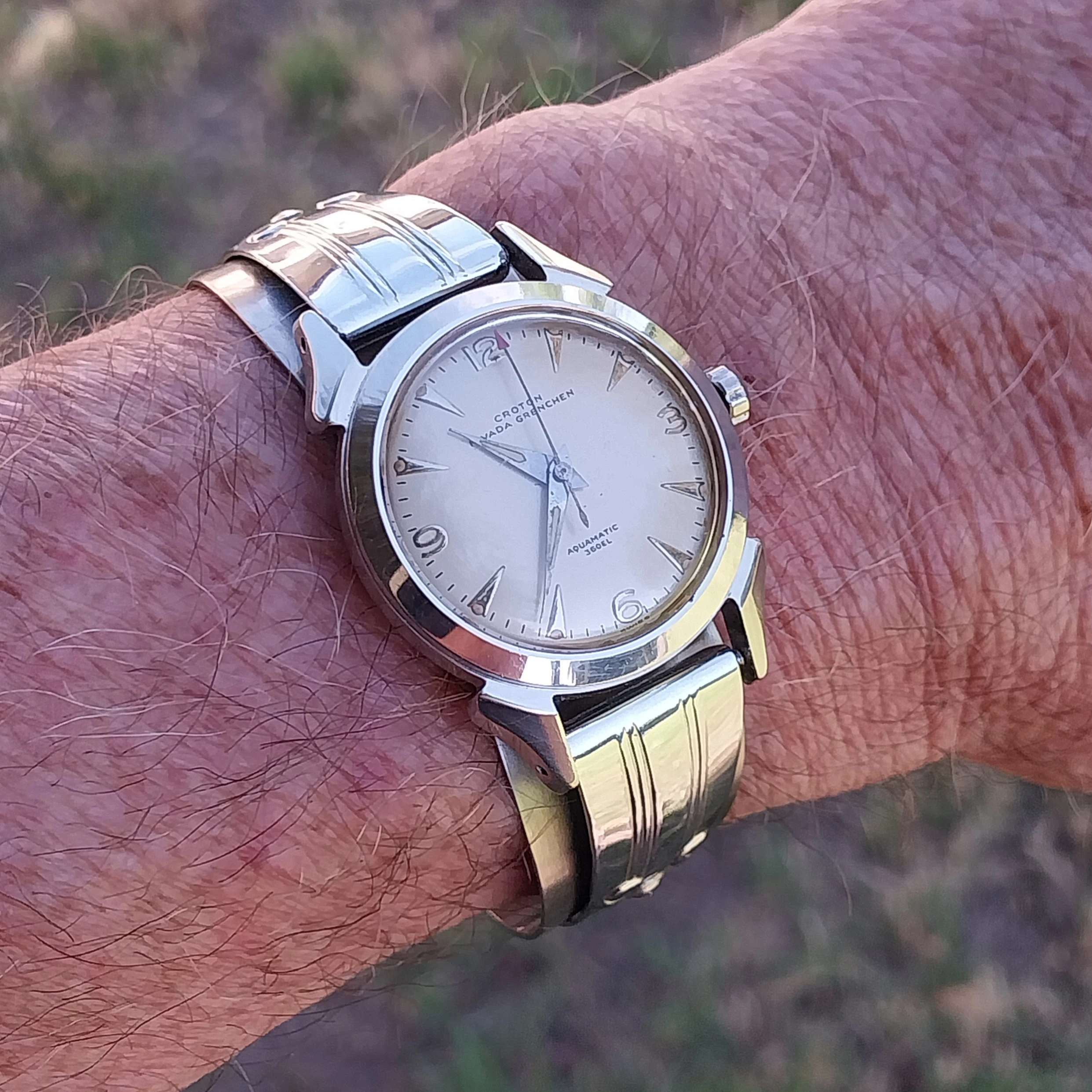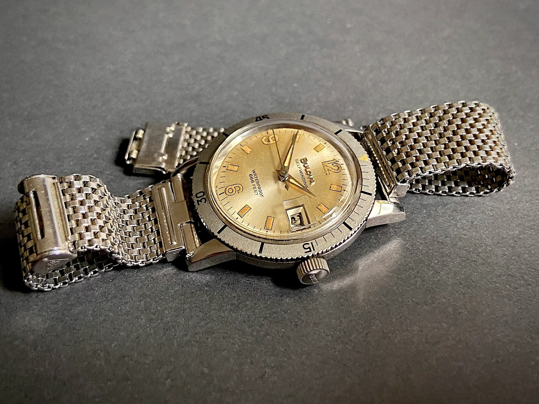 Movement: Bulova Swiss in-house Self-winding movement model 11ALACD stamped - M4 [date code], 17 jewels, and a Kif-Elastor shock protection system. The movement has a frequency of 18,000 A/h and a power reserve of 42 hours.