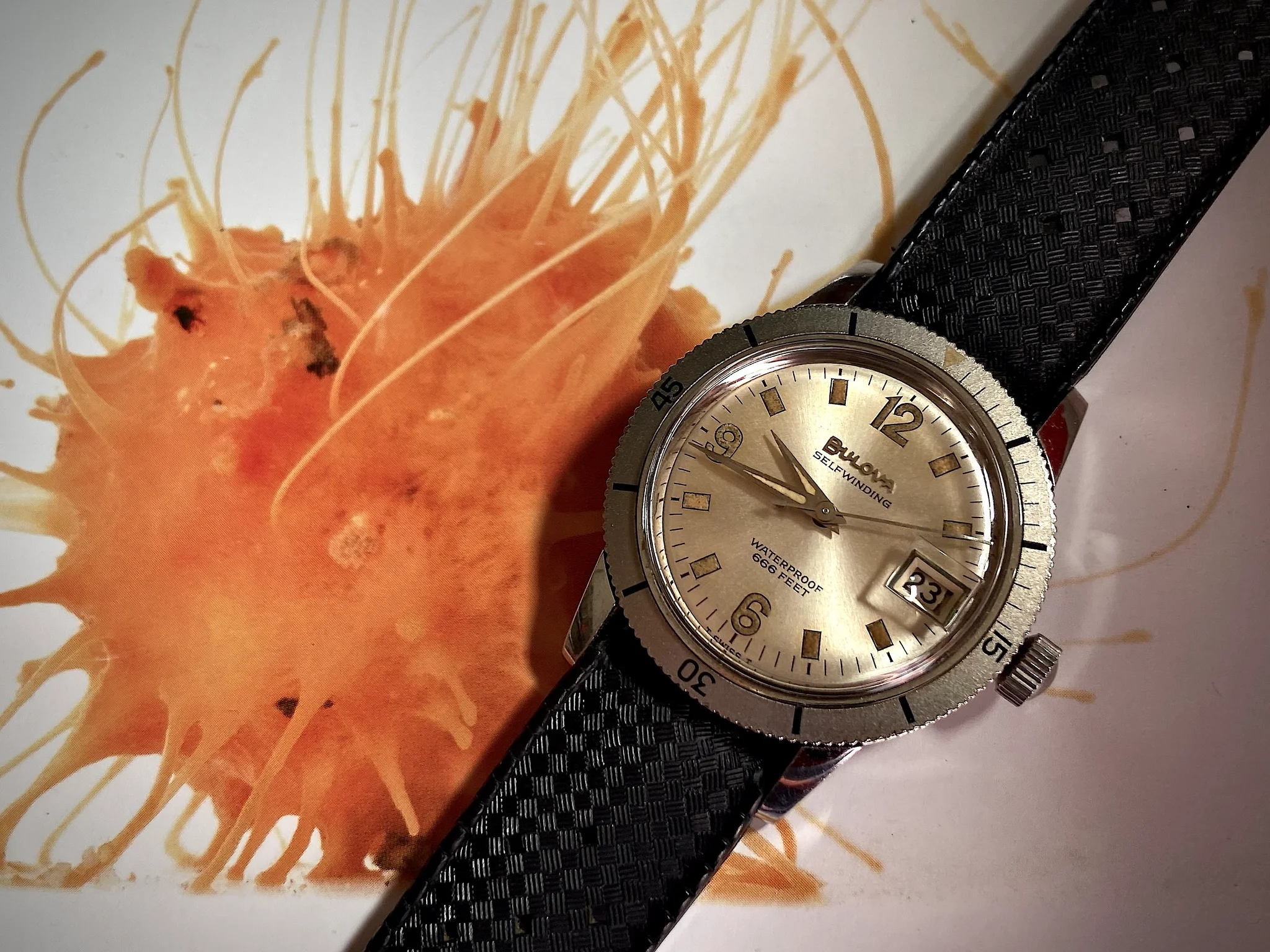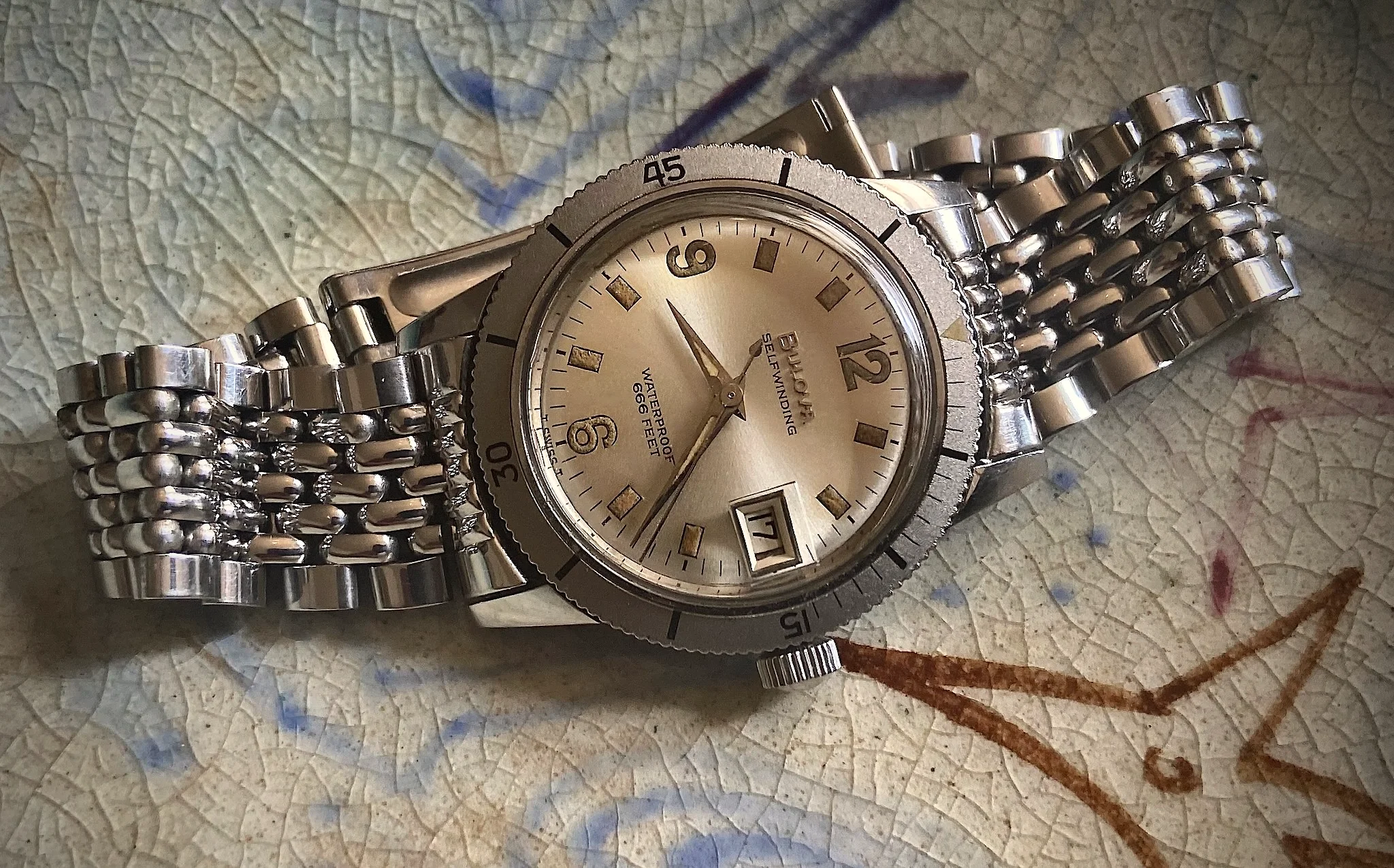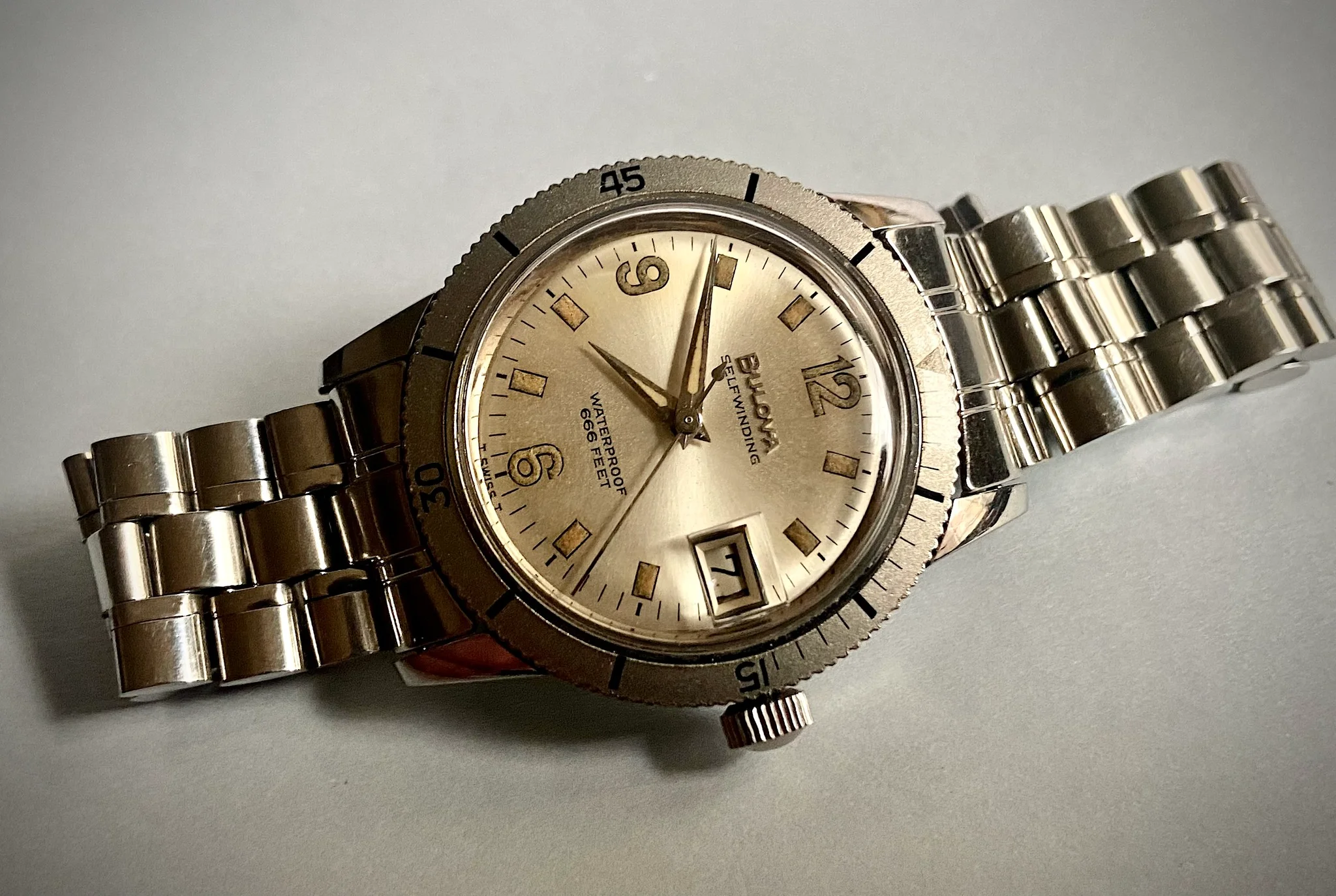 路BULOVA 666FEET Diver ref # "511240" with applied logo and silver toned sunburst tritium dial