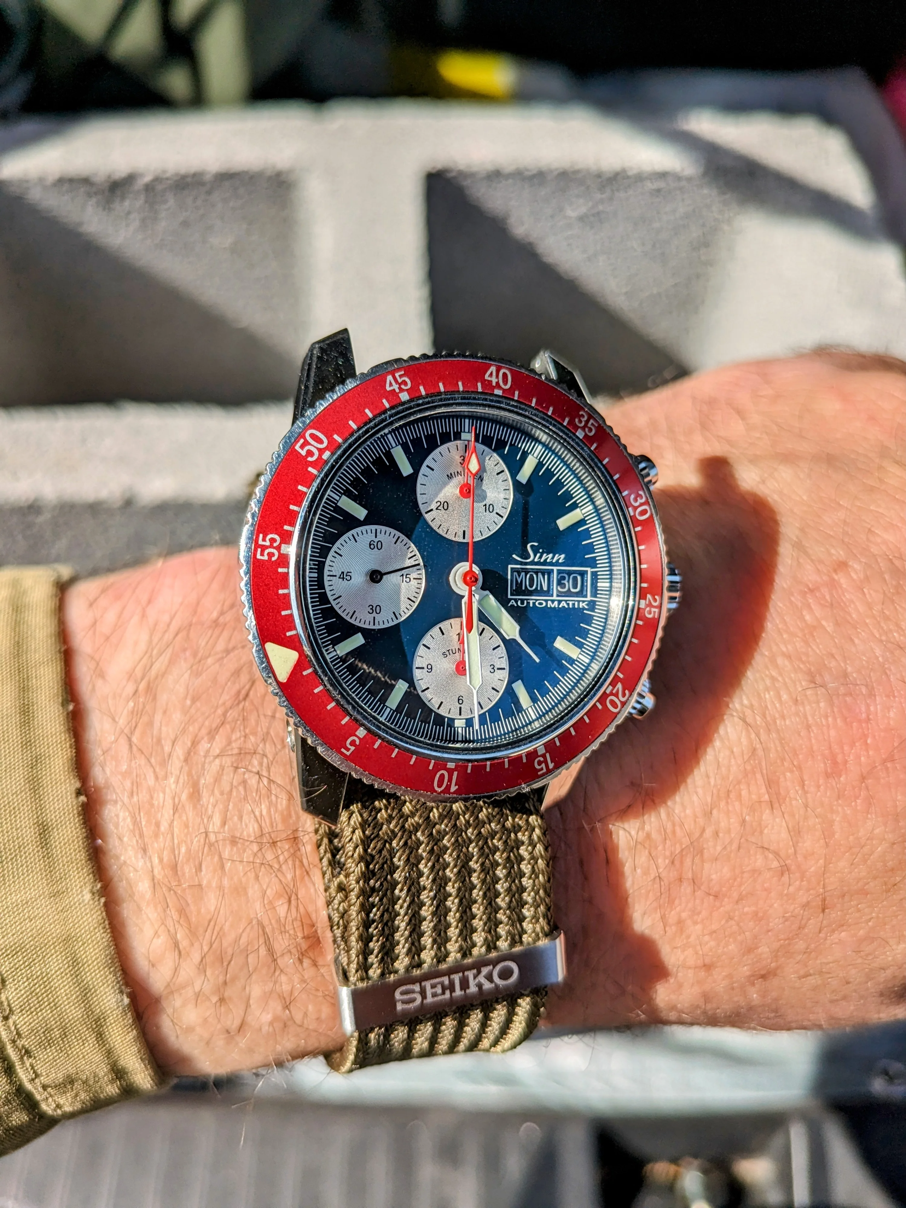 That happened to me twice, two spring bar failures. One was a Vostok that was on a nato and held perfect. The other was a decent watch I can’t recall which one but I felt it going was able to save it from falling (non nato) it really makes you think how helpful natos can be. Good save, nice watch. I won’t buy Sinn only because I have enough reminders of my sinful nature.