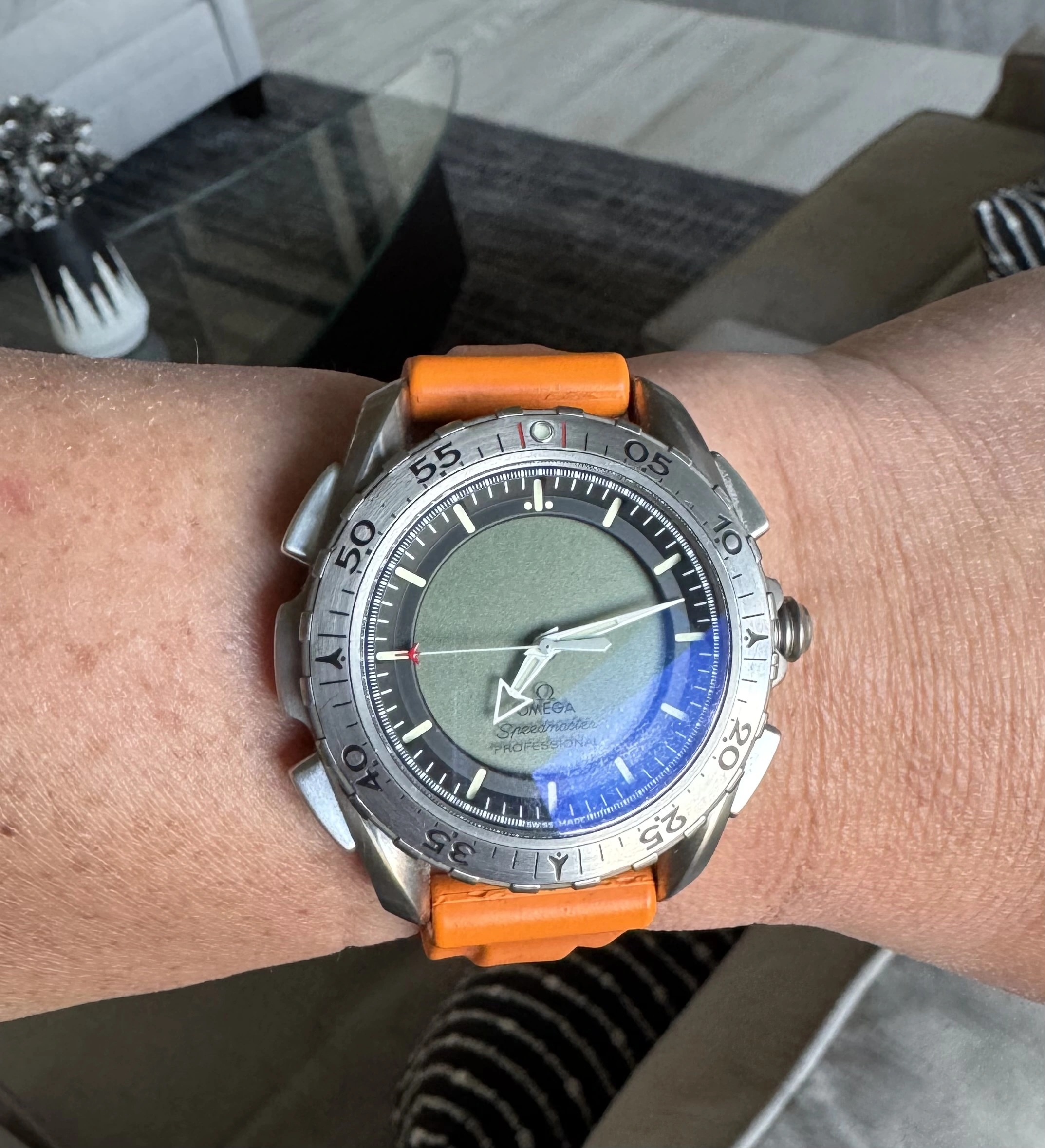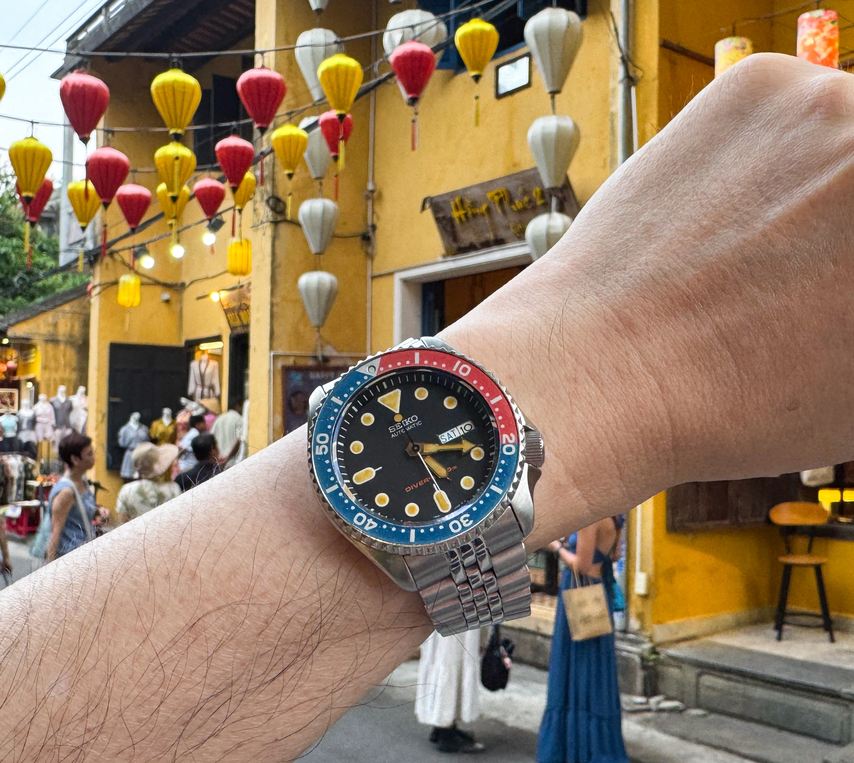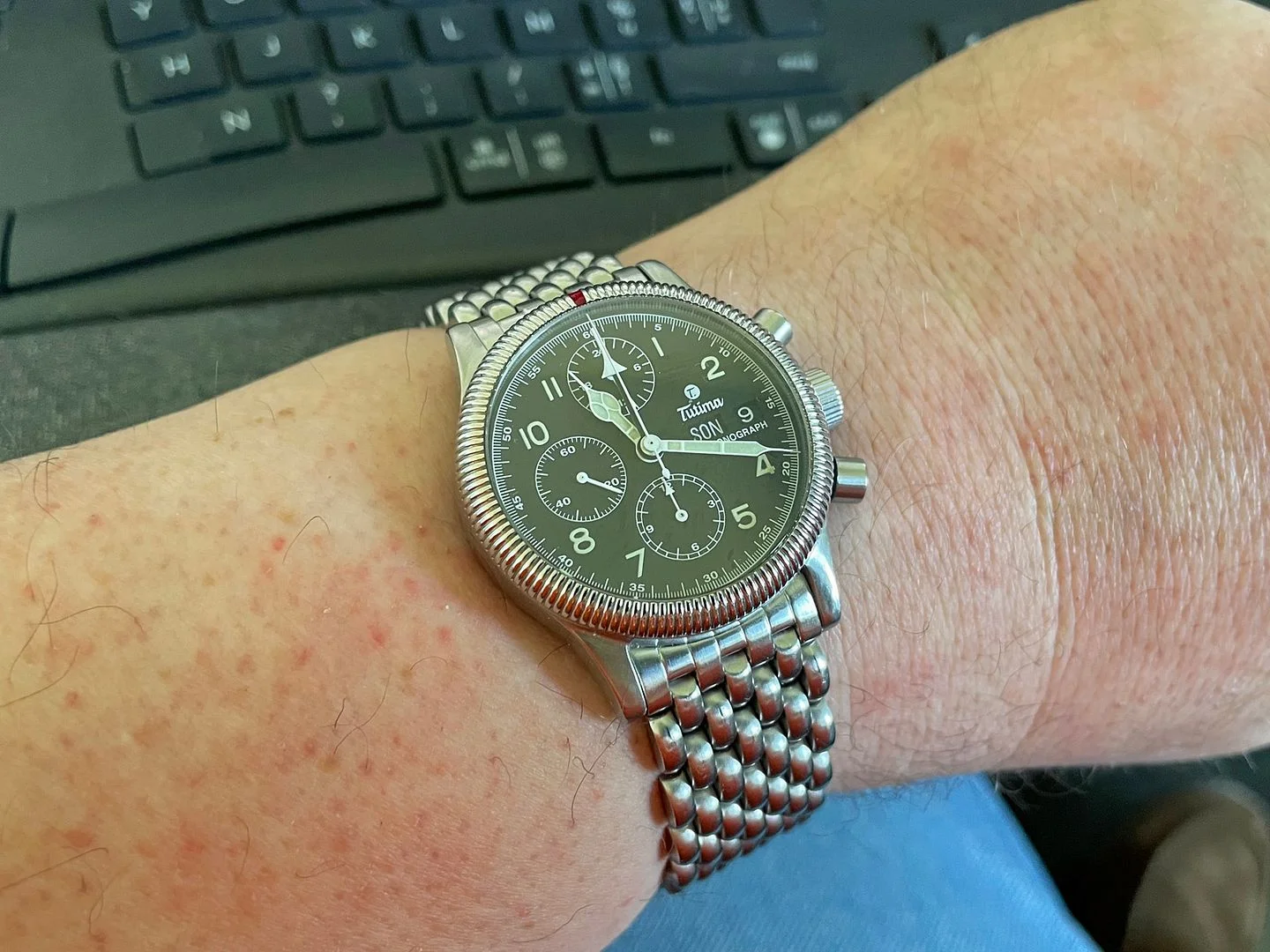 Not actually wearing this one, today. For two reasons, actually. First, Rolex calls this style a woman’s watch, and it is not something I would even wear to test it! It has been adjusted to fit a woman’s wrist, so there is no way I could wear it. It was brought to me by a friend for reconditioning, a task I completed, today. The movement is a 31-jewel, calibre 3135. I don’t know how long she has owned, it but it has 3 Rolex (Canada) repair numbers in it. All in all, it is in nice condition, with the exception of a number of very tiny chips on the surface of the synthetic sapphire crystal. The 50 diamonds are all nicely matched full cut stones, about 0.02 (2 points) each, adding up to about one carat total weight. I showed it to my better half tonite, telling her it was not her Mother’s Day gift. She was glad of that as she said she wouldn’t wear such a gawdy watch!