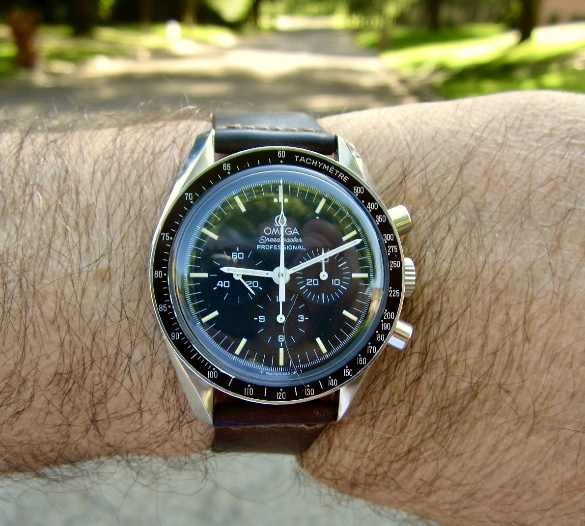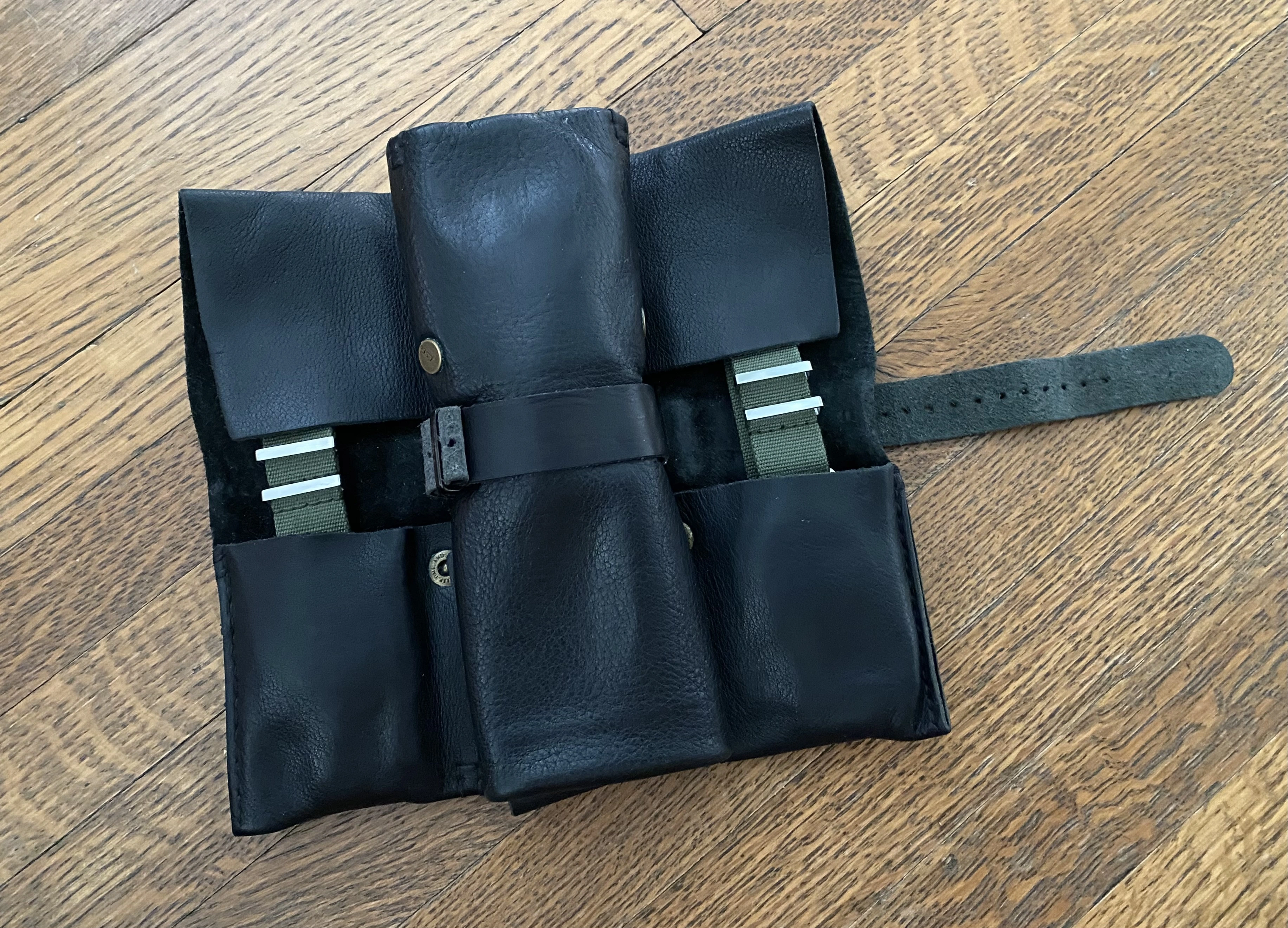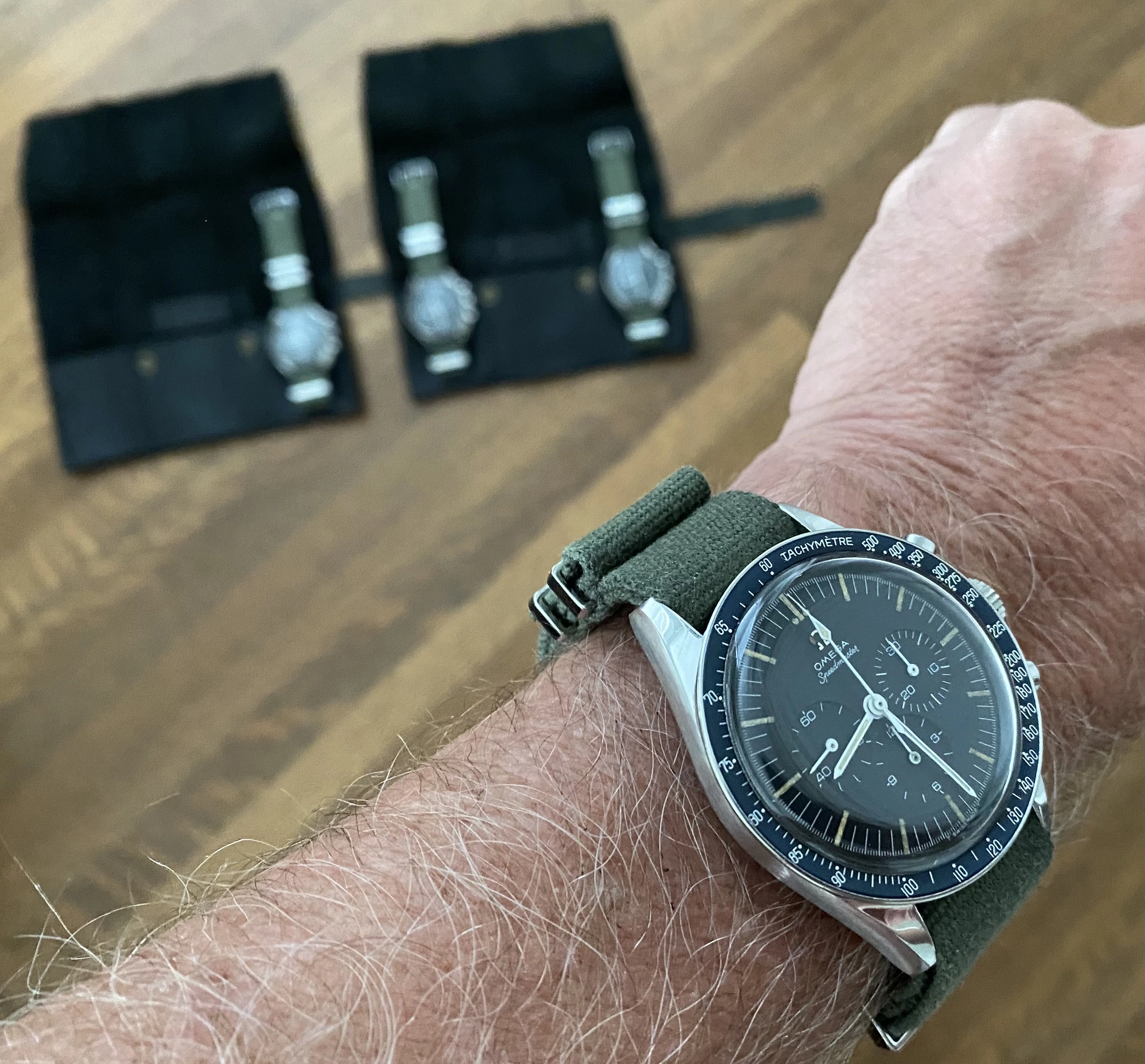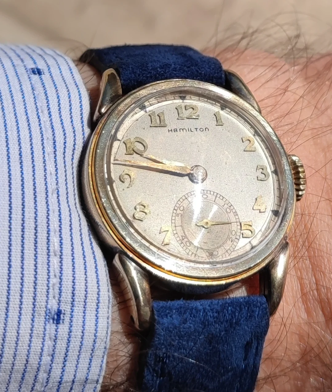 166.121 model Omega. Trimmed down a 22mm strap to fit and get a feel for what type of strap it wears best. Unique and comfortable. Now to get a bespoke strap with a few tweaks and refinement.