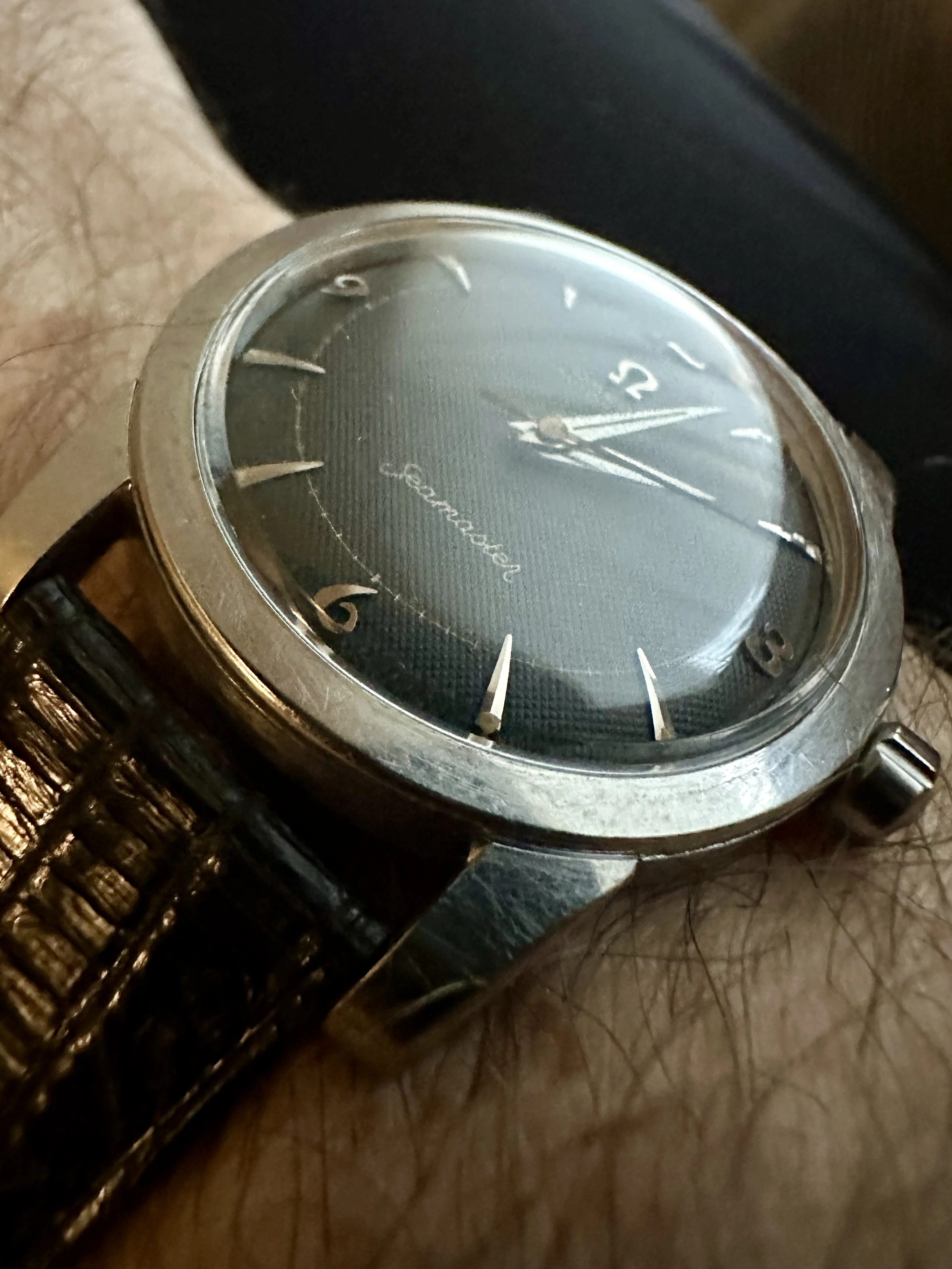 Another favourite today. This one thanks to @Laneside in Scotland. This 61 year old watch brought back to life with a replacement movement. A feature not often seen on this model………a gold shell case. Every time I look at it, I am hardly able to believe it is as old as it is. I suspect a previous owner gave up on it after it proved troublesome, and was unable to find anyone to repair it (quite a common problem with Accutrons).