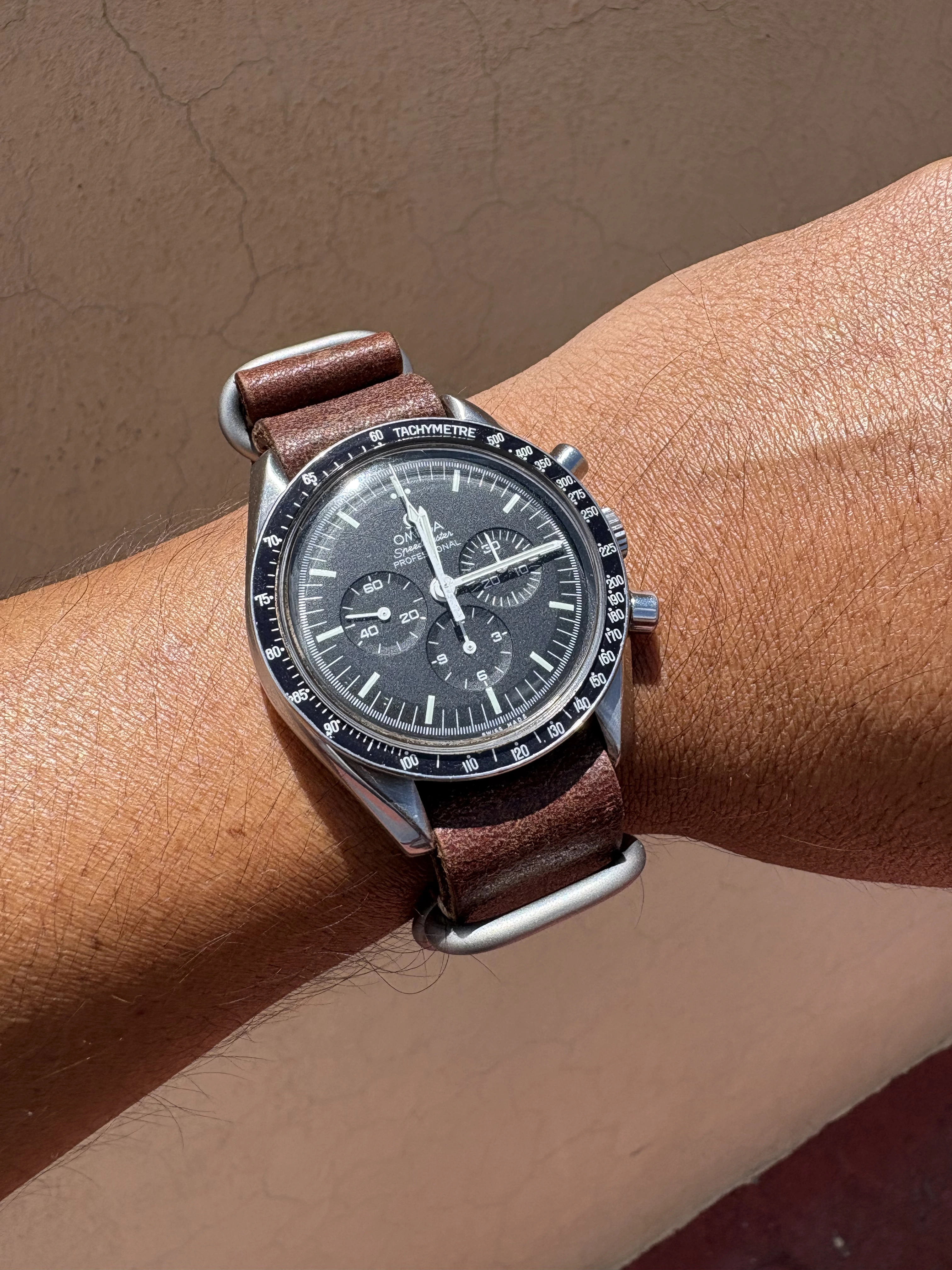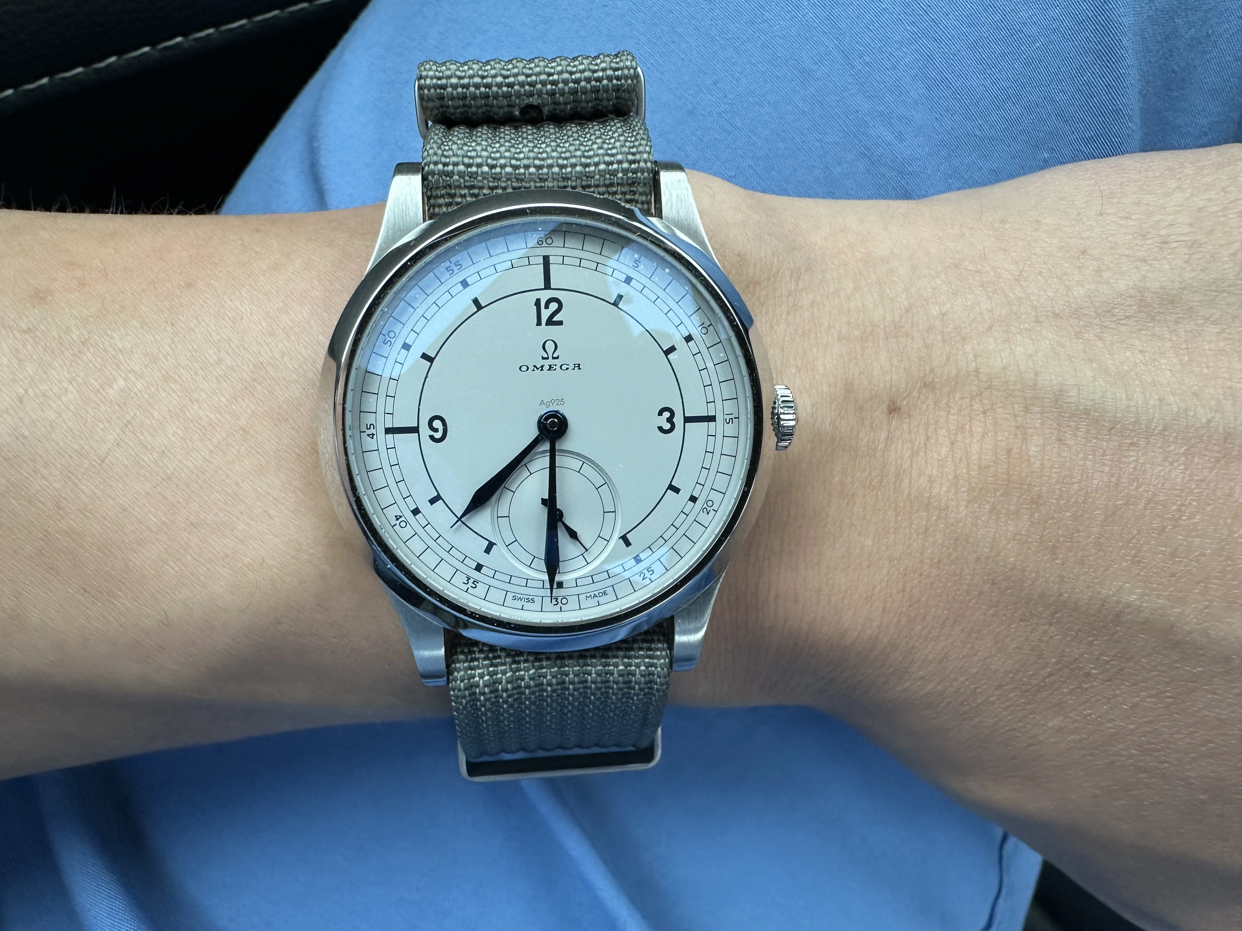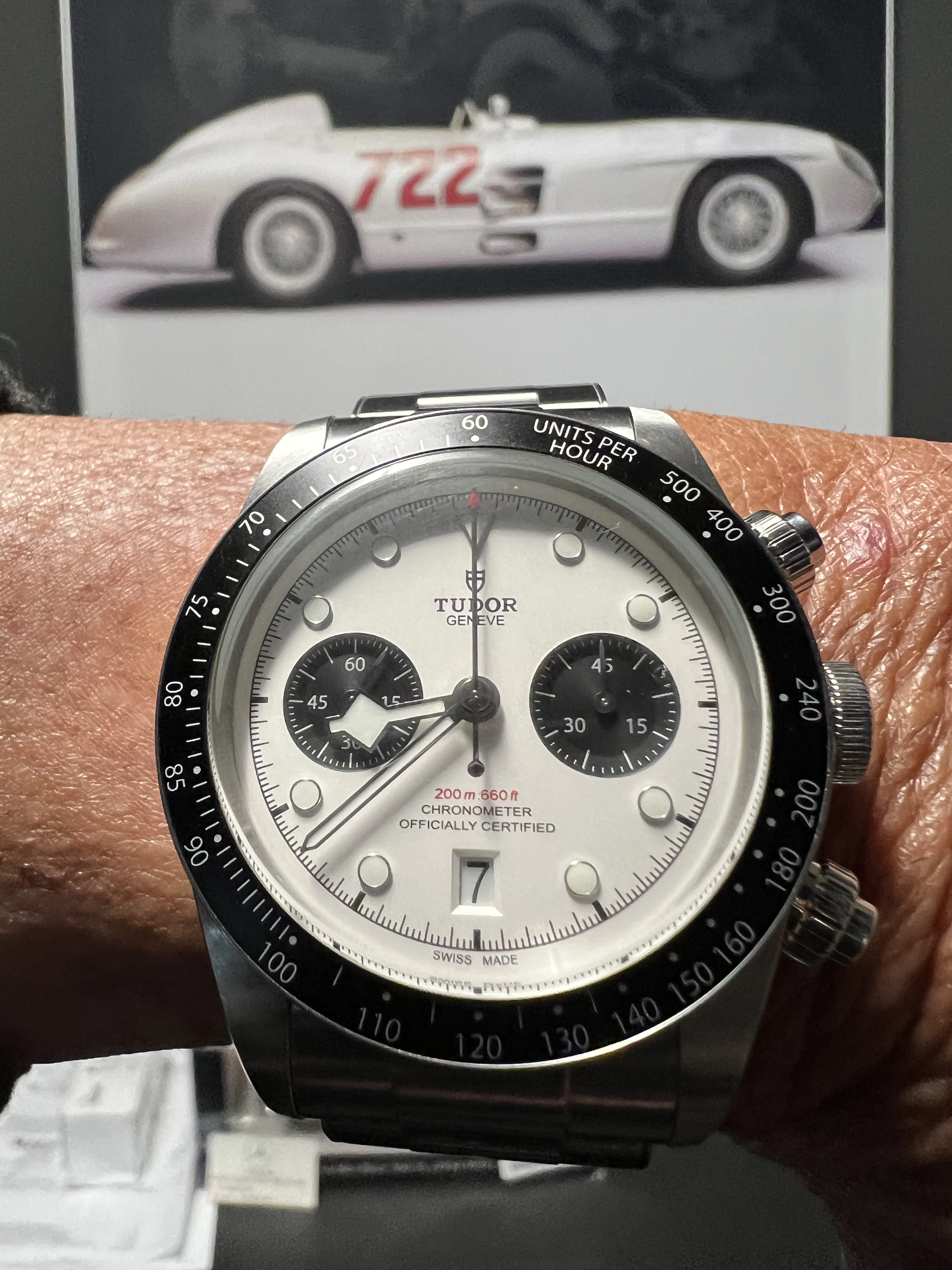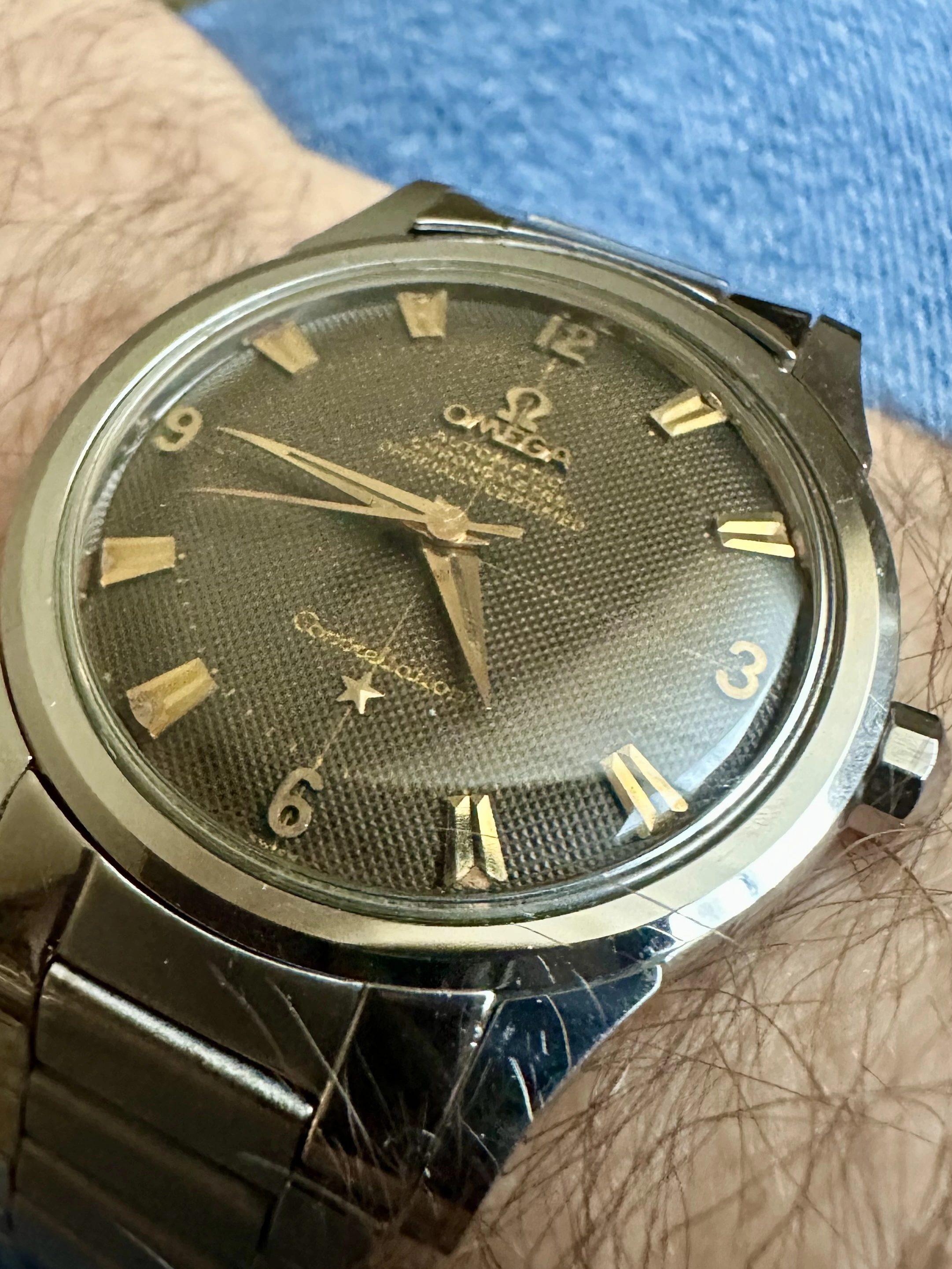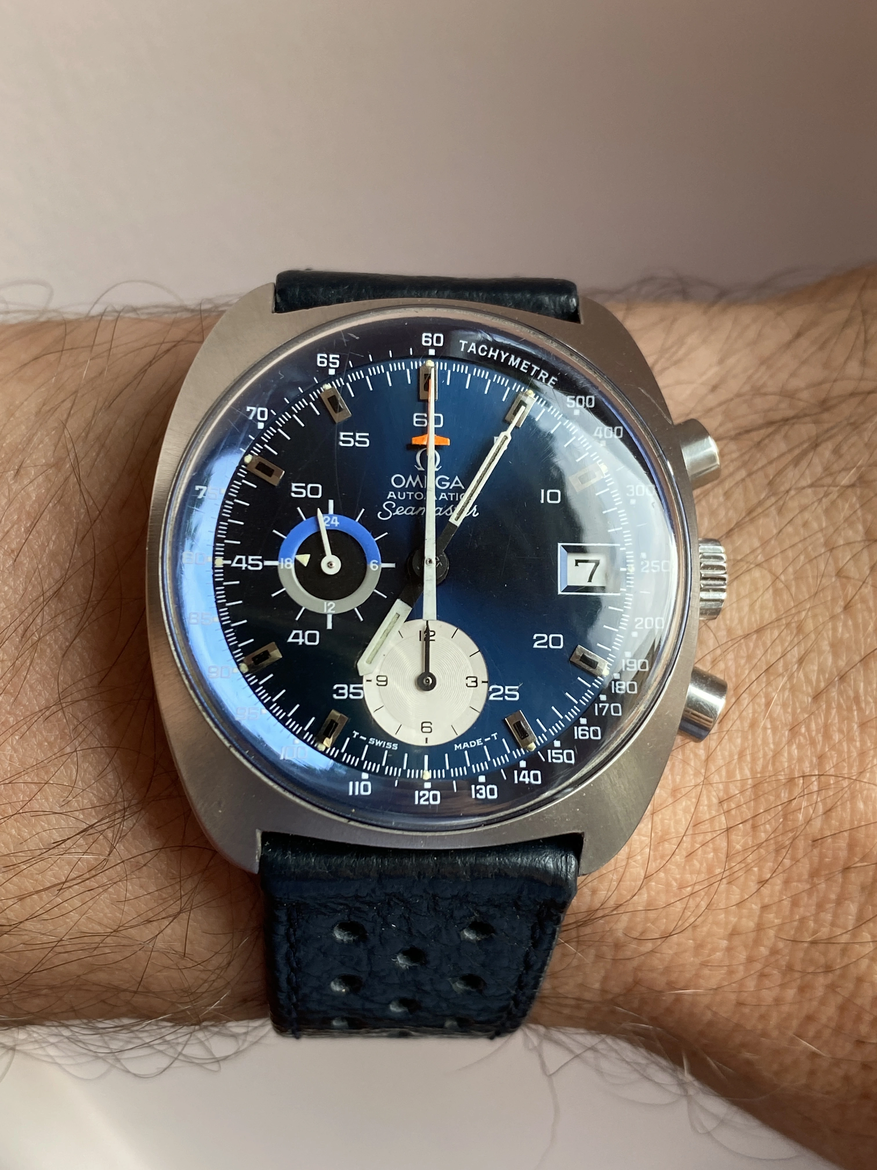 I was on a ladder, trimming large limbs out of an oak tree. One just broke and its butt end plunged down, right on to the "watch indexing location" on my wrist. Good thing I was wearing the beater watch loosely for it was forward of where the limb struck. I'll heal, but don't want the ol' Glycine watch-of-wonder to suffer injury. Could have lost the crystal, might have lost the dial, maybe even warped the case or lugs.
