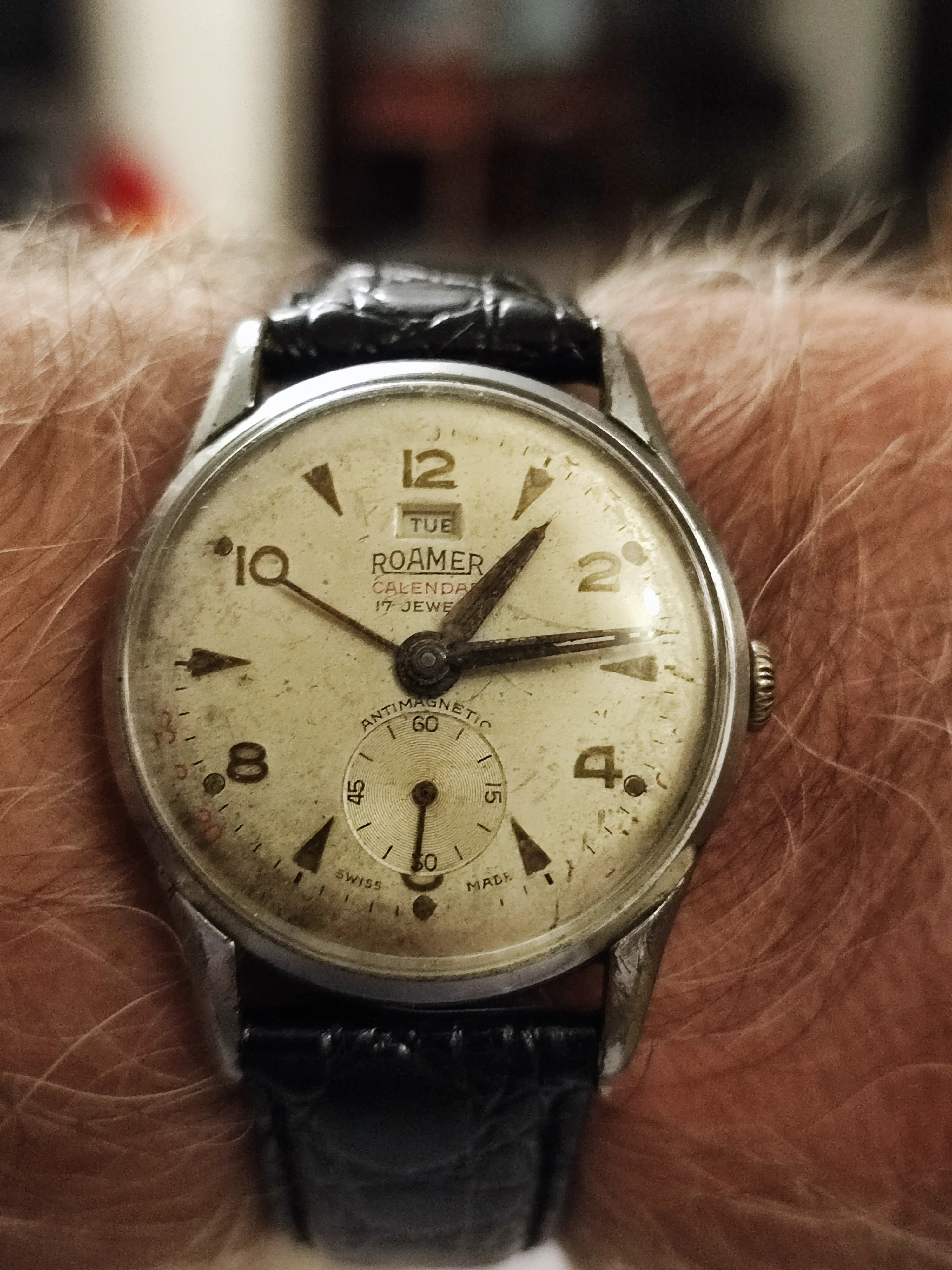 Posts 4,689 Likes 46,940 ghce ·Jun 9, 2025 Roamer Calender watch this morning. Only arrived on Friday and will be a project, needs a new dial and date pointer but otherwise working well. Edited: Jun 9, 2025