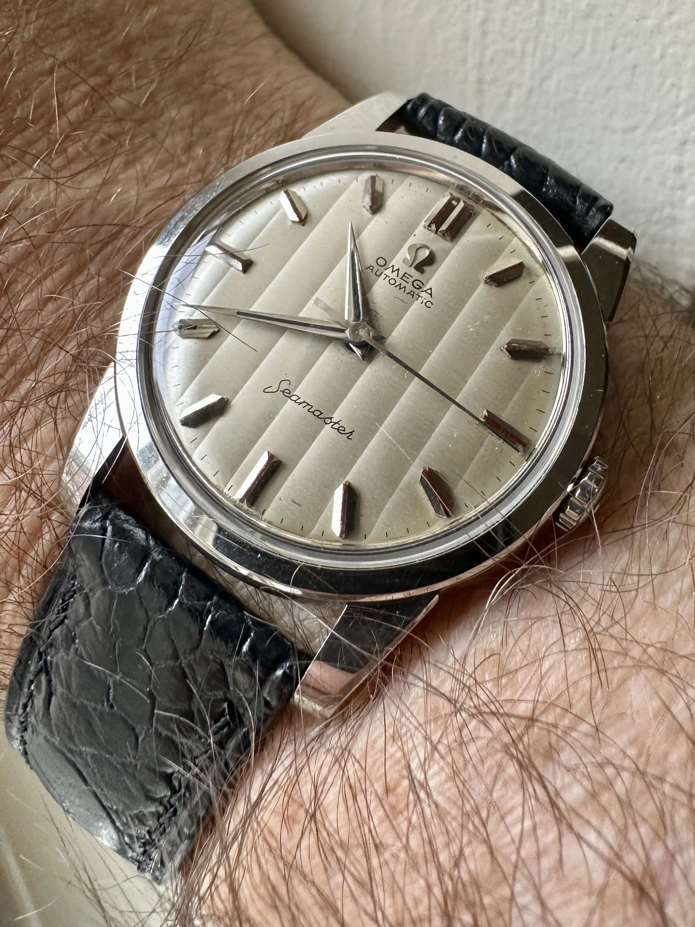 Posts 8,560 Likes 70,692 Spruce ·Jun 9, 2025·Sunburst dial fan tikkathree How s this for a dial script: @12: OMEGA ELECTRONIC F300Hz @6: Geneve CHRONOMETER I have a 198.030 f300 with the same script 😀