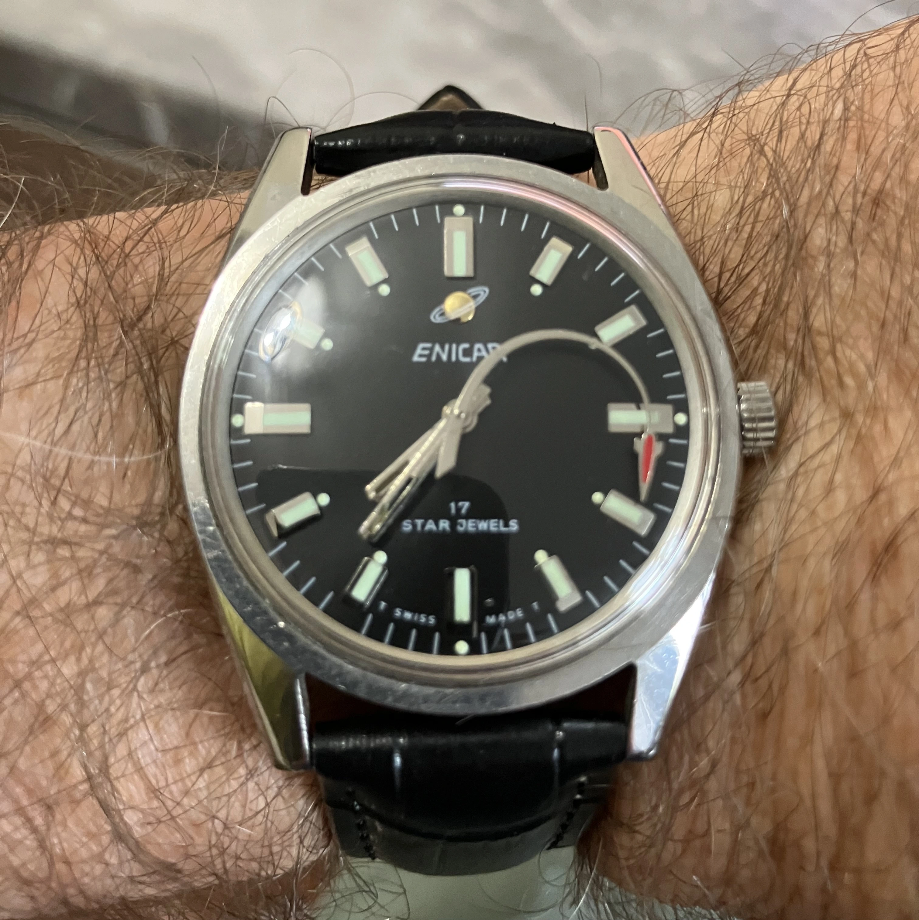 Posts 1,387 Likes 14,427 8926ob ·Jun 10, 2025 dlwpe1967 Another Enicar. Is that hand showing the trajectory of your spaceship to Saturn?