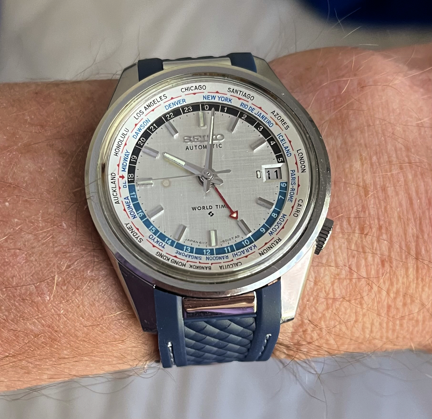 Difficult to capture the subtle deep blue of the faultless dial and hands at night but in the day and sunlight the deep blue is stunning.