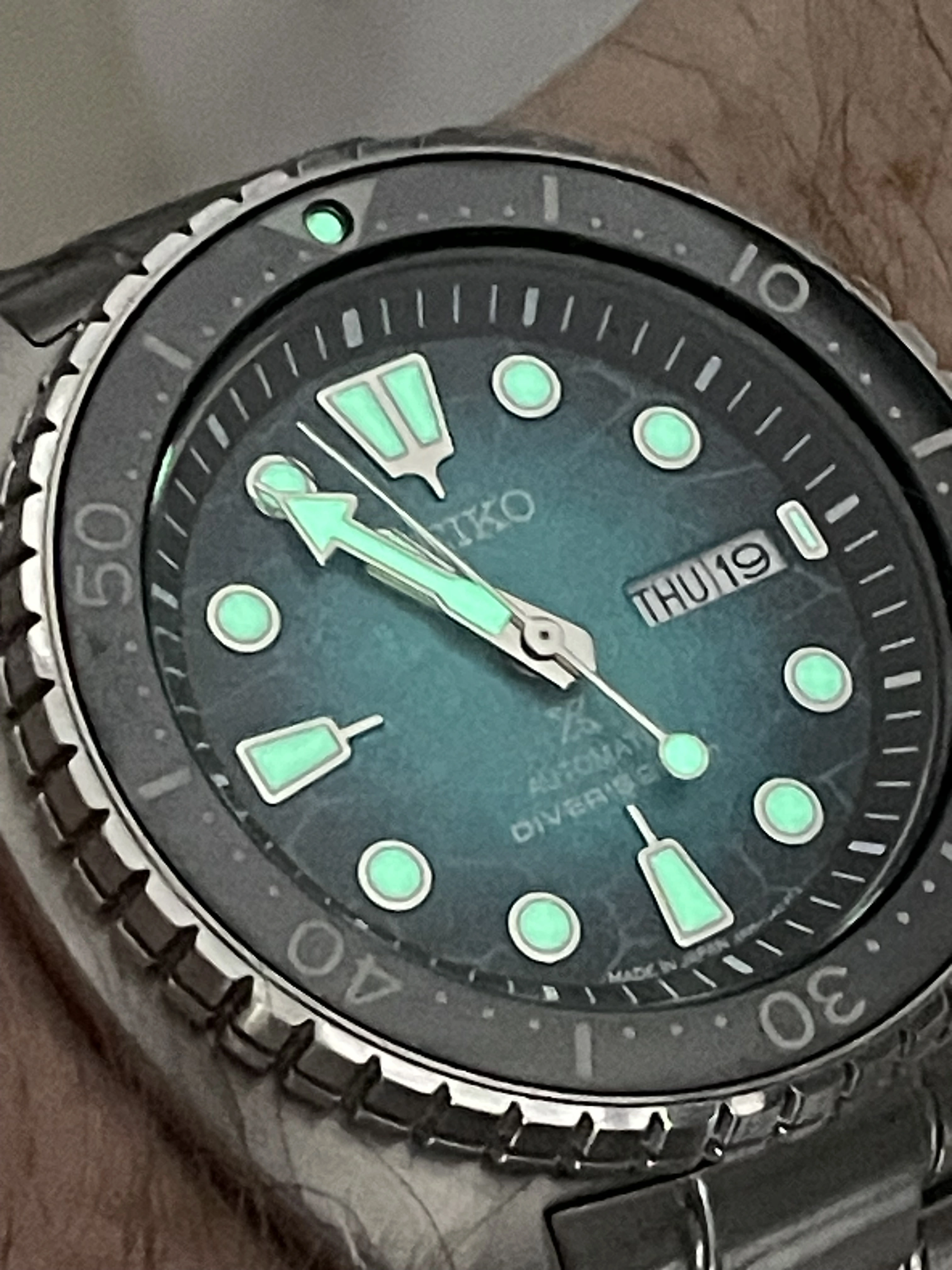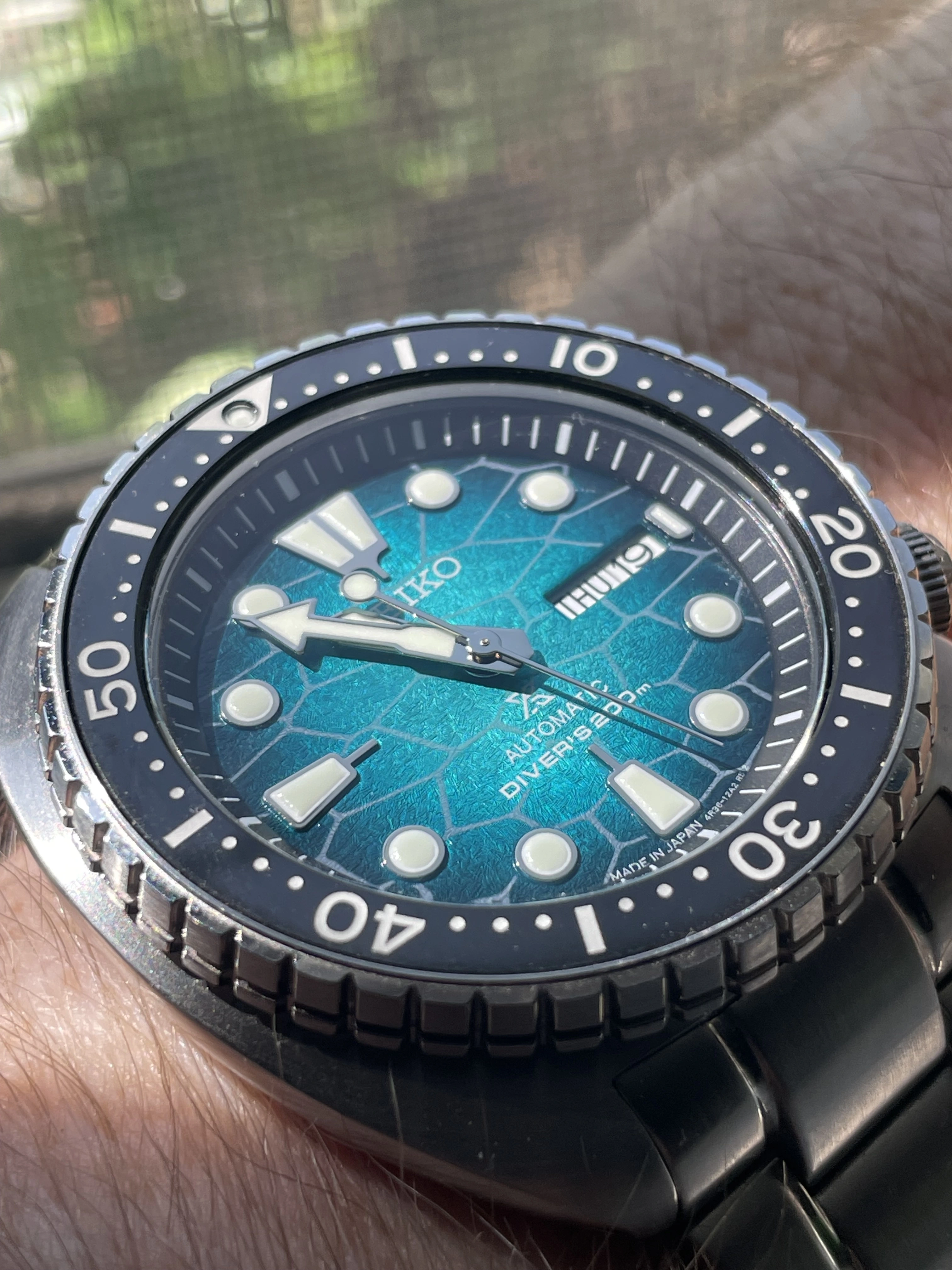 I did! And I have no regrets. This green is wildly saturated. I really like how it goes from an Inky, nearly black in dim lighting to such an intense emerald in sun. Much like my summer blue pictures really do not pick up what is really going on with the dial- but dammed if I won't try!