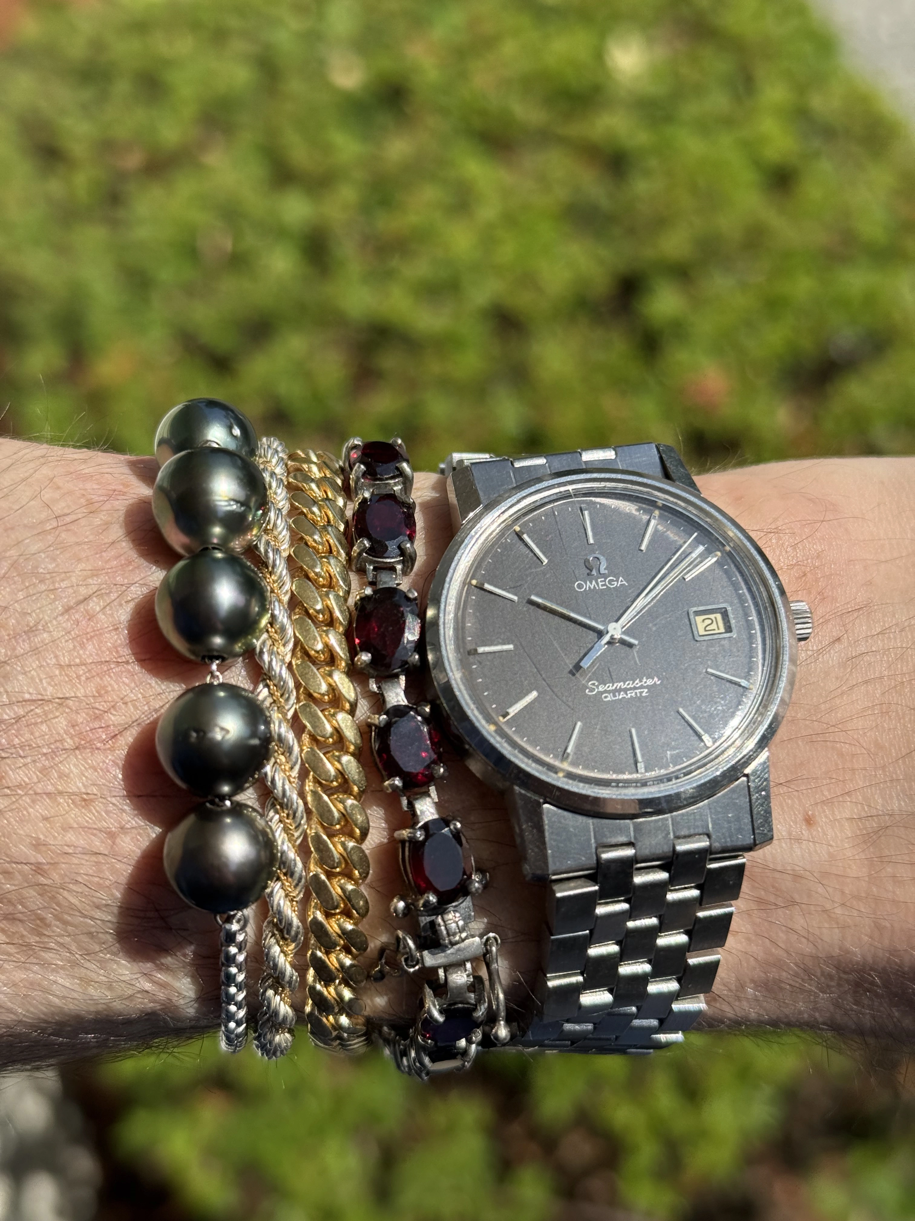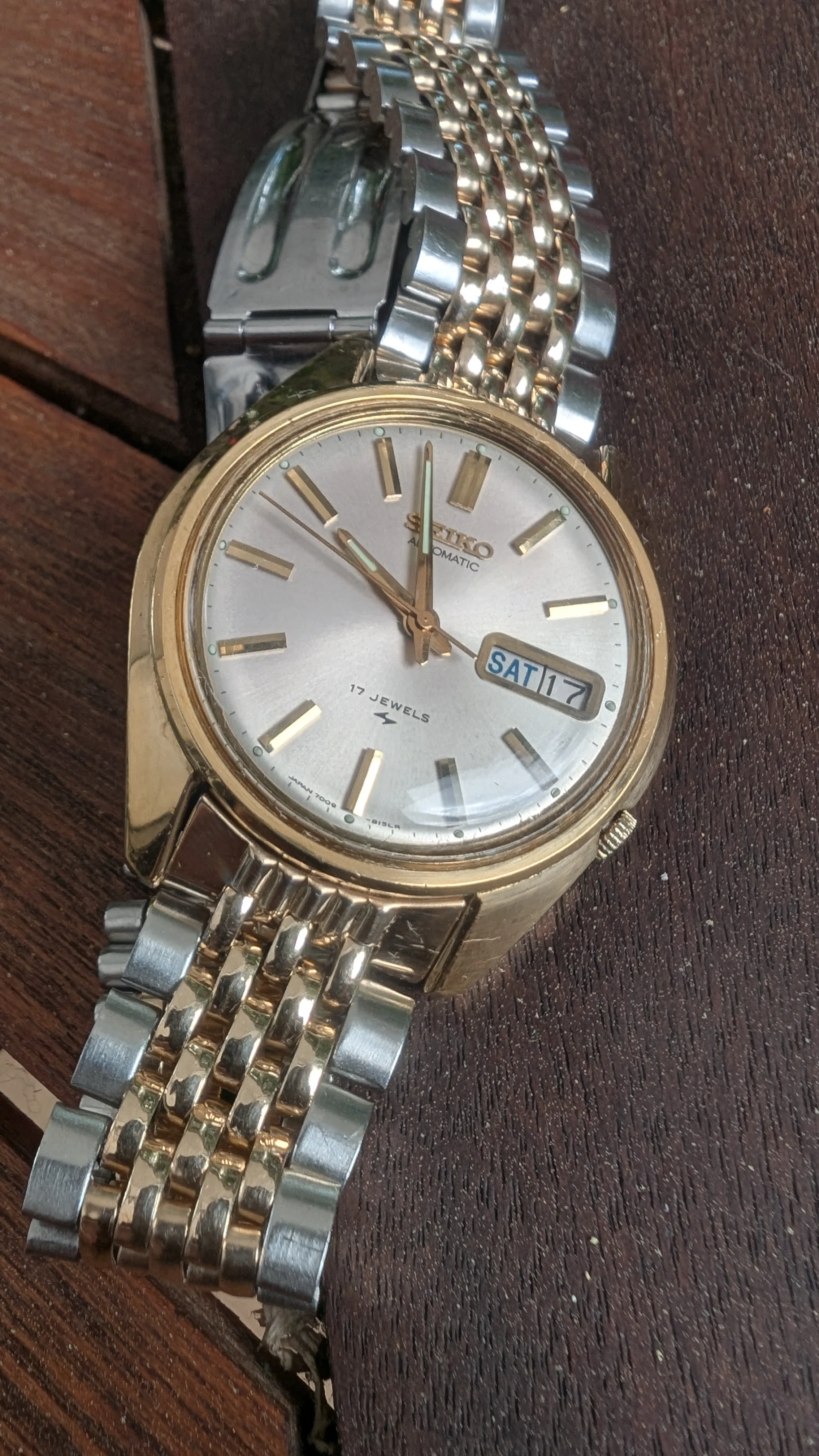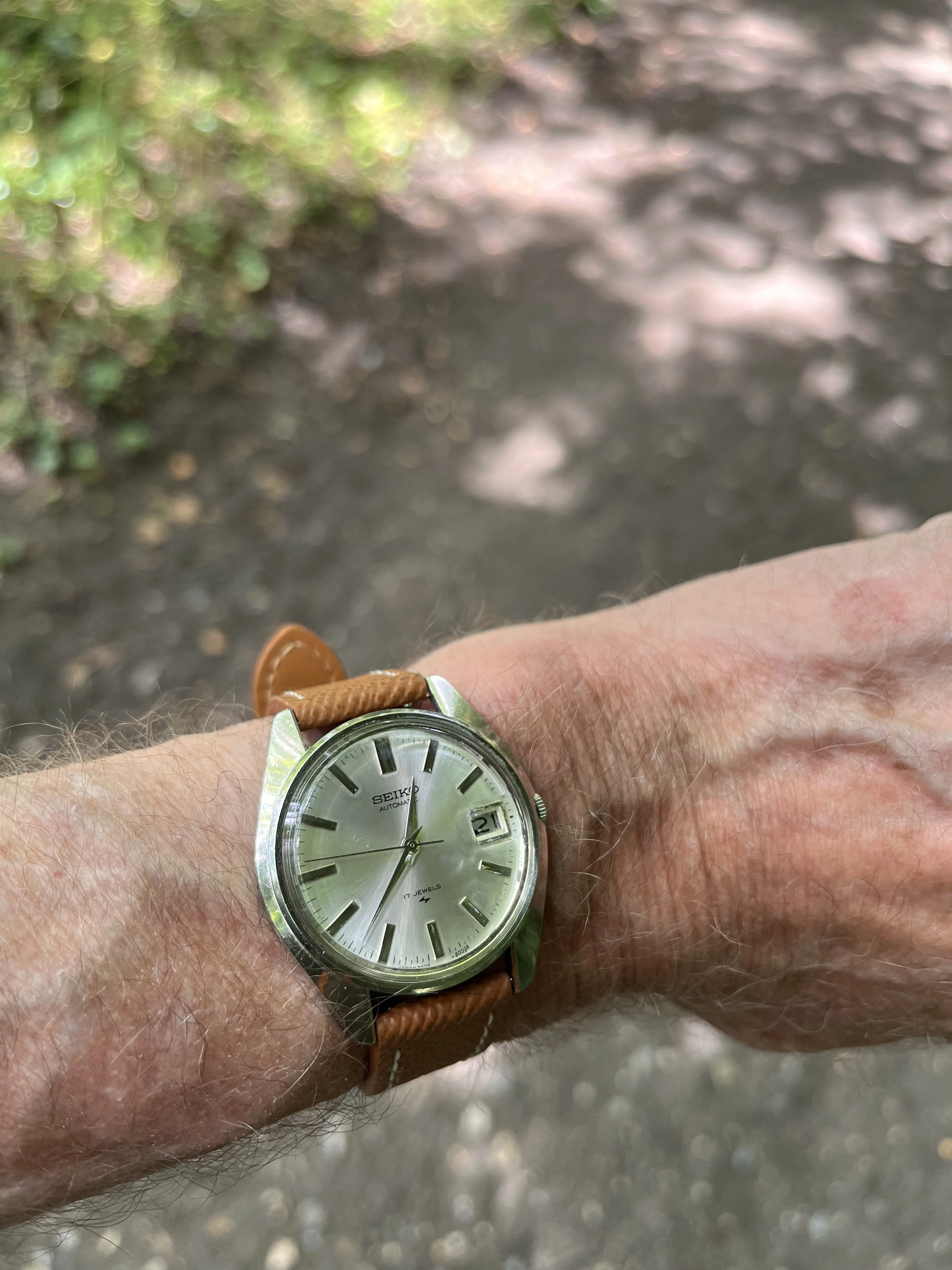 From circa 1955. I acquired it about 40 years ago from a retired geologist who had it on his wrist when the helicopter he was in, crashed. Both he and the watch survived. In its 70 years of existence, it has been serviced twice. Once in 1961 (not by me), and again by me, when I acquired it circa 1985. Manual wind, calibre 266, rose gold filled case. I should wear it more often. Diameter ~ 38 mm, suits my big wrist. Bison calf strap.