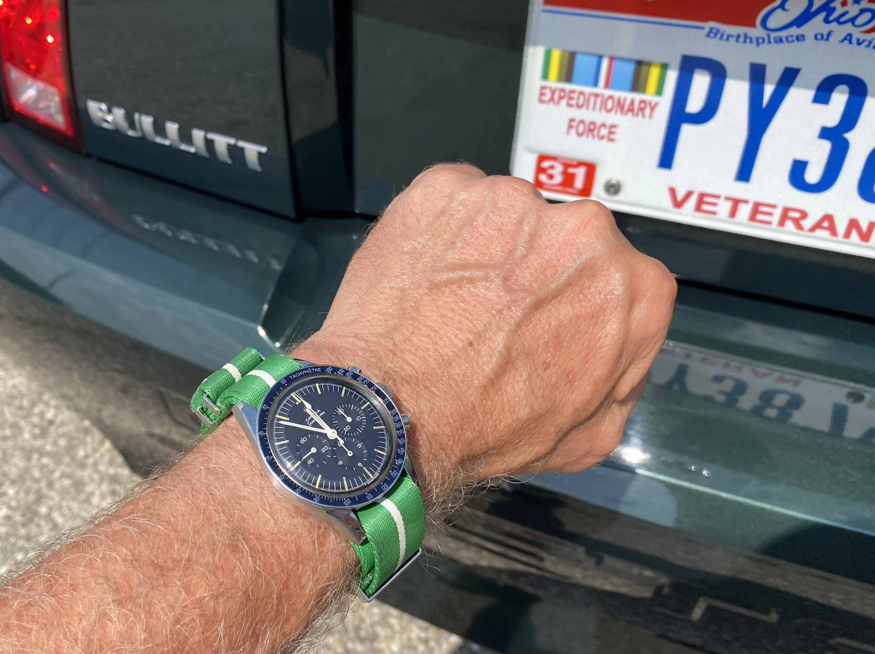 Posts 6,574 Likes 78,068 Mad Dog ·Jul 6, 2025 Cars & Coffee today with my old Mustang and my even older Speedmaster [on a sort of new Omega polyamide NATO]…