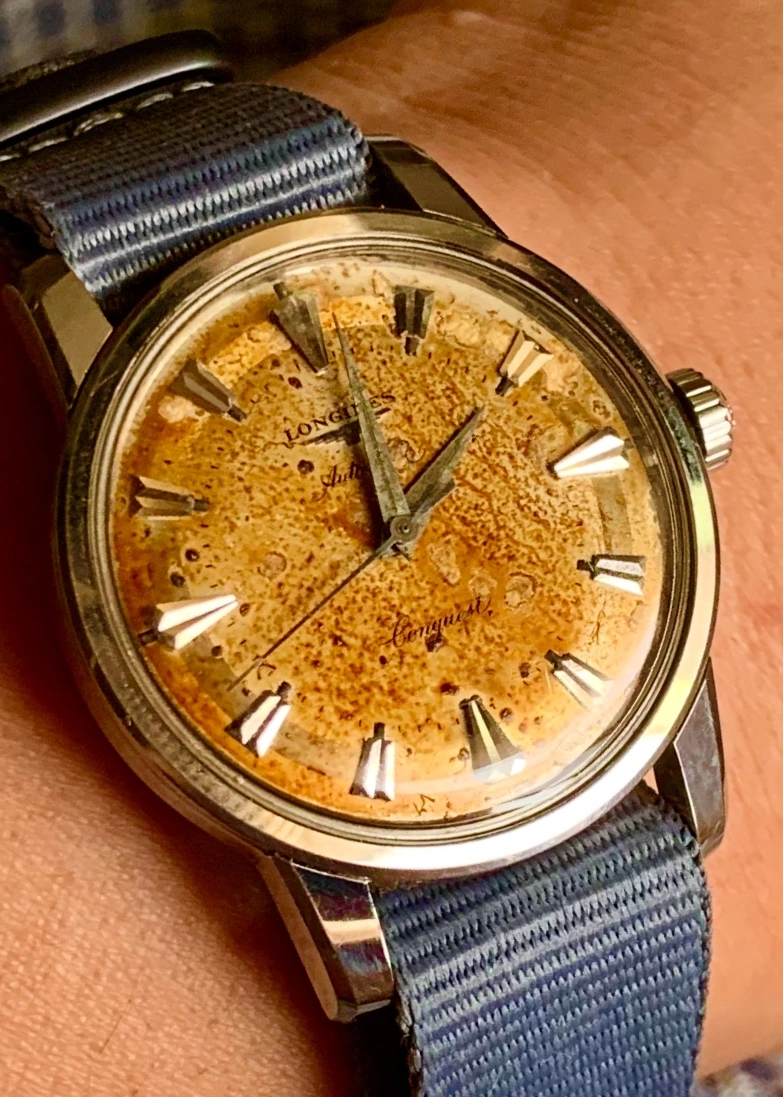 I’ve rejected this watch many times and it keeps popping up in my face. The dial looks like a disaster,maybe it was indeed. But it reminds me the works of Fan Kuan (Song dynasty) a lot,and the contemporaries such as A.Kiefer’s.