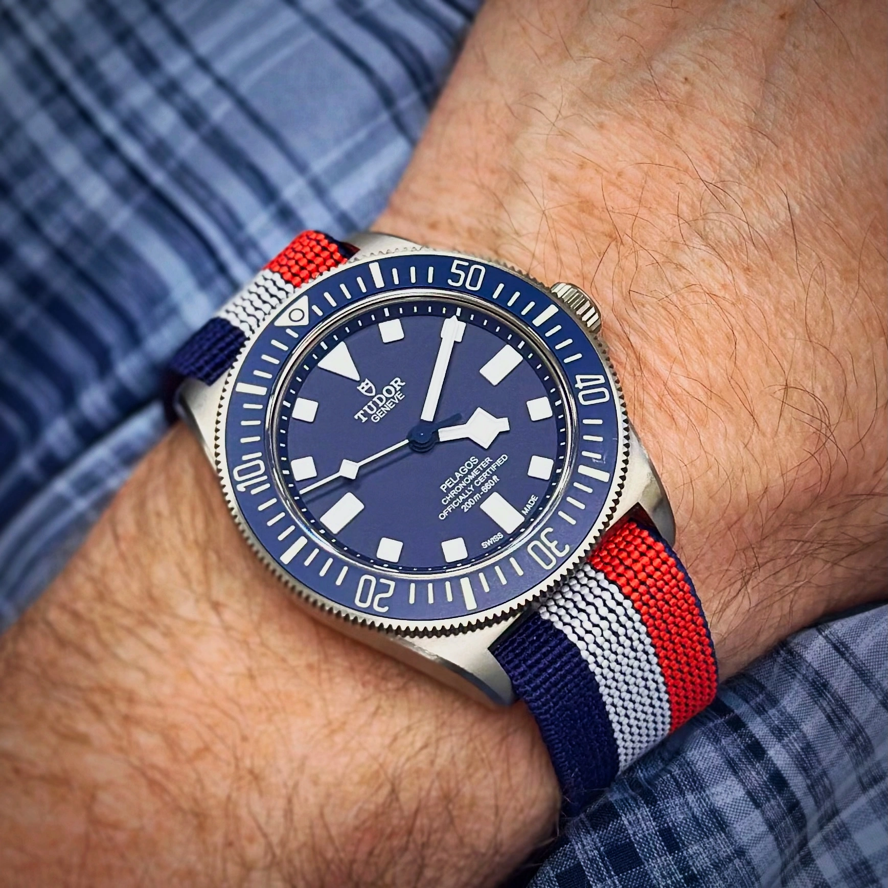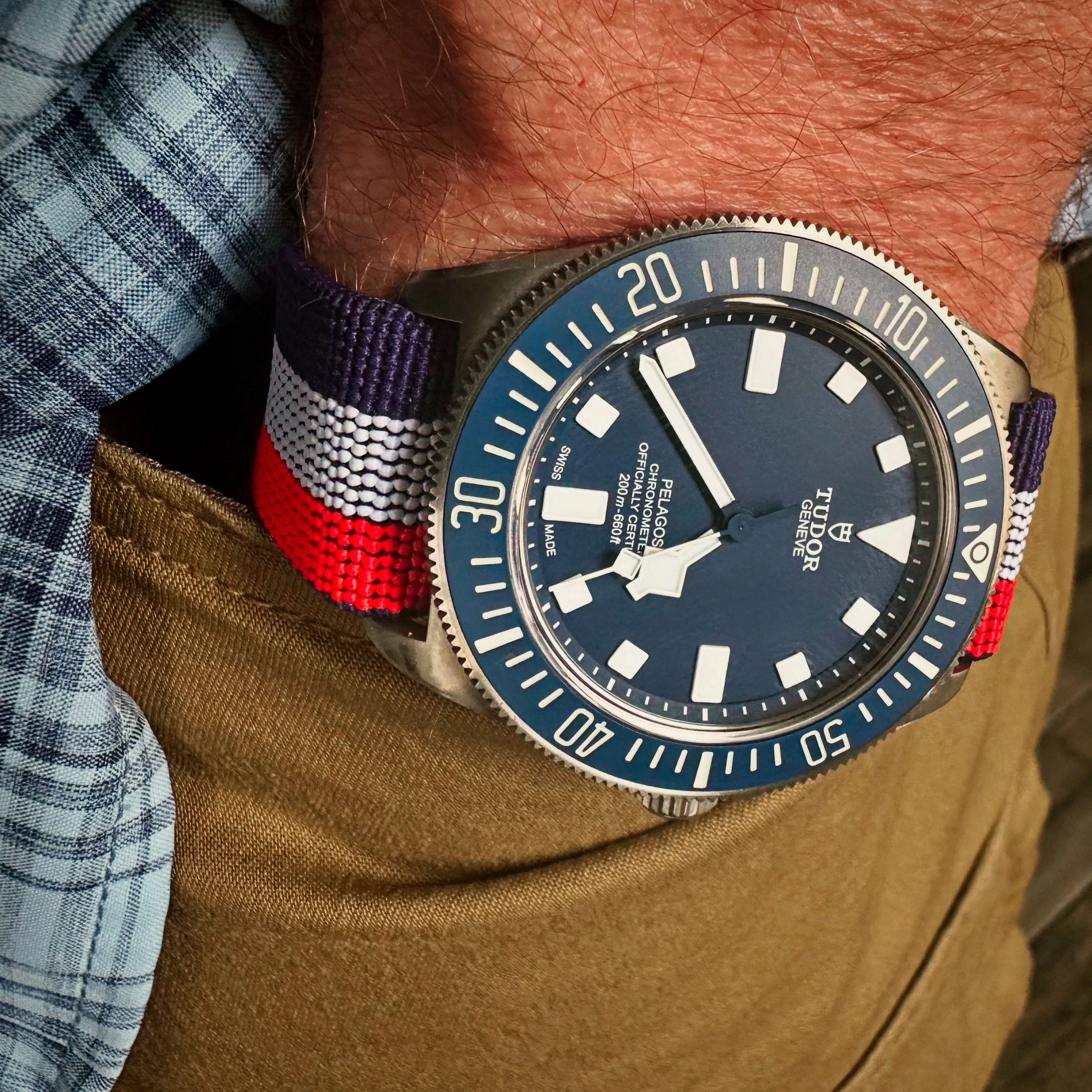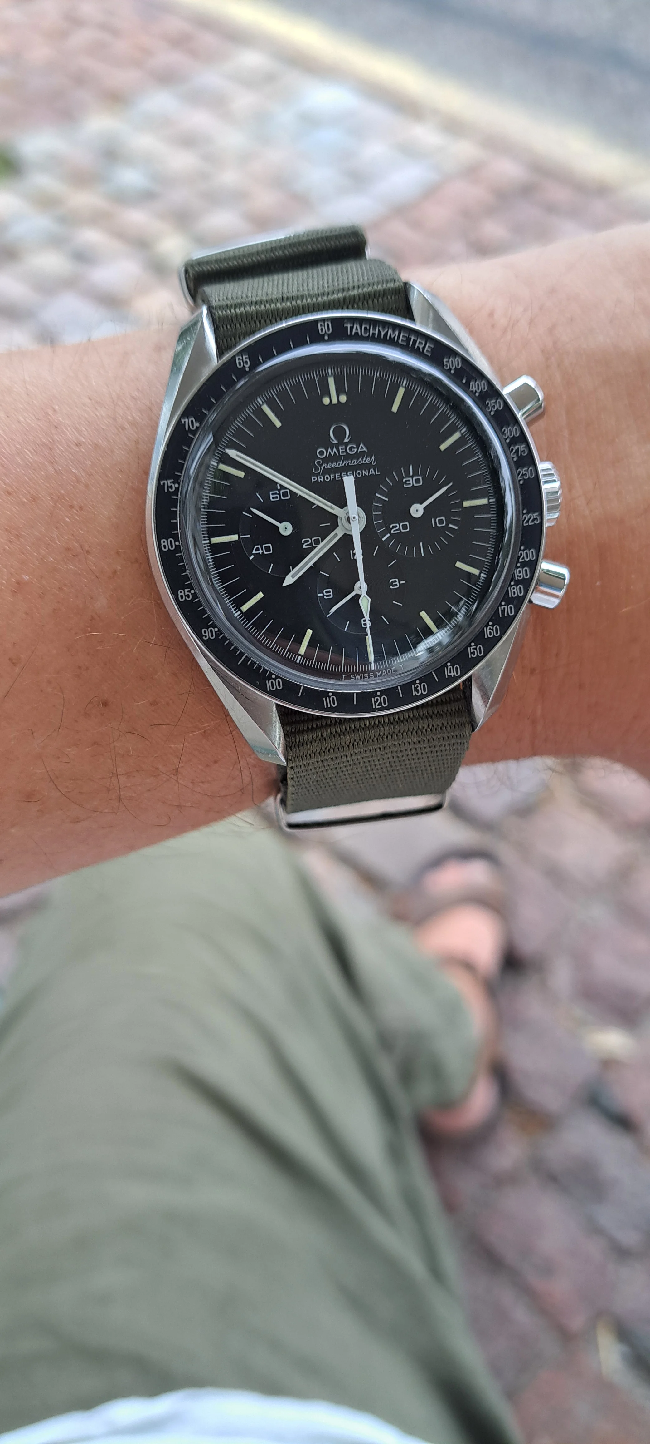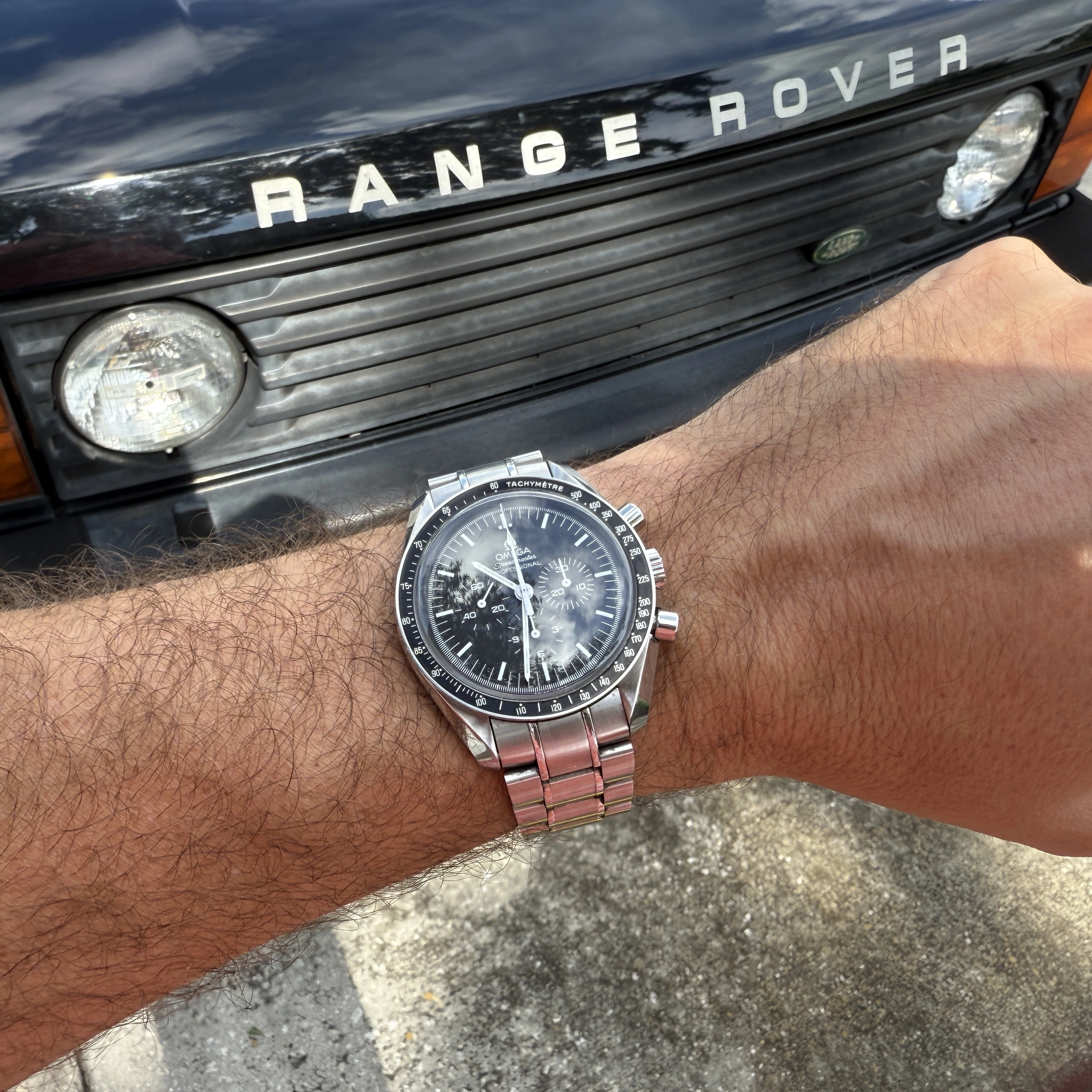 Irrational, I know, but it has been some time since I have worn a bumper automatic. So I decided I’d cure the itch by putting on my mid 1950s “survivor” Omega bumper automatic, calibre 351. I call this one a survivor because it appeared to me that its previous owner had done everything in his power to destroy it! As you see it, the case has been changed to a period correct Omega case, replacement (better) dial, crystal, crown (generic), hand made case clamp, mainspring, and a thorough service. Hardly a grail watch for an ardent Omega collector, but it continues to amaze me at its performance.
