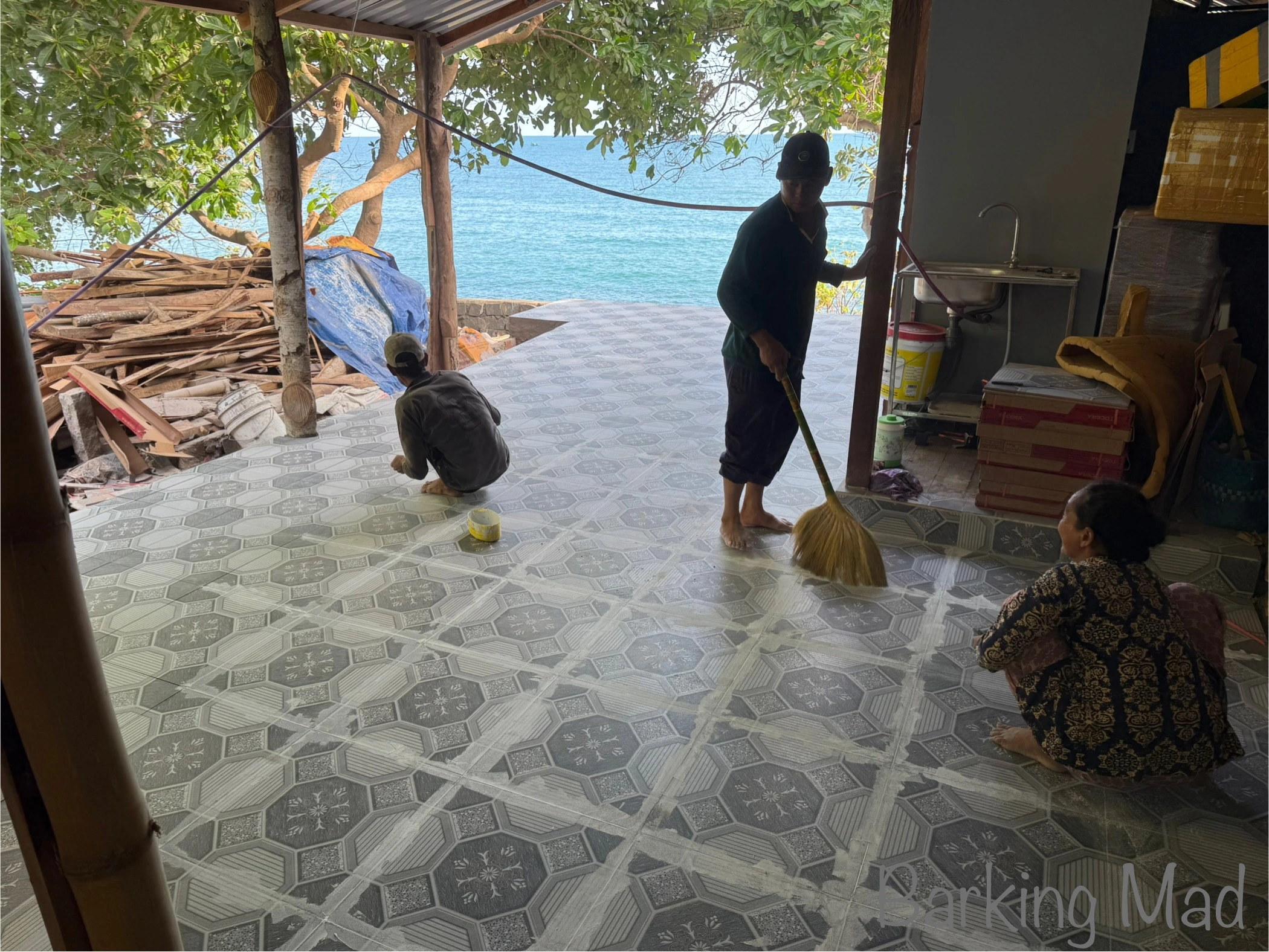 The tiler finishing of the tiles for the second time when I told him that I couldn’t cope with a 220mm fall over 8 meters🥴