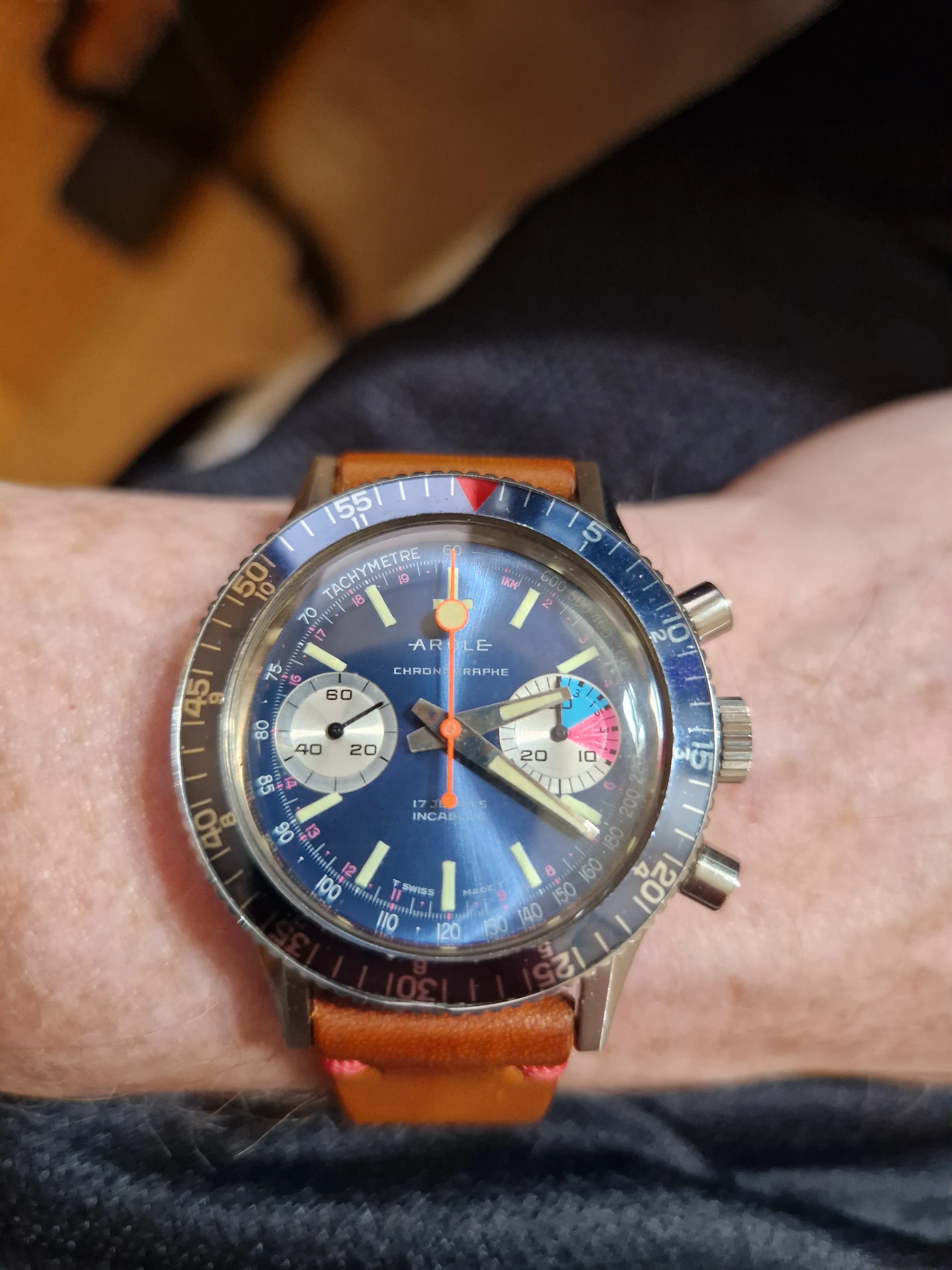 Posts 1,090 Likes 7,033 Dr.Sascha ·Aug 28, 2025 A new acquisition, an Arole-branded Baylor chrono. Enjoyed in the quirky, sunny, art-filled city of Bristol.