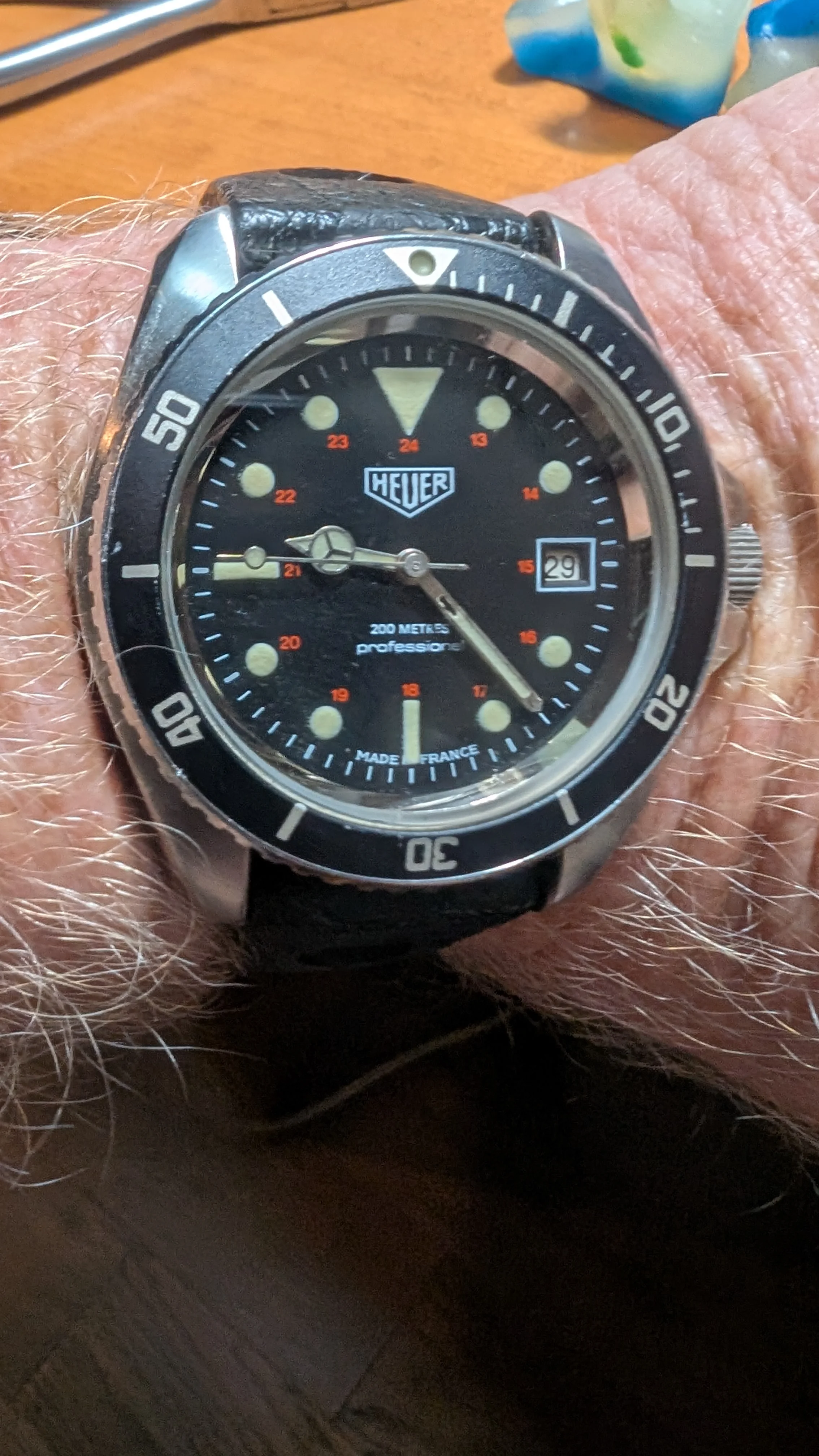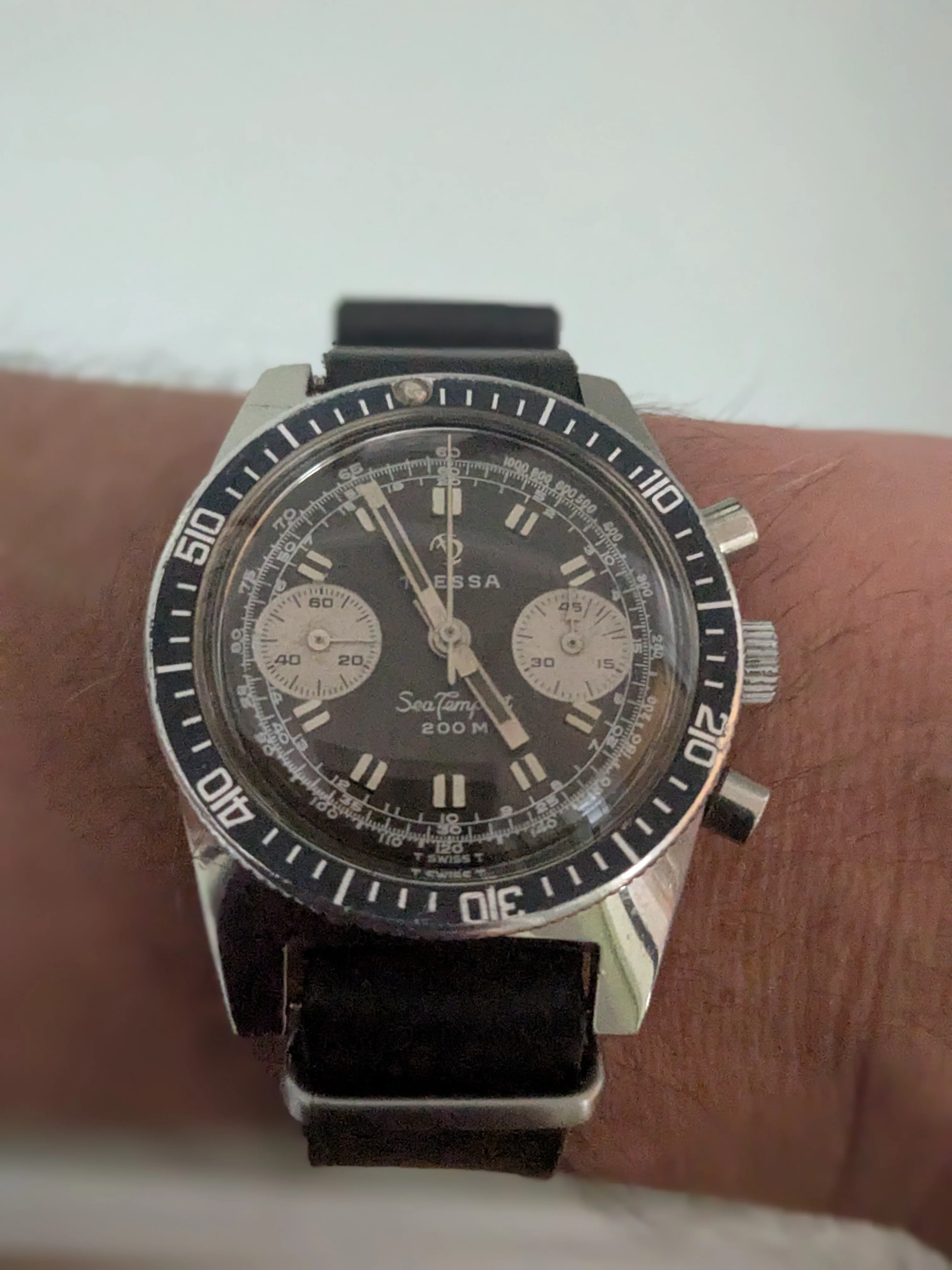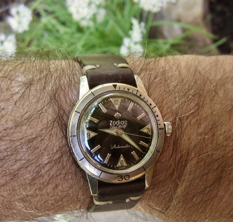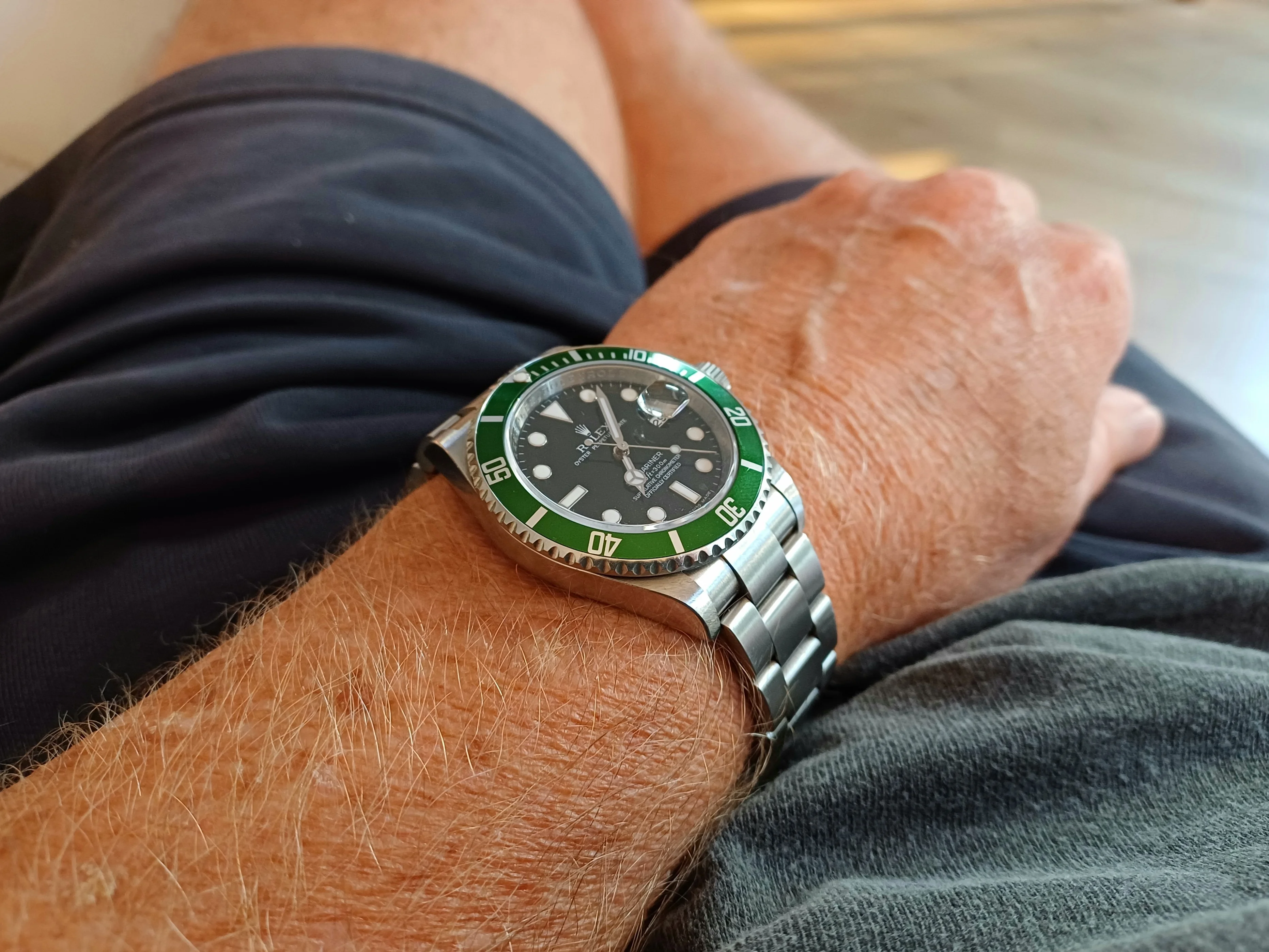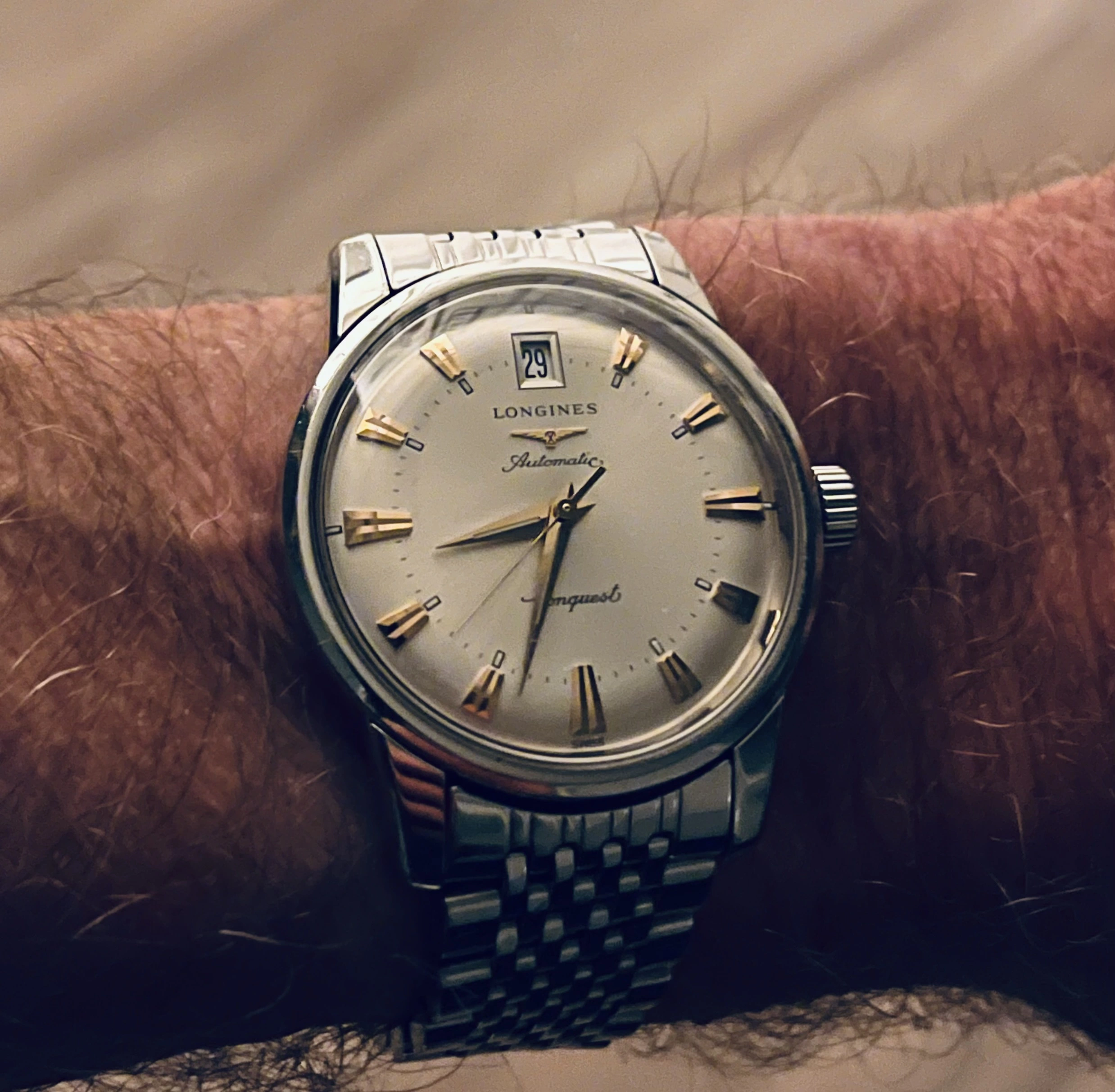 Unique and gorgeous color way with the green bezel and gilt dial. The riveted bracelet is just a bonus. I find it in my rotation a lot more than I had planned.