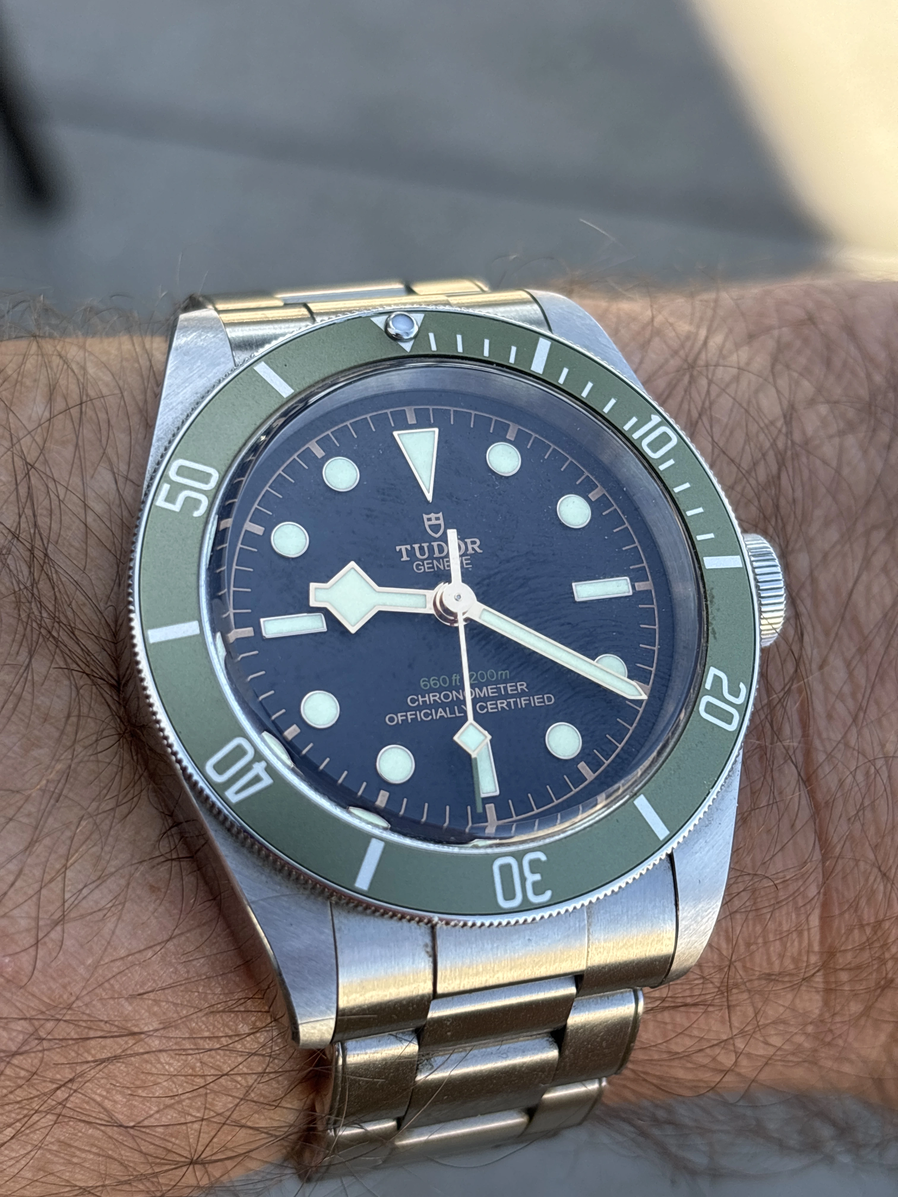 These Tudor Harrods LE’s are really great pieces esp at last years prices. Unique and gorgeous color way with the green bezel and gilt dial. The riveted bracelet is just a bonus. I find it in my rotation a lot more than I had planned.