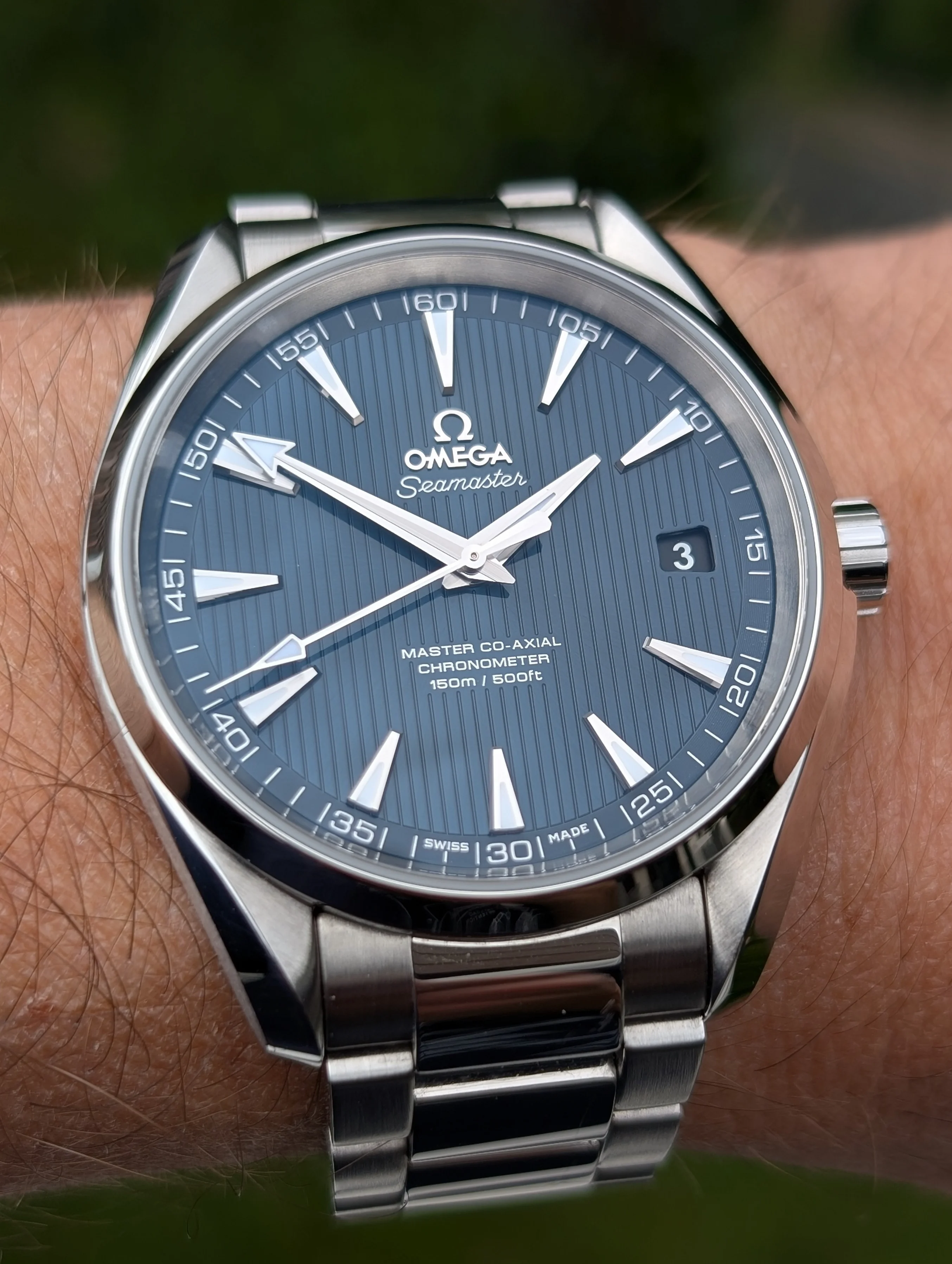 Posts 9,610 Likes 53,219 gbesq ·Sep 3, 2025 One of Omega’s best modern dial. The Aqua Terra from the 38.5mm Skyfall.