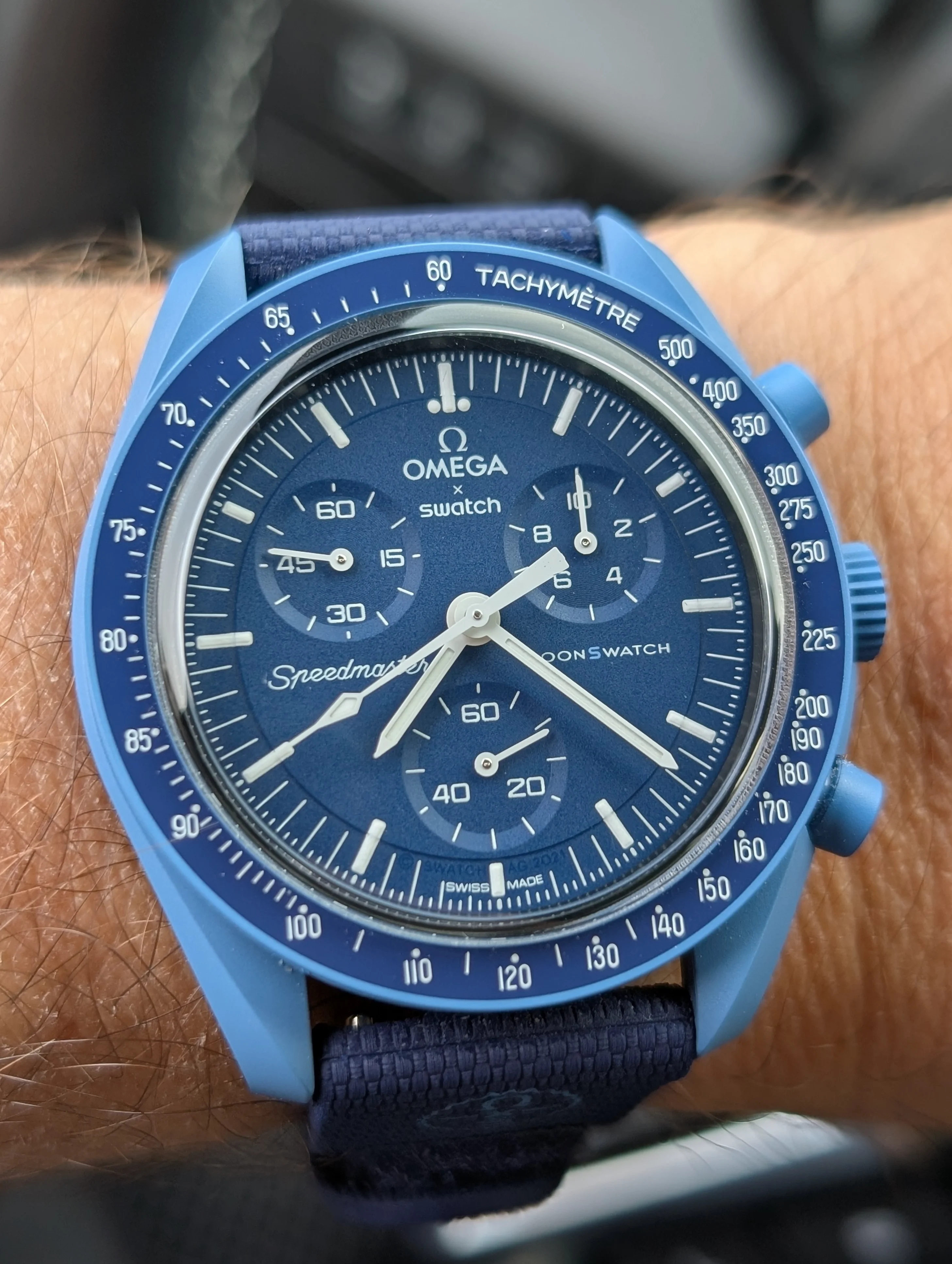 😀 haha good question, we have a couple of MoonSwatches in the family and together with the 1965 the Neptune is one I actually like but it's already getting not that much wrist time... So let's see and the deal on the real one is still not sealed...