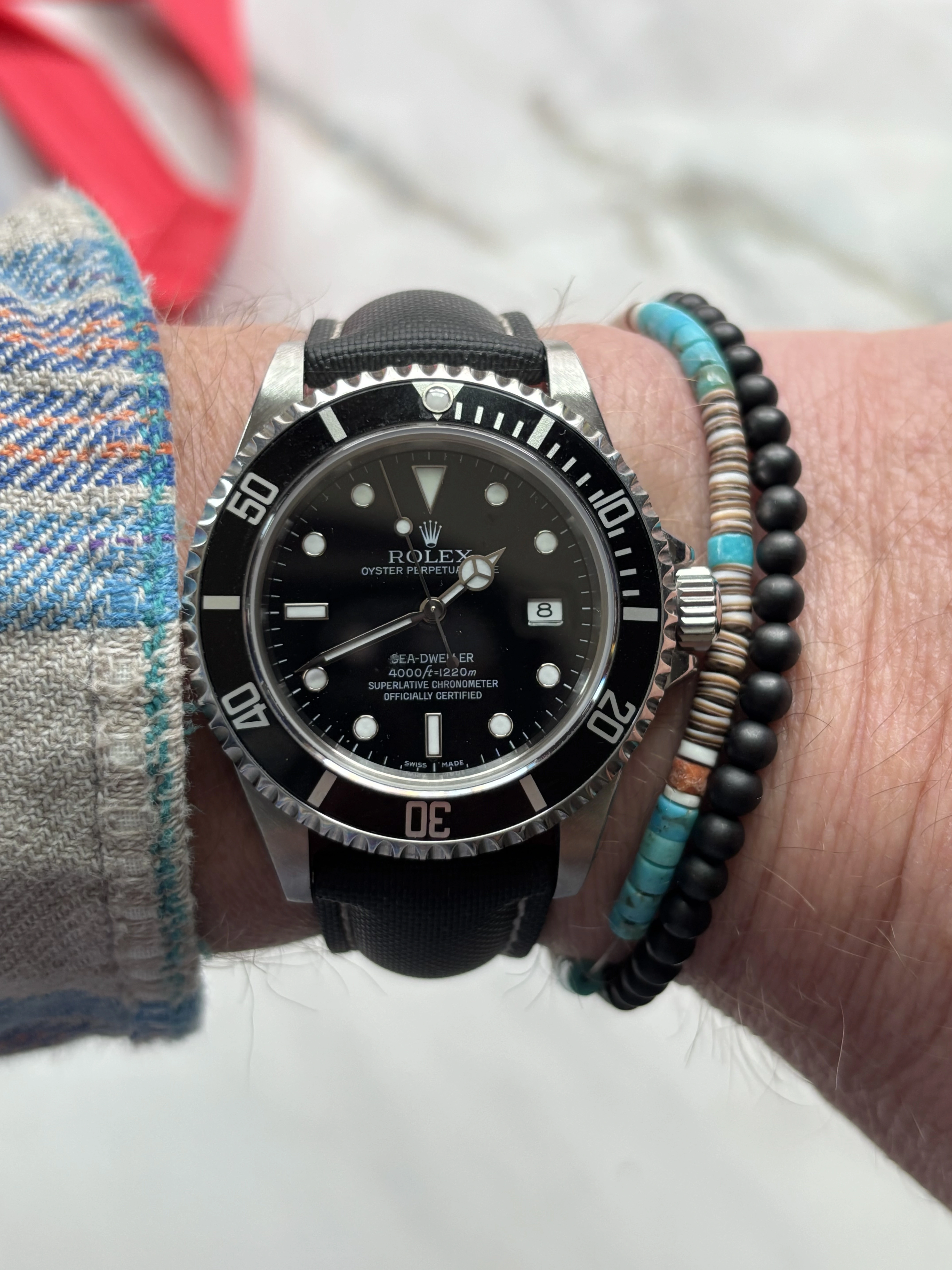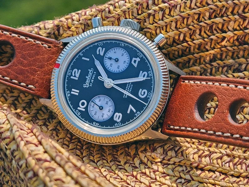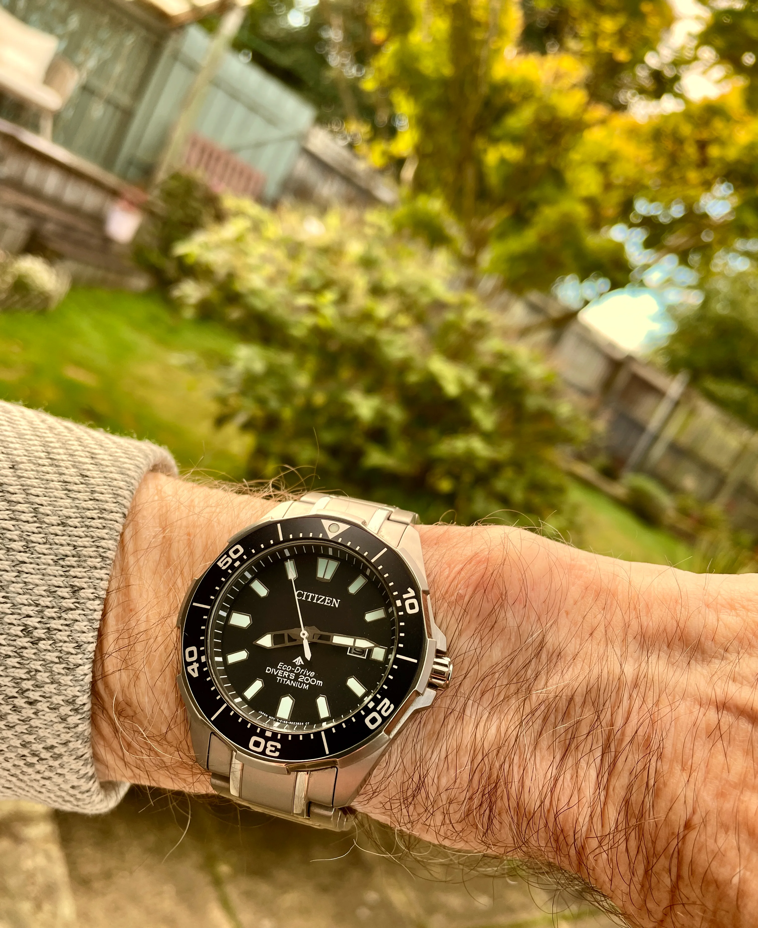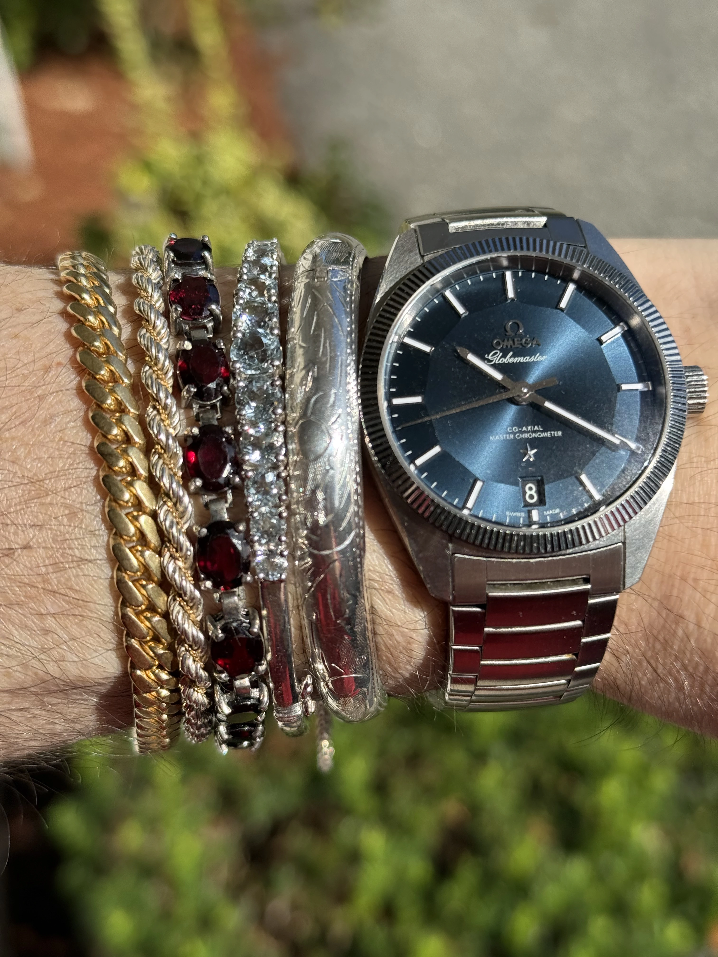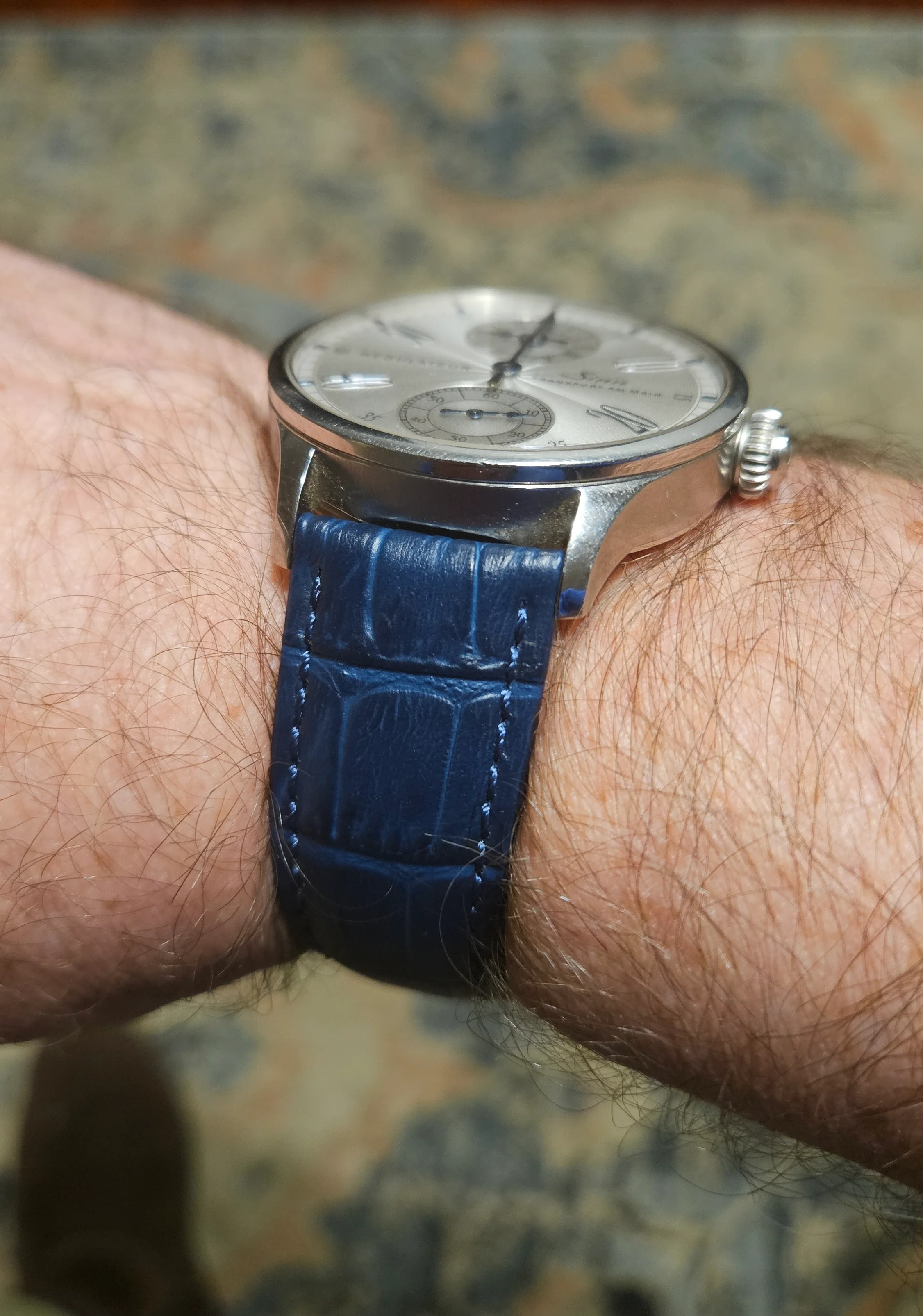 Most of my collection is tied up, organized for our watch exhibit this coming week end. So I’ll wear the Speedmaster, on accounta it’s Tuesday, tomorrow. I realize it is Tuesday already, for many of you. One owner, (me), 35 years old. The 345.0808 was the first Speedmaster to be made with a sapphire back (1980.) Hence the gold plated movement.