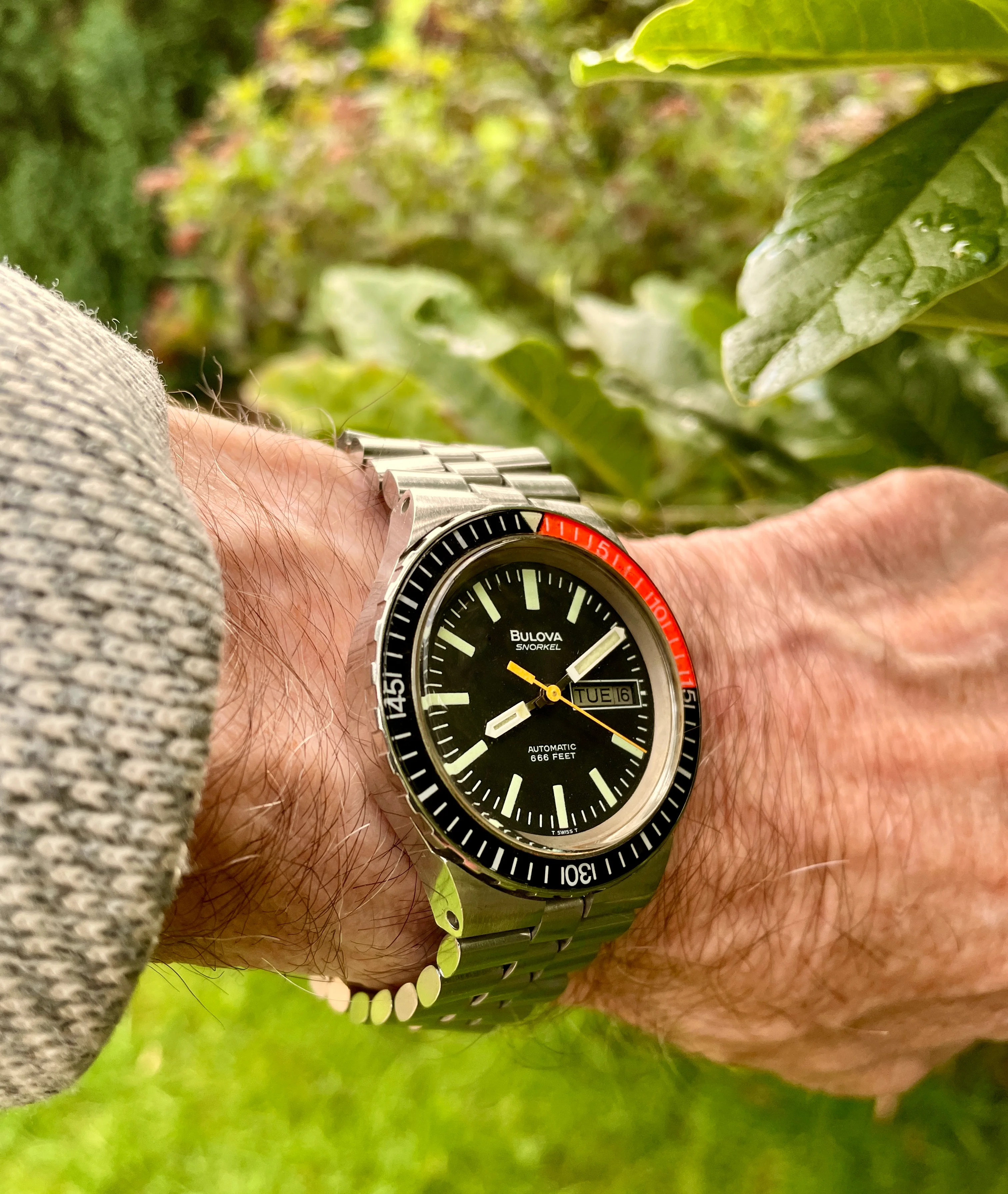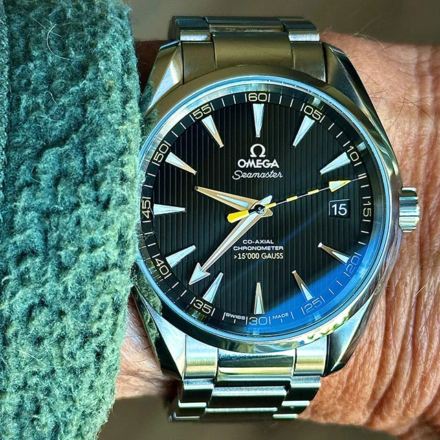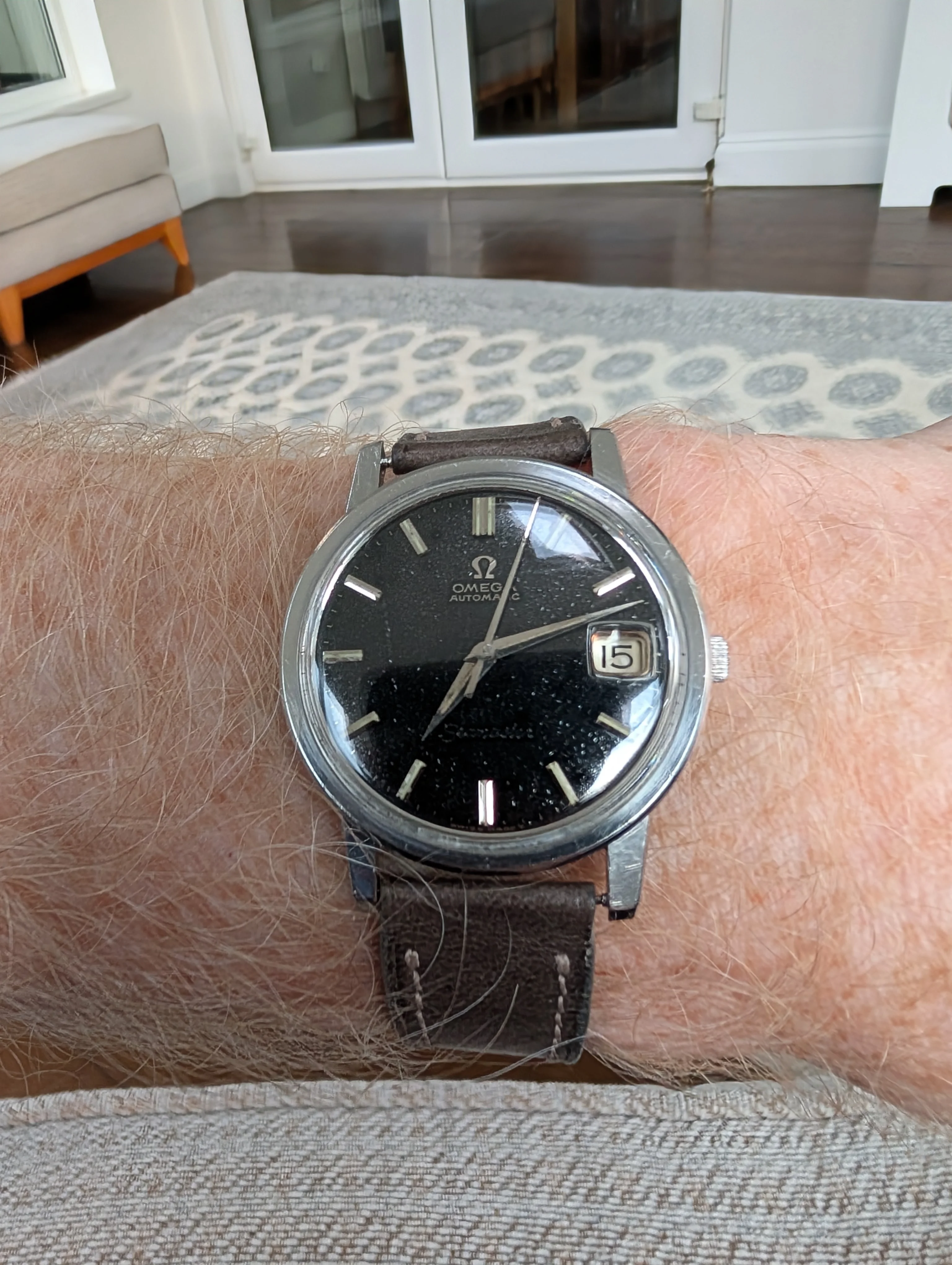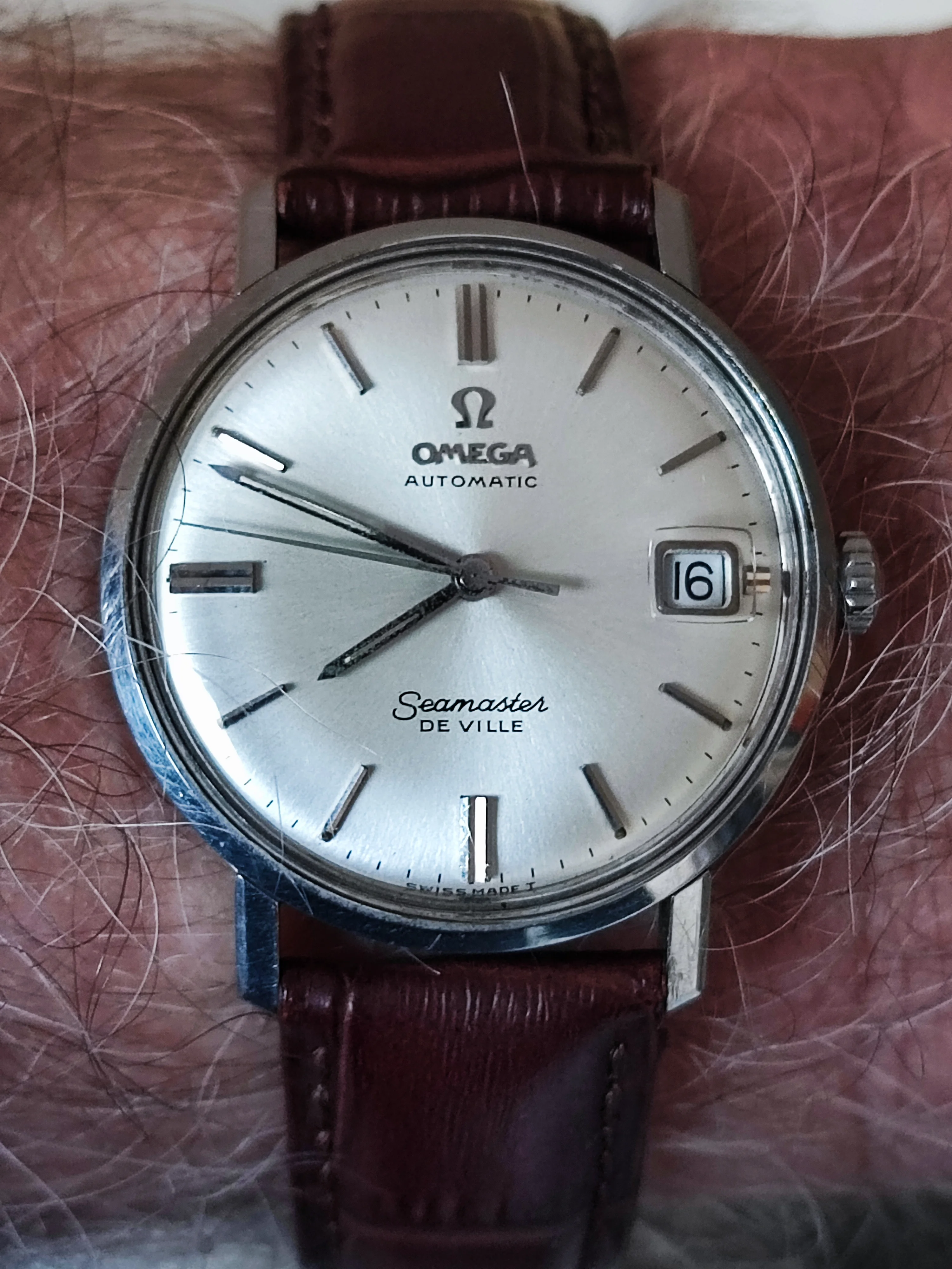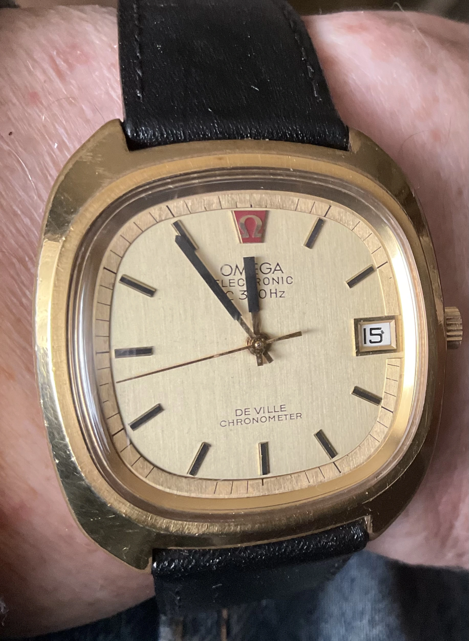 I spent the weekend being a watch collector. (Didn鈥檛 gather anything, but put out plenty of feelers. We shall see.) Three of us had an exhibit at a weekend celebrating the days of steam locomotives. Fun, fun. Very hoarse today. Anyway, the railroad watches and display props are put away until next spring, so back to wearing a favourite. My 50 year old (almost) Omega DeVille F300 tuning fork model chronometer. A presentation watch to someone in 1977. Sadly, he passed away. The watch wasn鈥檛 working, so the family let it go. I have never seen a watch as totally gummed up is this one was. Recondition, new cell, new crystal (cost me more than the watch did!) Love it!