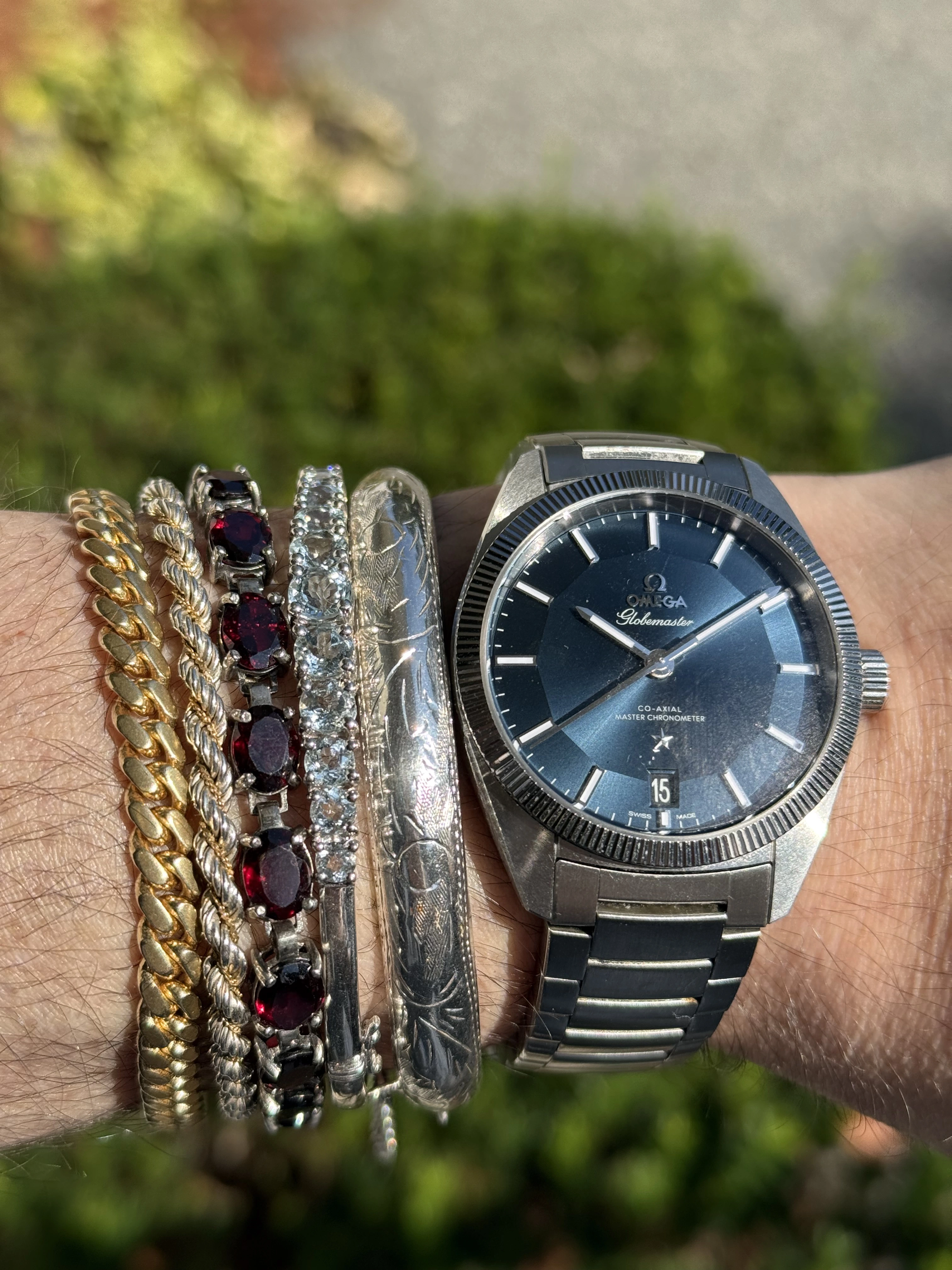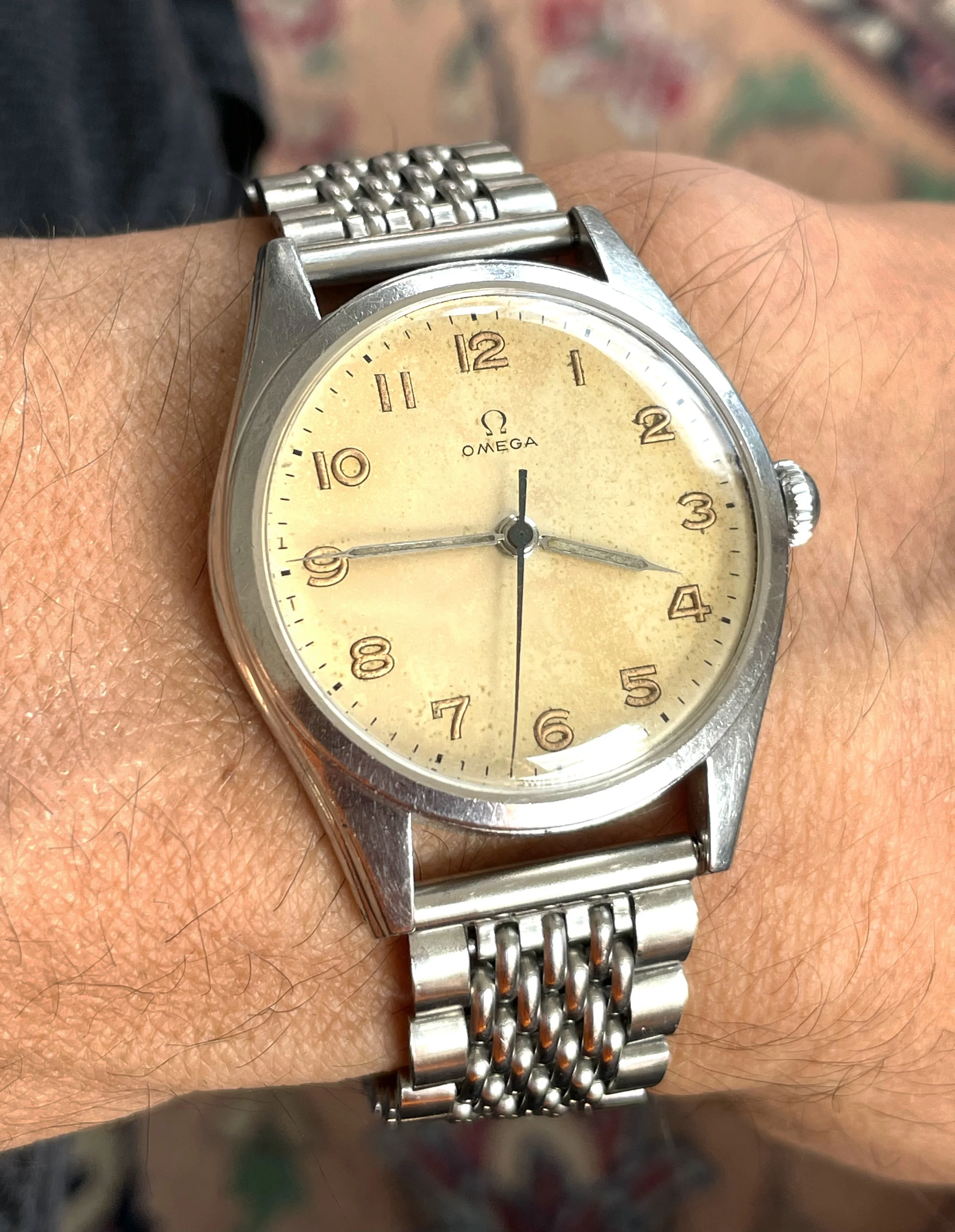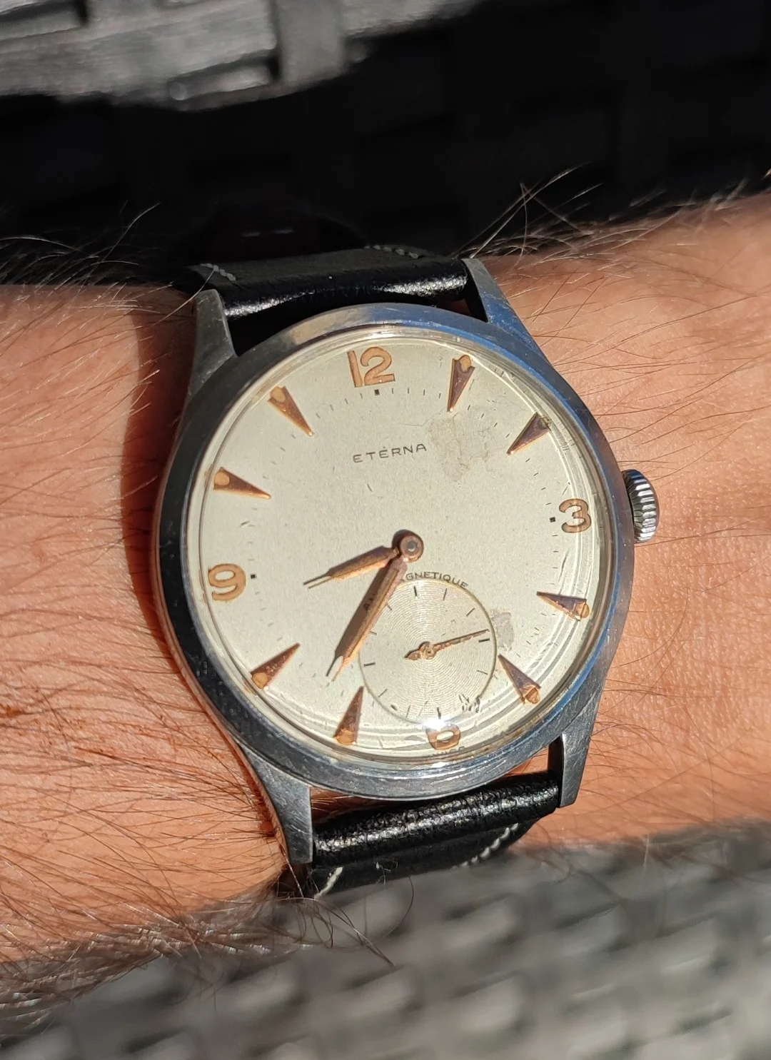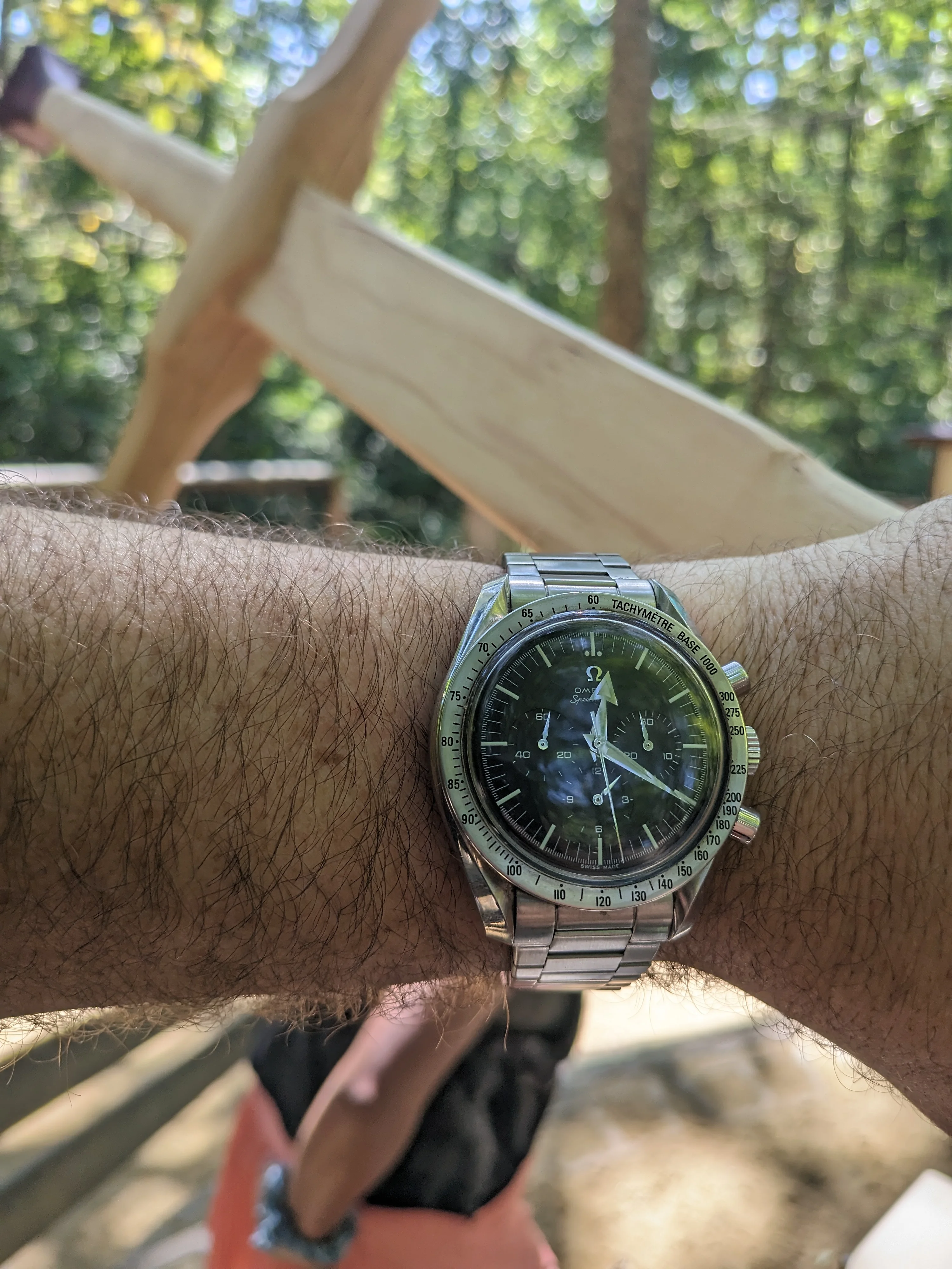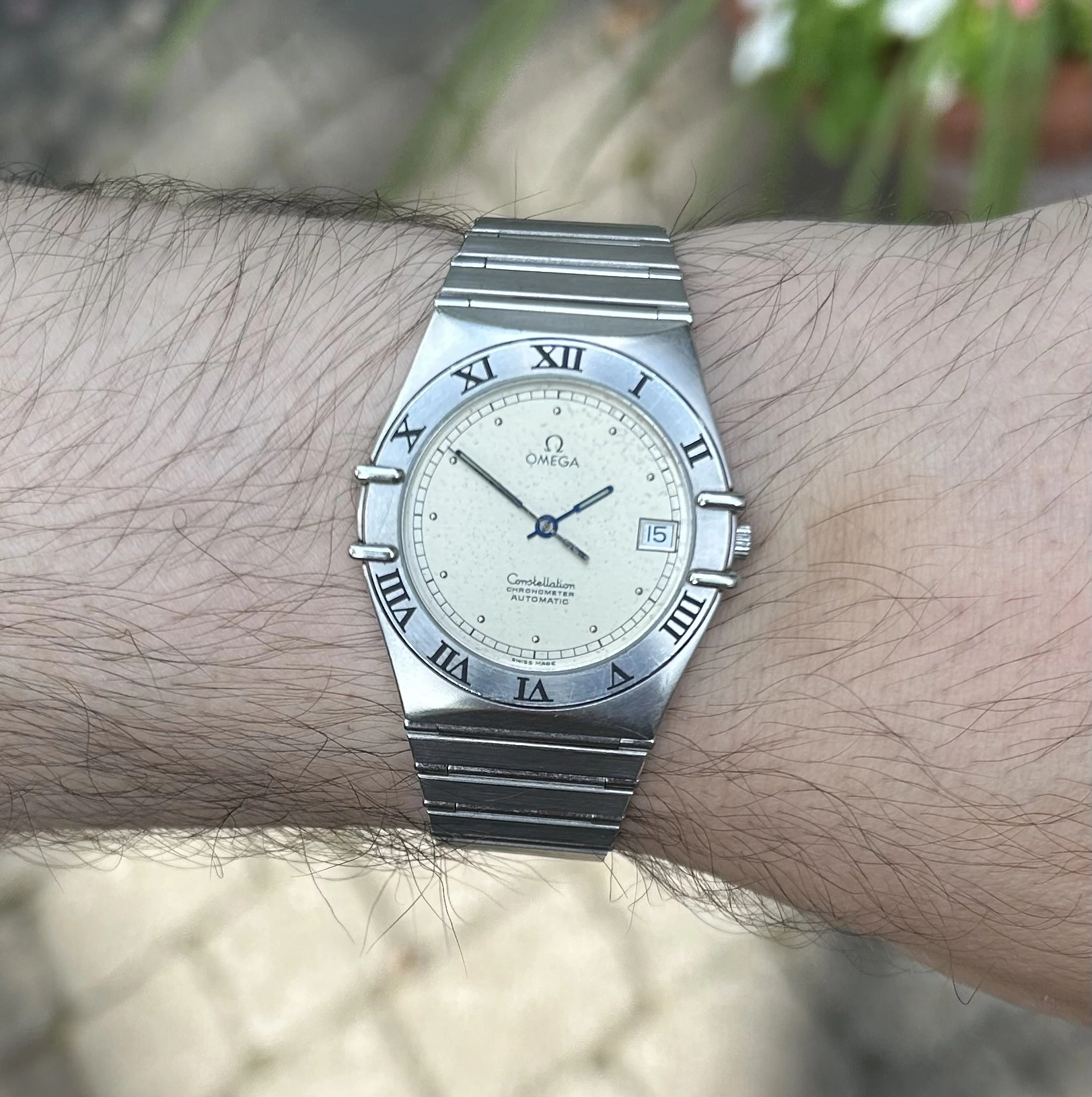 I spent the weekend being a watch collector. (Didn鈥檛 gather anything, but put out plenty of feelers. We shall see.) Three of us had an exhibit at a weekend celebrating the days of steam locomotives. Fun, fun. Very hoarse today. Anyway, the railroad watches and display props are put away until next spring, so back to wearing a favourite. My 50 year old (almost) Omega DeVille F300 tuning fork model chronometer. A presentation watch to someone in 1977. Sadly, he passed away. The watch wasn鈥檛 working, so the family let it go. I have never seen a watch as totally gummed up is this one was. Recondition, new cell, new crystal (cost me more than the watch did!) Love it!