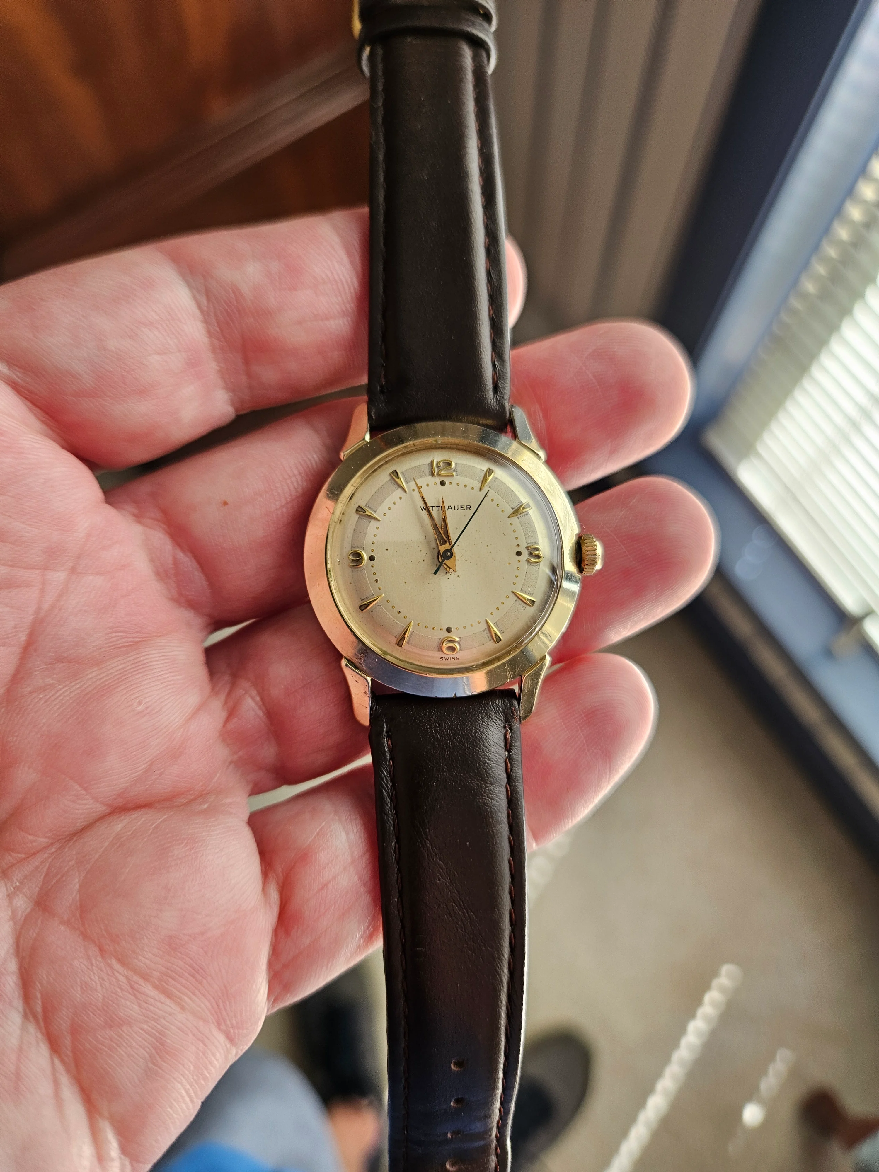 The 5th of my watch finds this summer. I believe this to be a late 50's or early 60's Wittnauer. It came on a vintage Kreisler band I will use on a different watch someday. Paid $10 at that same junk shop a couple of weeks ago.