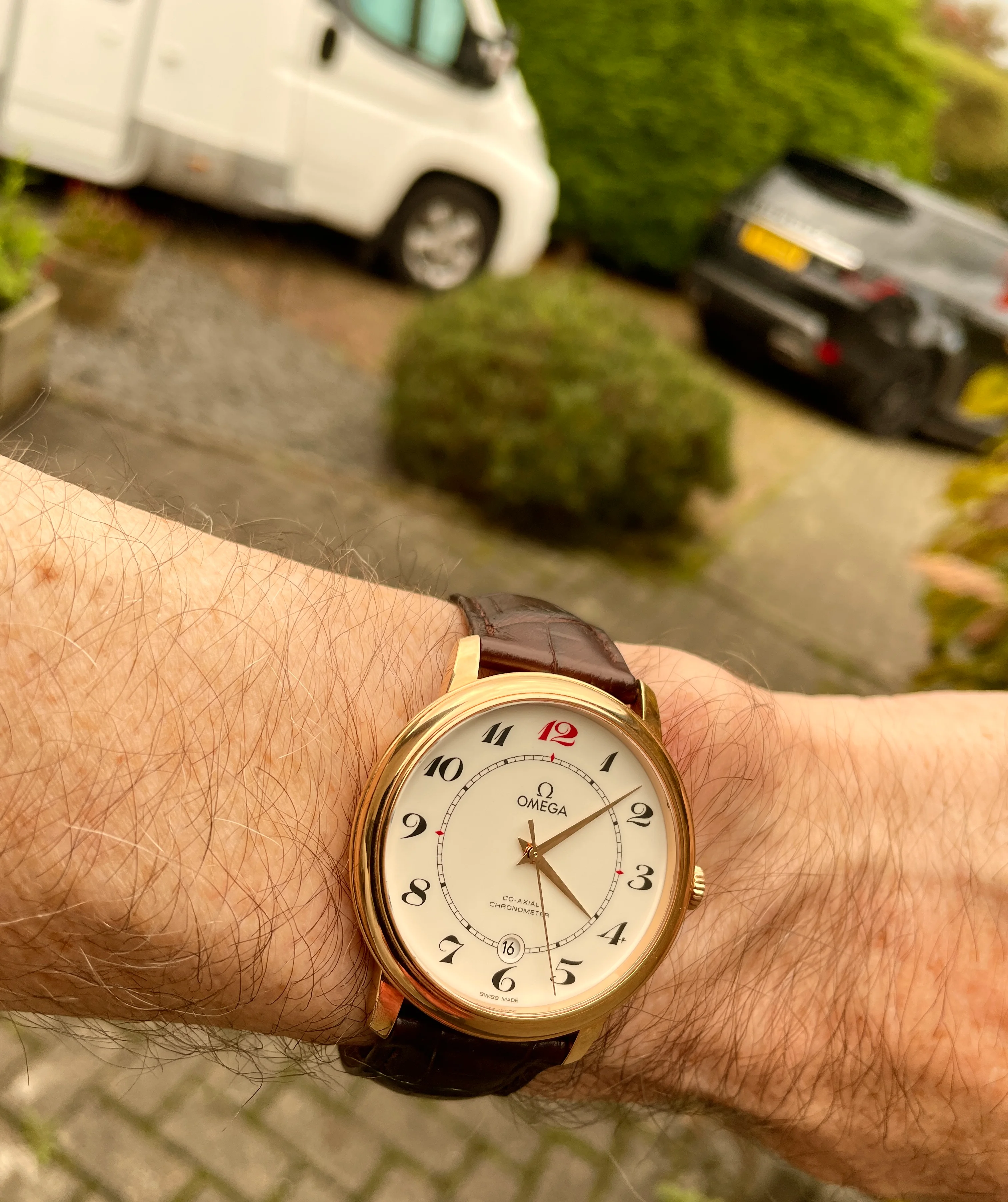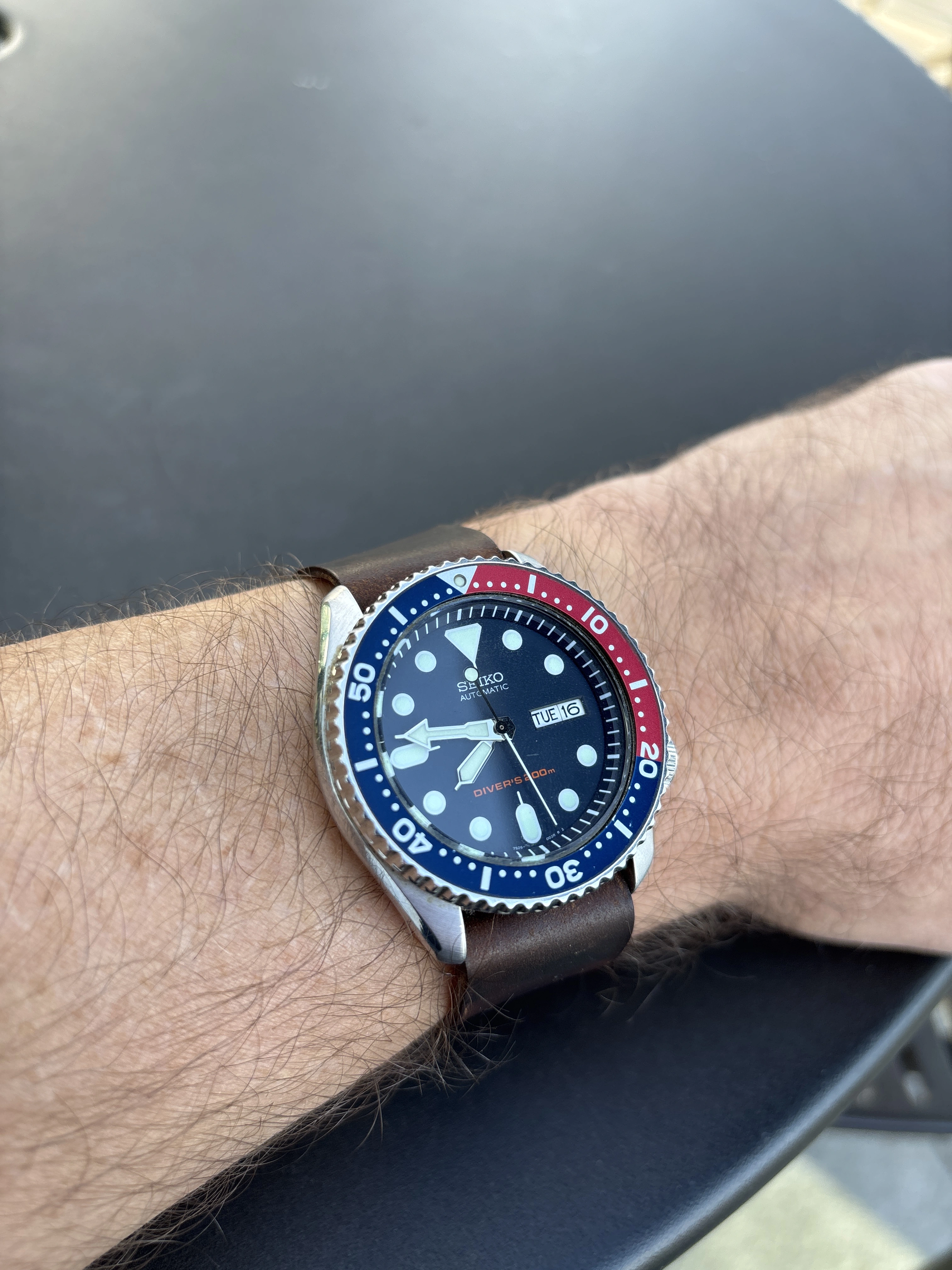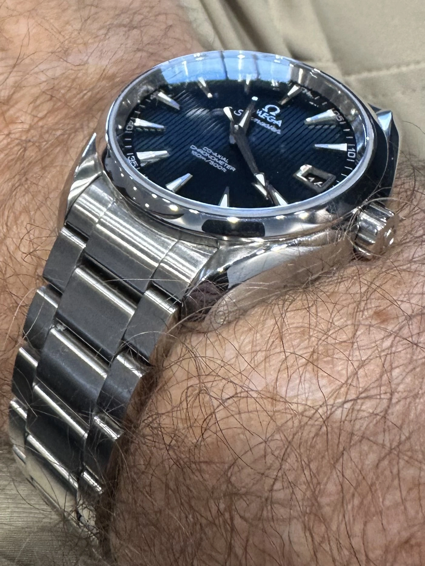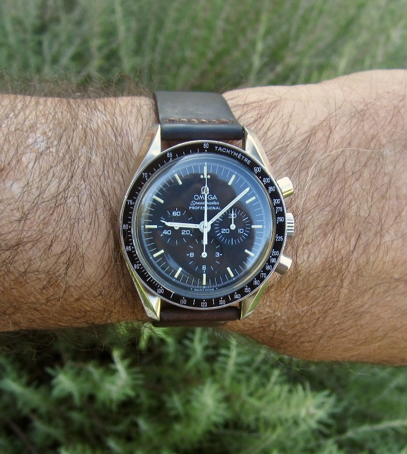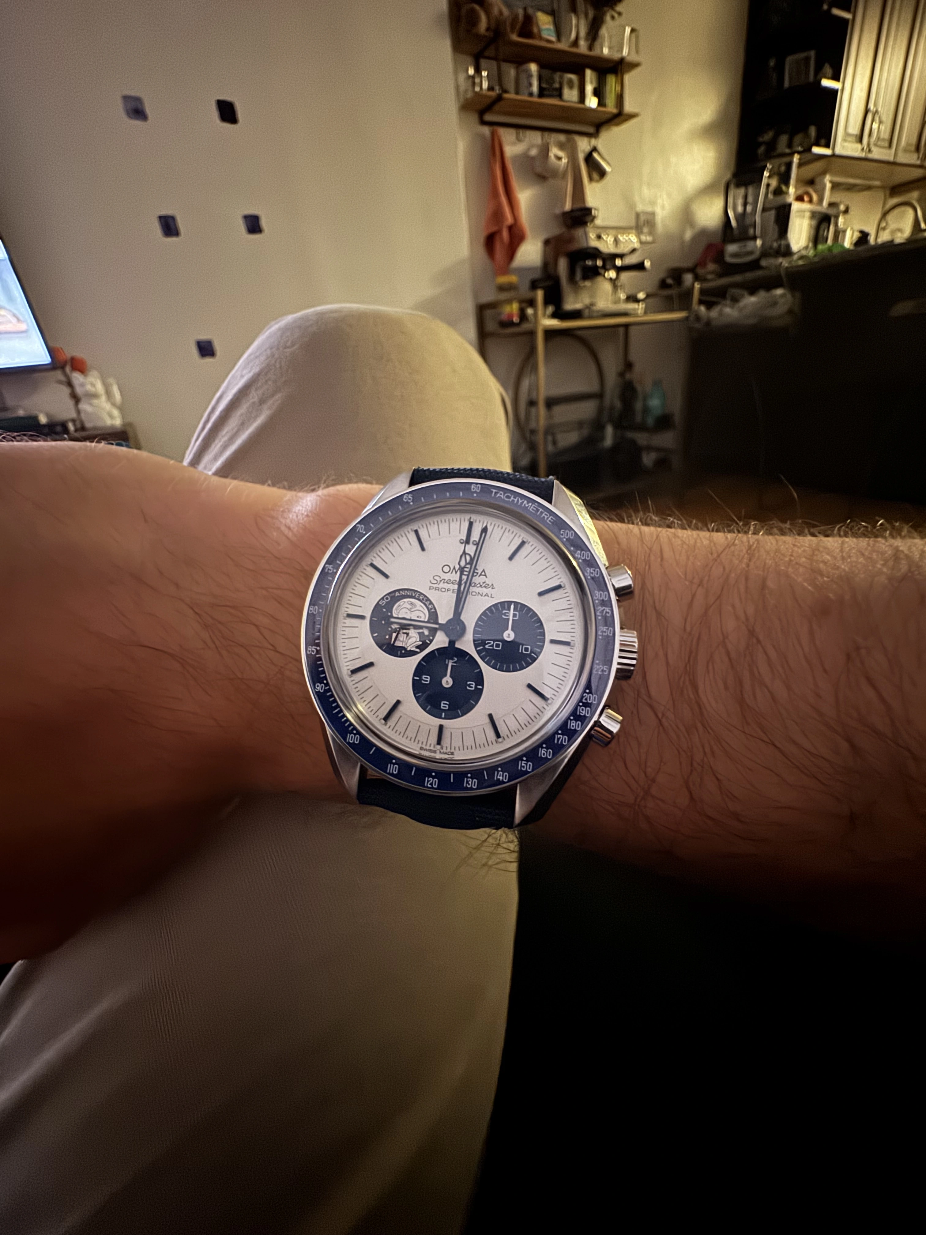 My 145.022 from 1969 with a JR dial/hands and bezel swap done a few years back. I first had it on a brown leather strap which looked “meh” at best. A maddening color mash-up… Then on to a Forstner mesh which was a good improvement. But I just now fitted the repro flat link bracelet, and it really brings it all together as a design “package” IMHO. Happy Speedy Tuesday.