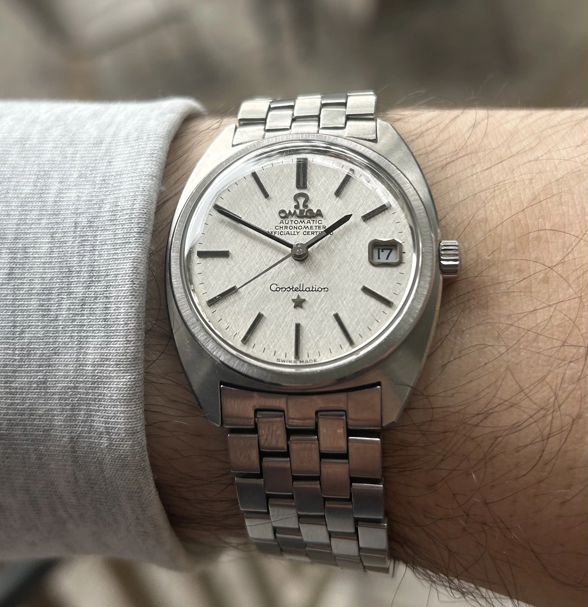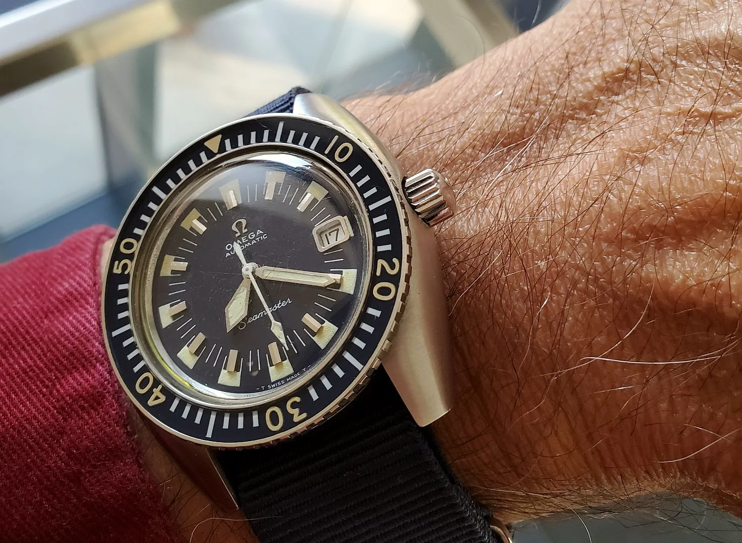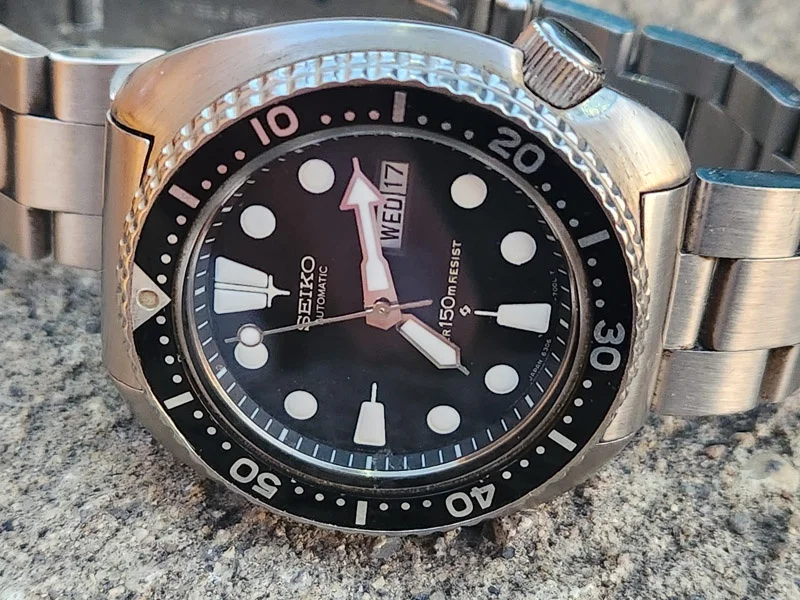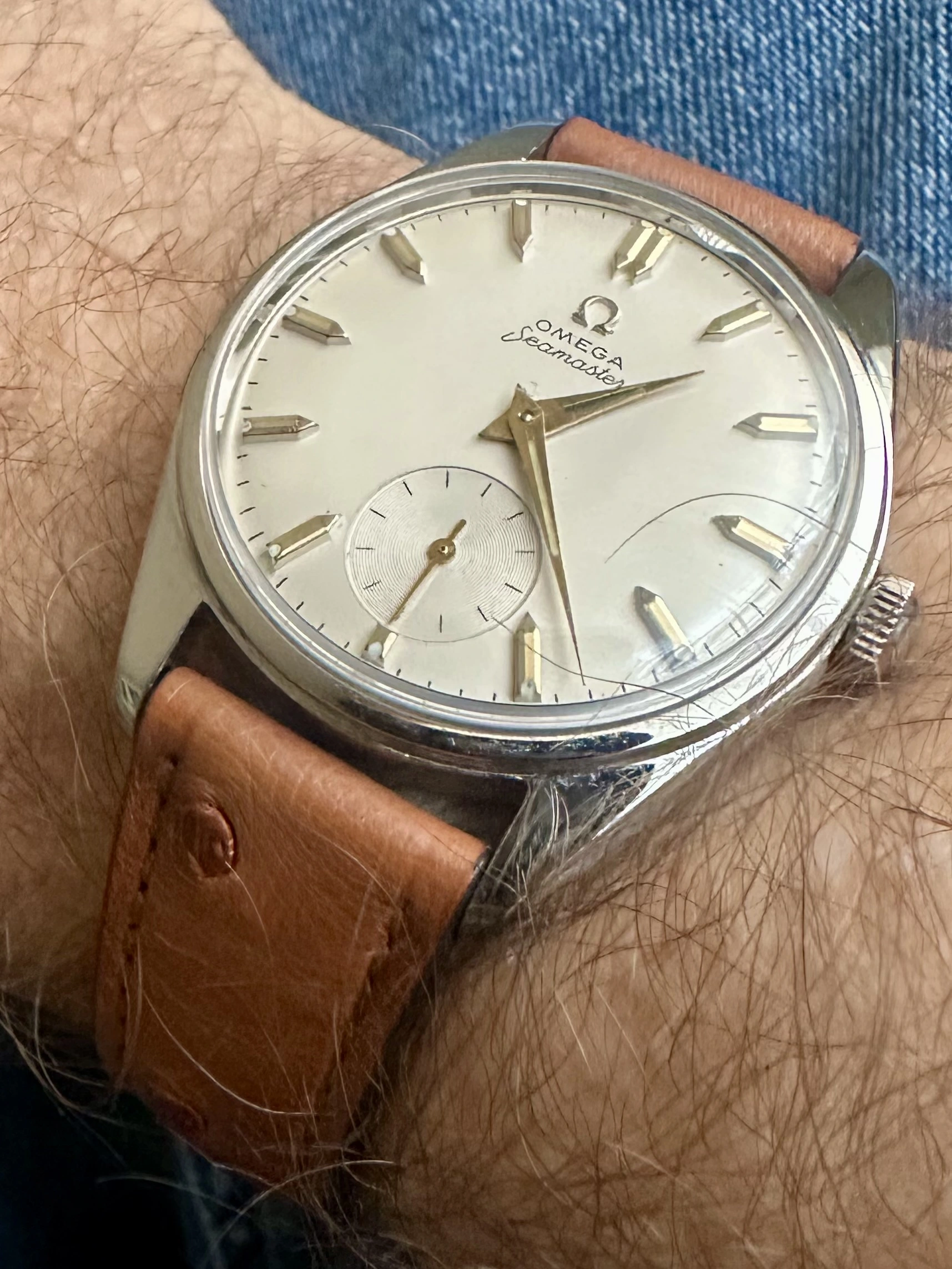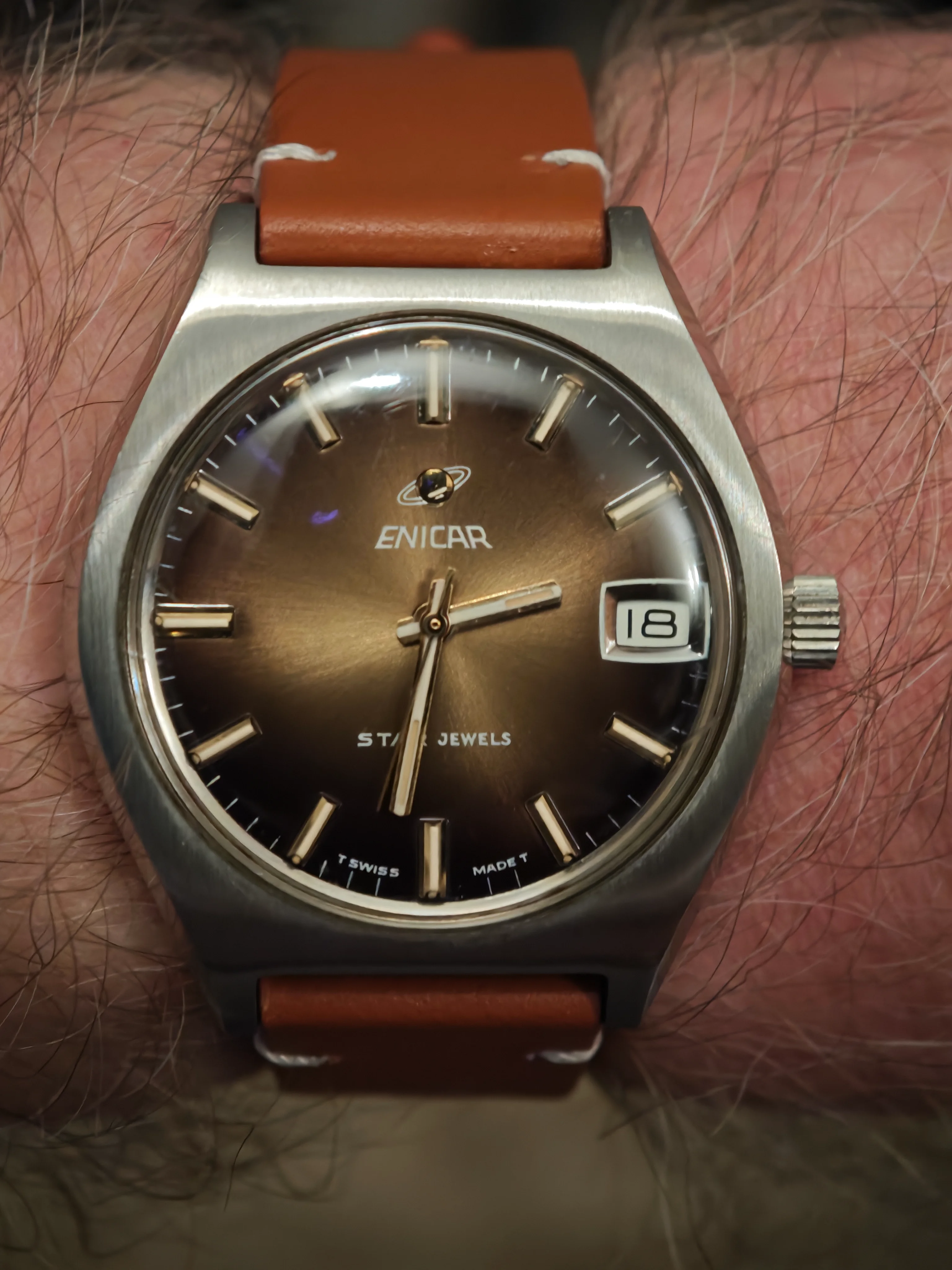 The 6th of my summer watch finds, what I believe to be a early 60's Girard Perregaux with a gyromatic movement. I bought it at the thrift shop for $5 because when I shook it the second hand started moving and I know this movement is highly respected and I didn't have one. Full disclosure: the minute hand doesn't consistently sweep as it has a loose cannon pinion. It will go to my semi retired and very reasonable watchmaker tomorrow. He still charges me $65 for automatic movement services. So, eventually I will have $70 in this watch, but I think it will be worth 3 times as much and still a good buy. I also think this dial and hands are very legible and the watch will be a keeper. Sorry about the long write up.