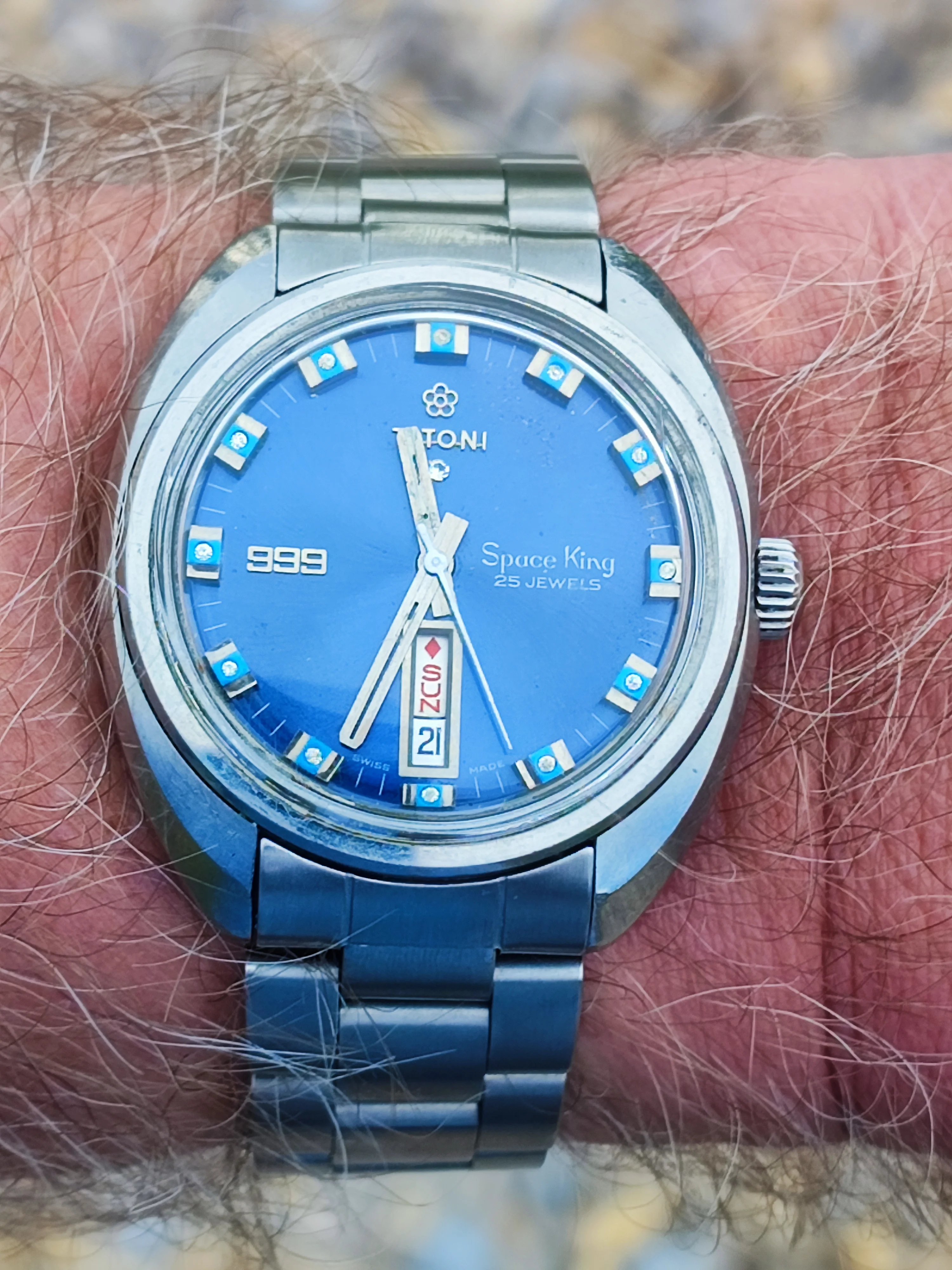 Posts 8,416 Likes 69,267 Spruce ·Sep 21, 2025·Sunburst dial fan Not mine, borrowed - and only for a short while. Closest I’ll get to wearing one ….