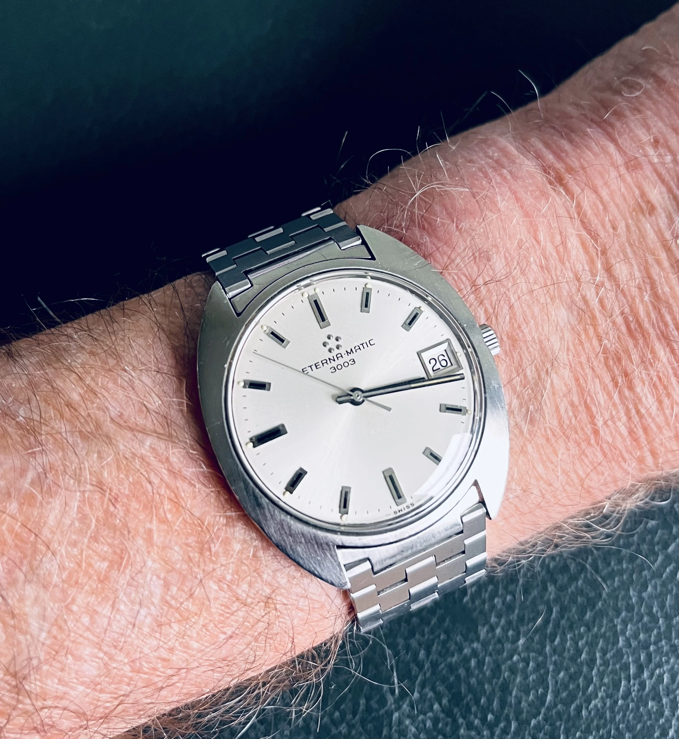 It's like new with original bracelet, but when I went to set the time the crown & stem pulled out.