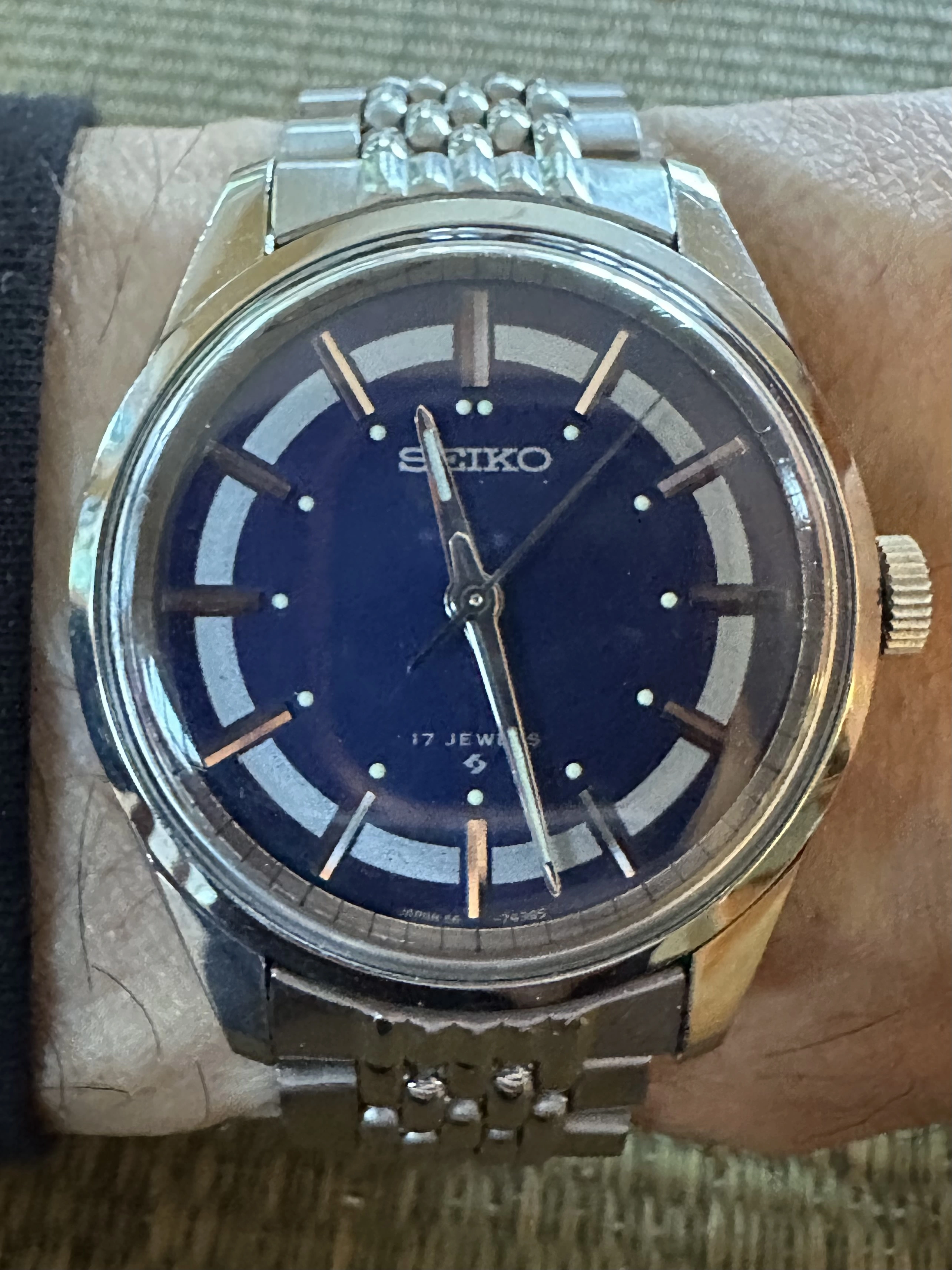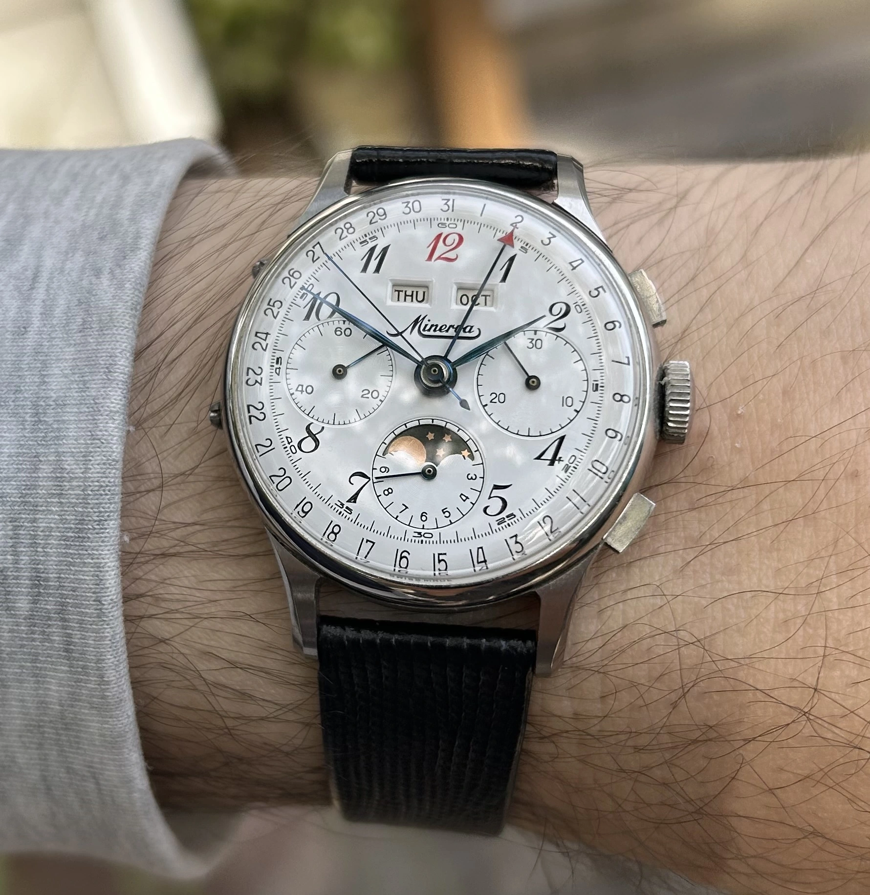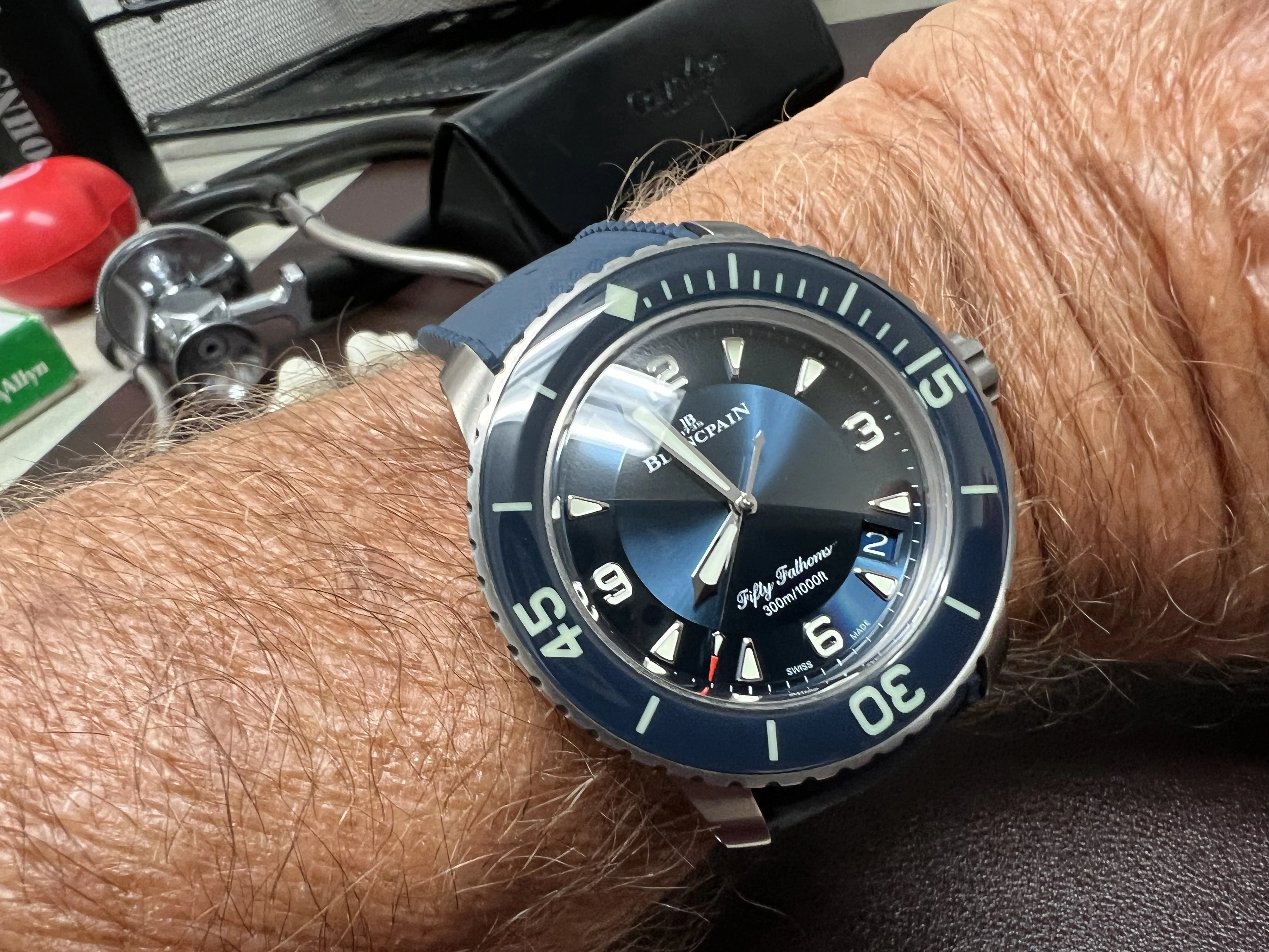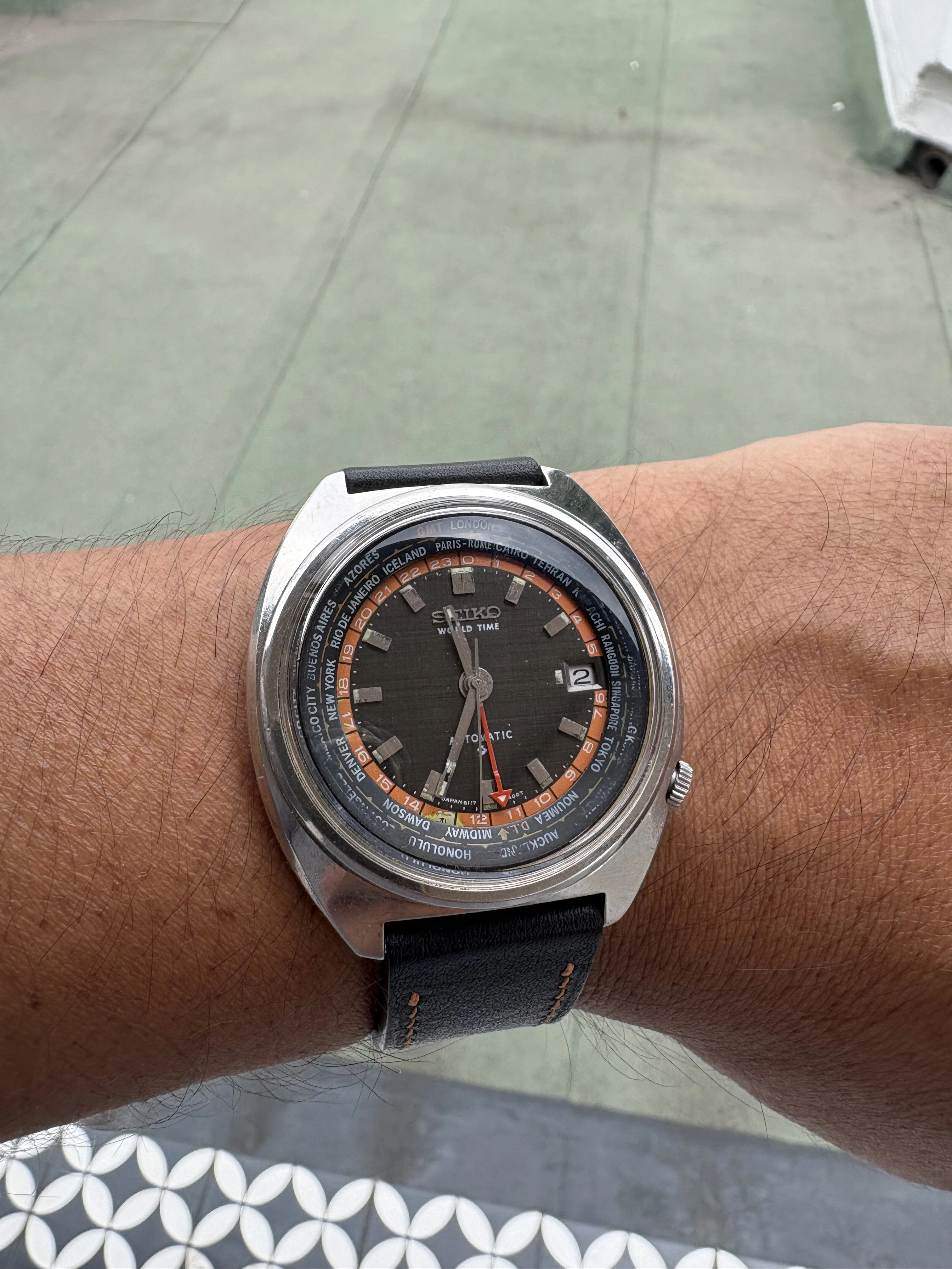 It came with a Longines black leather strap which never felt right and I’ve since tried it on a variety of colours and BoR bands and straps without feeling entirely happy with it.