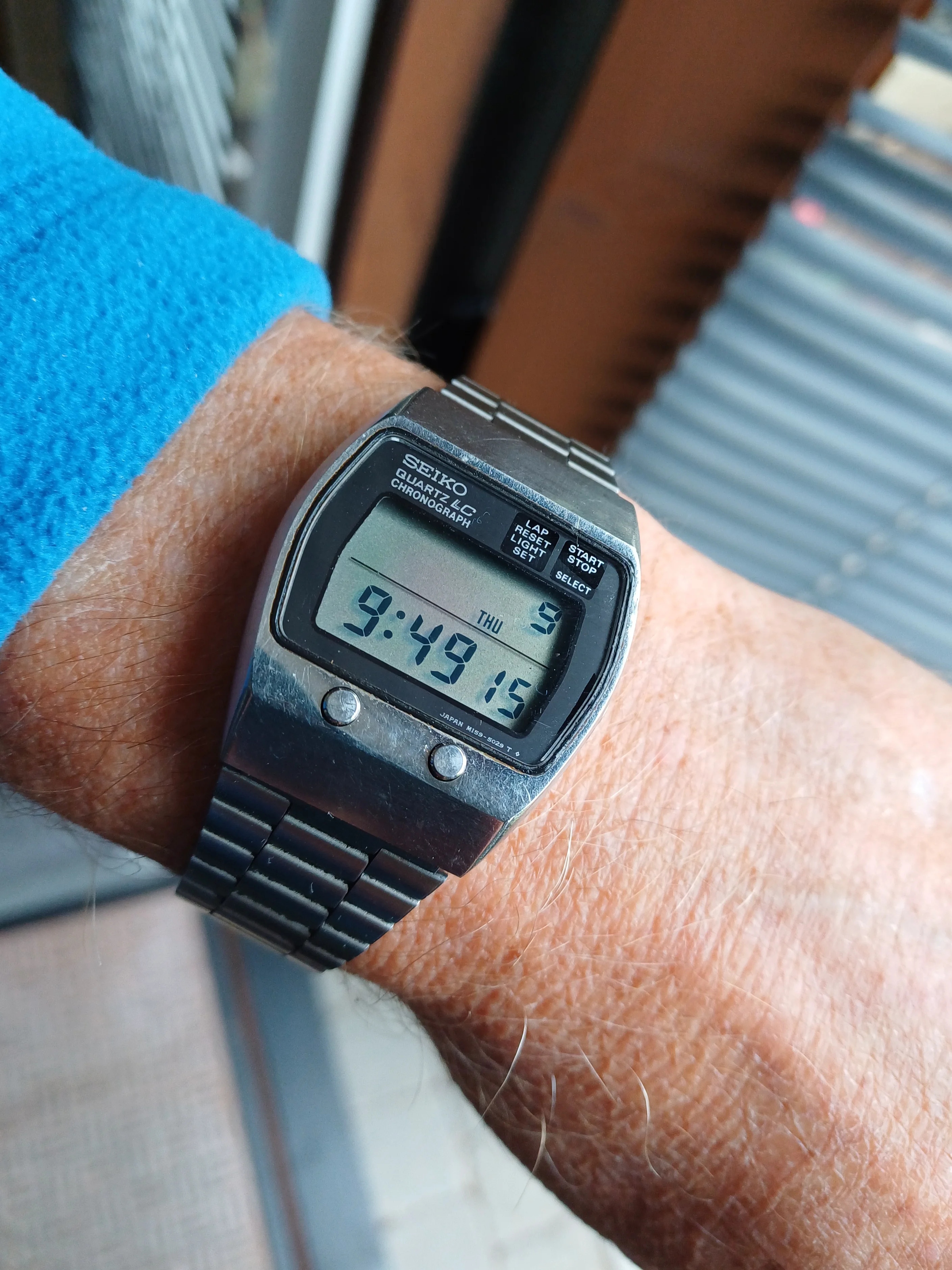 Not my watch but I quite like it , it's a Seiko LCD M159 5029 from Feb 77 & a work colleague asked if I could fit a new battery as it had sat in a draw for over 25 yrs unused ( He inherited it as part of his Uncles estate ) . Quite surprised it came back to life & all buttons & functions work including the backlight .