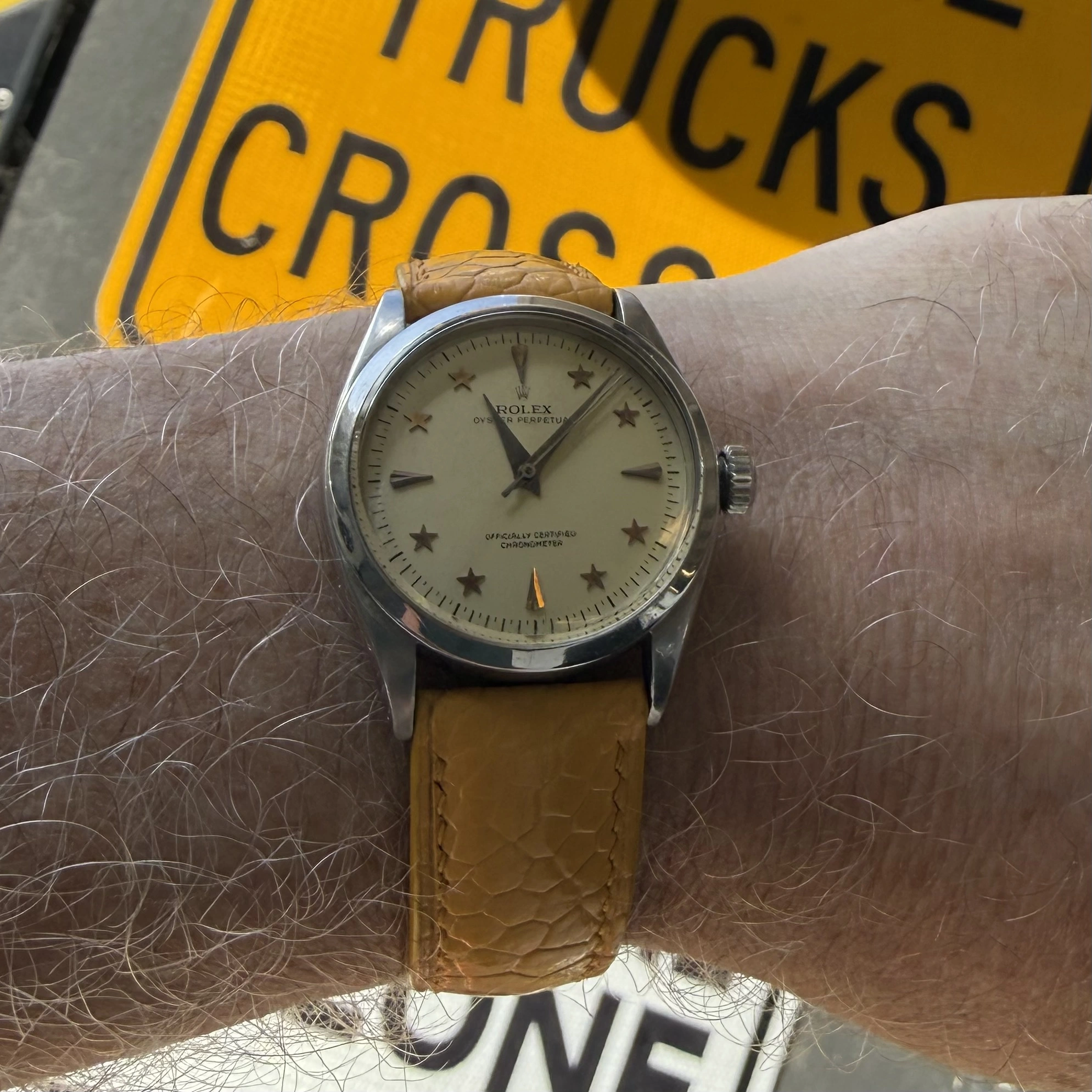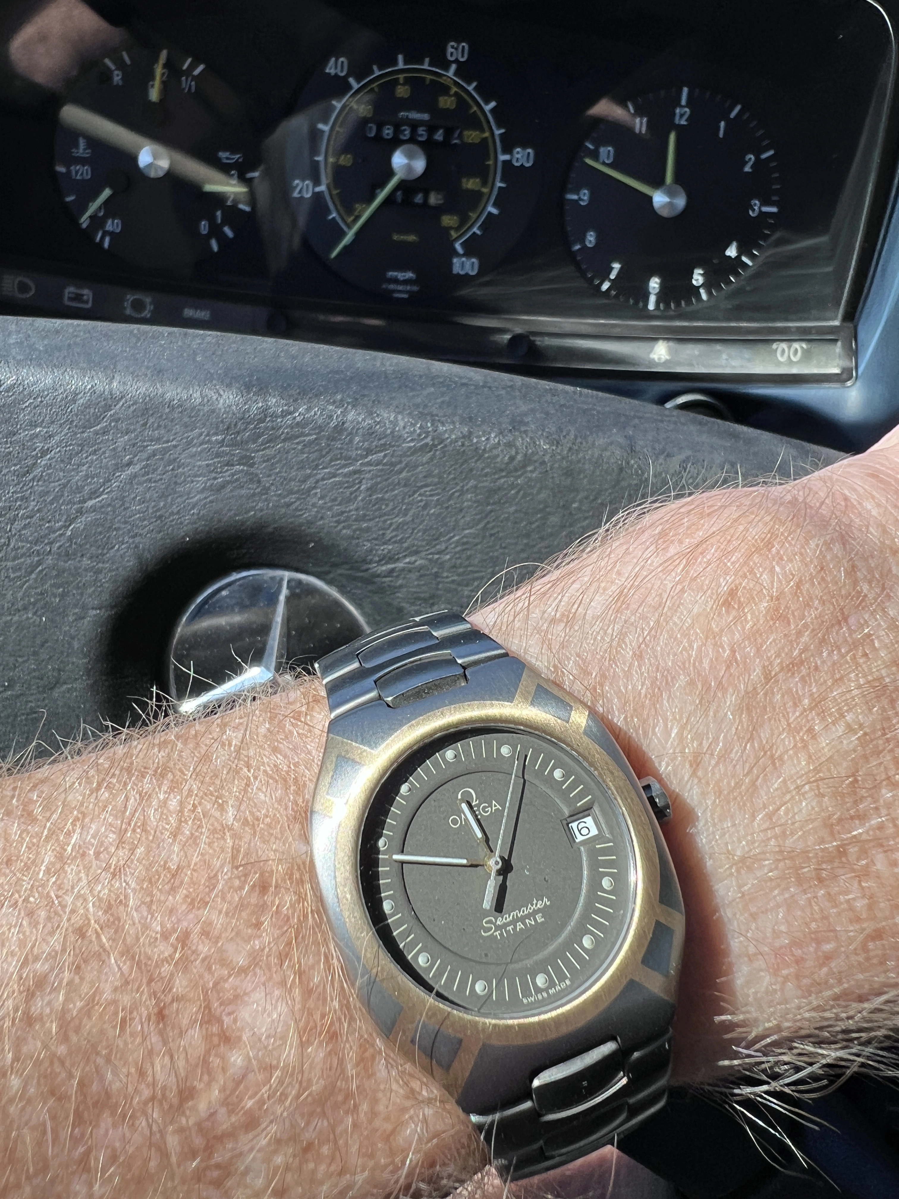 Channeling my inner 80s with an Izod shirt (not pictured), the 240D that my wife's dad bought brand new in 1982, and Omega's finest Gerald Gentra-designed quartz number (which was endorsed by John McEnroe ... who drove the development of my own game, if not my antics).