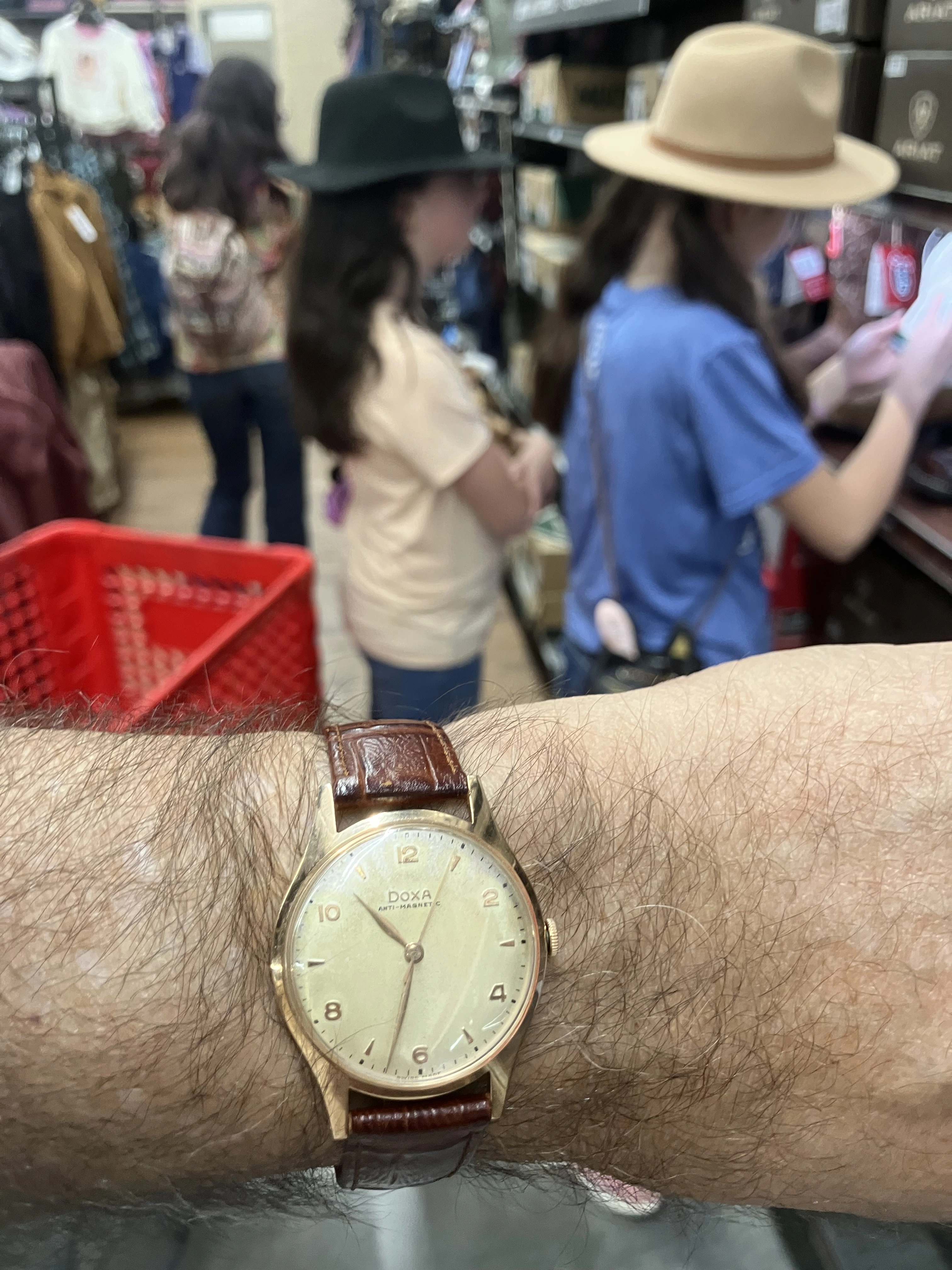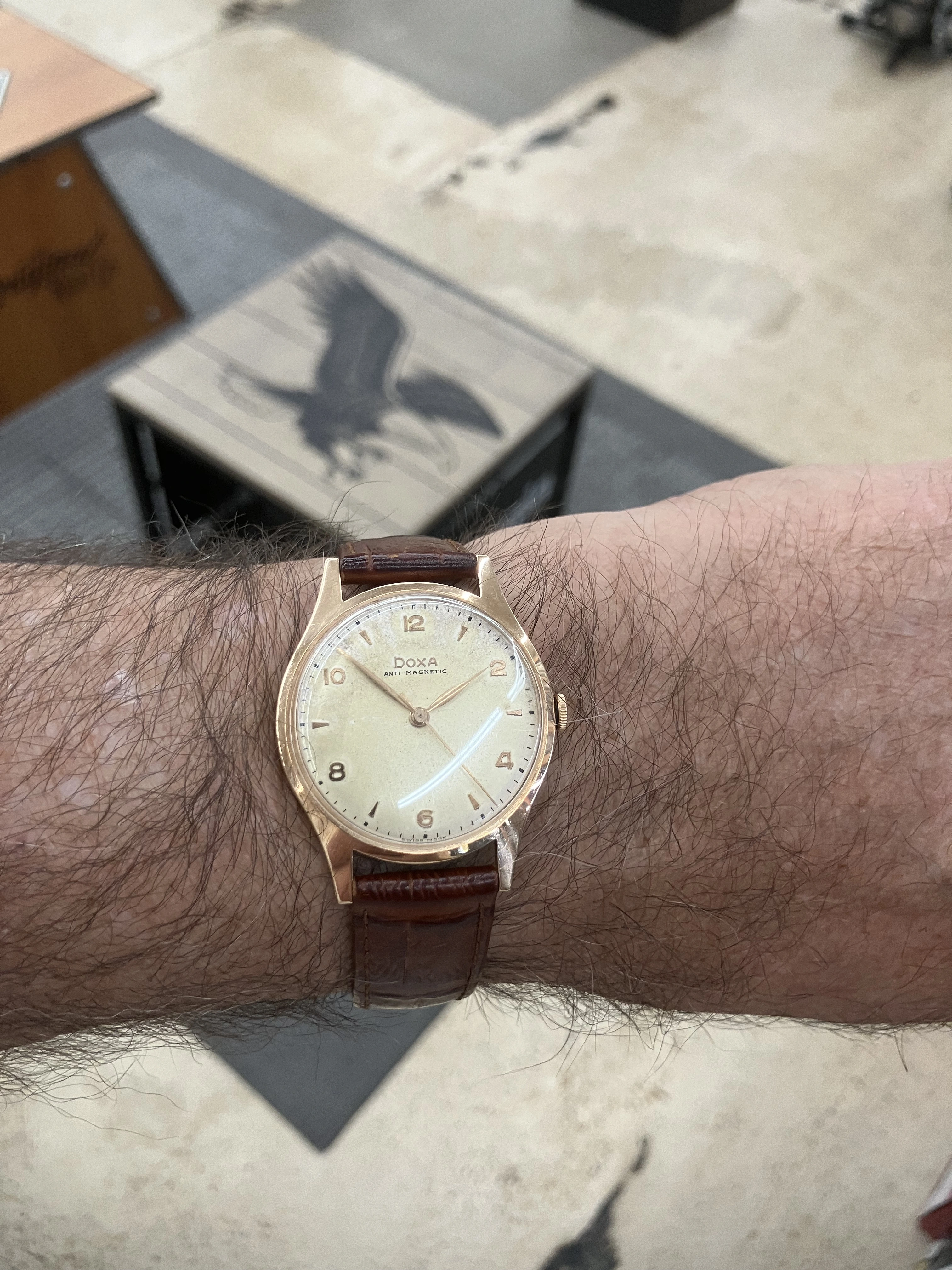 Old solid rose gold Doxa with aged dial. Not going to the scrappers while in my watch menagerie.