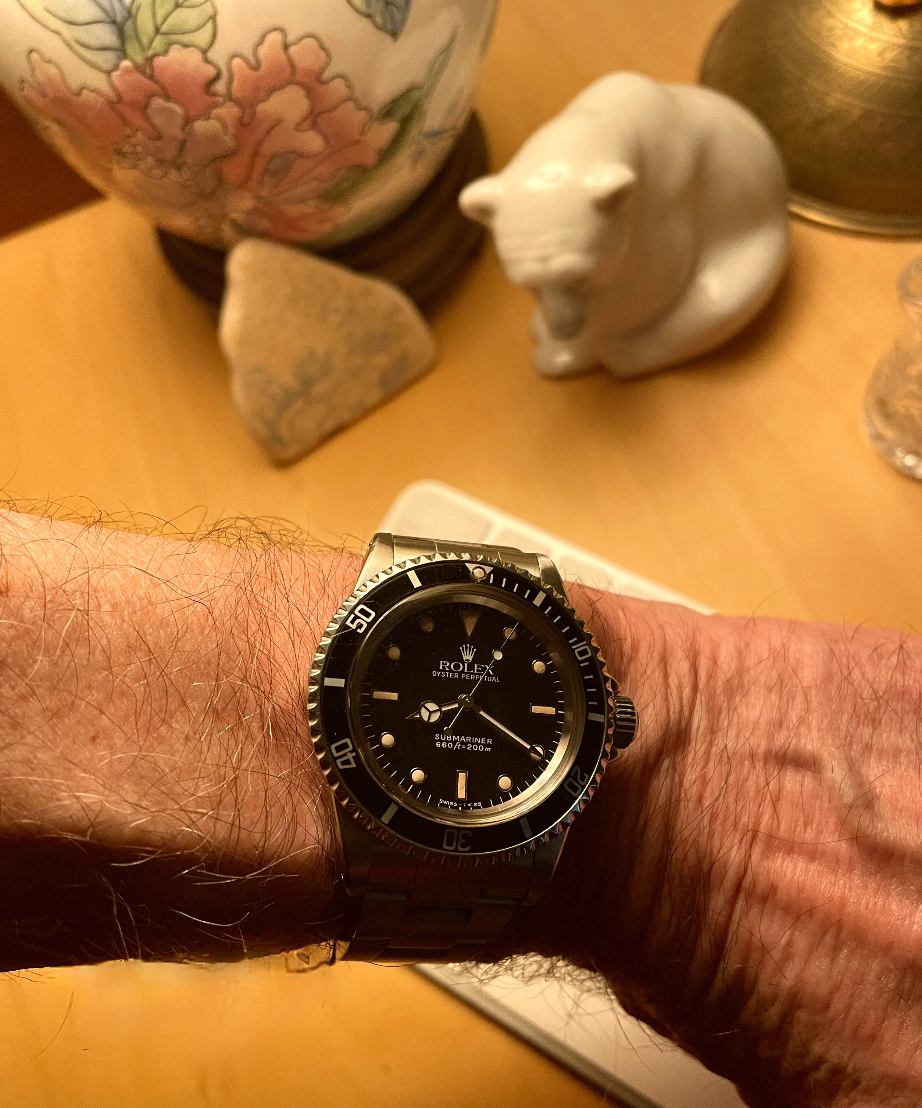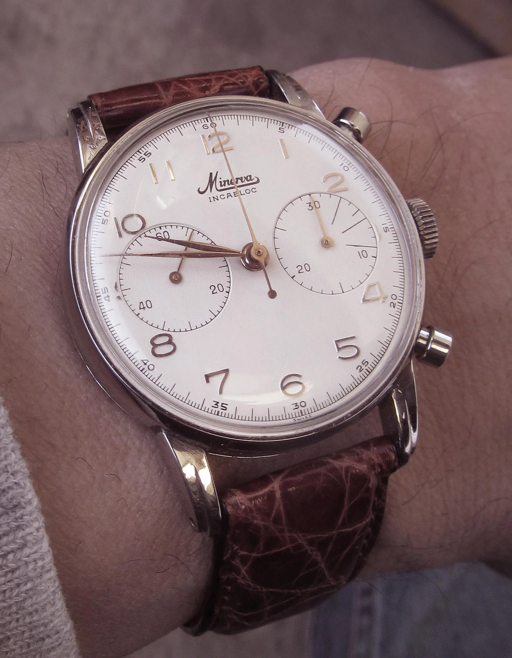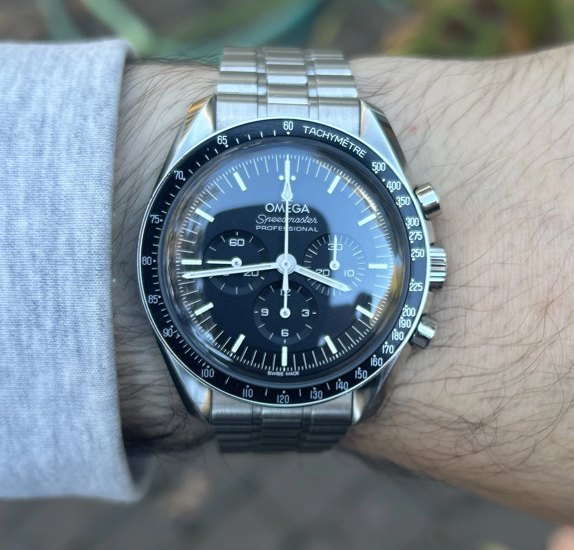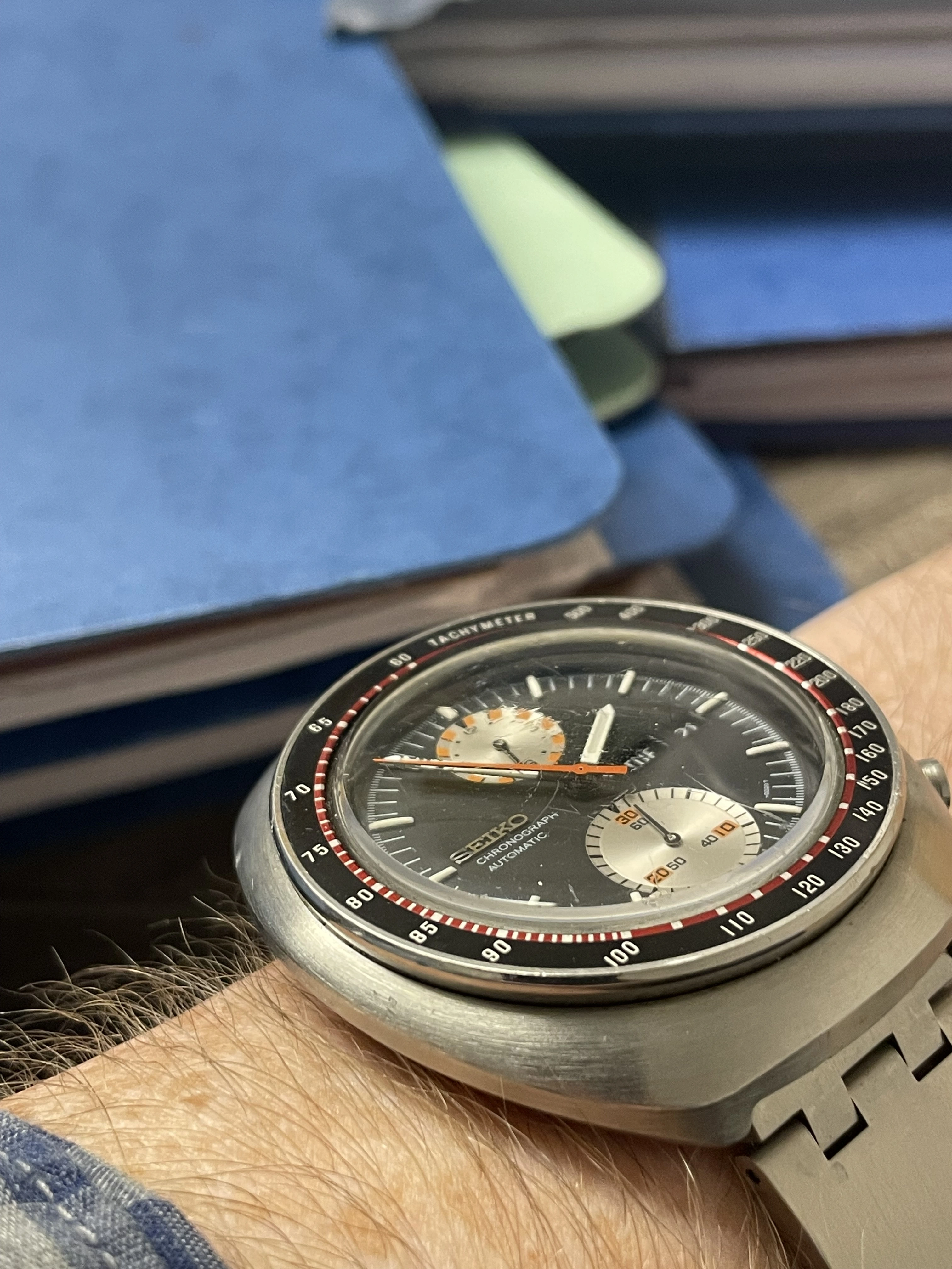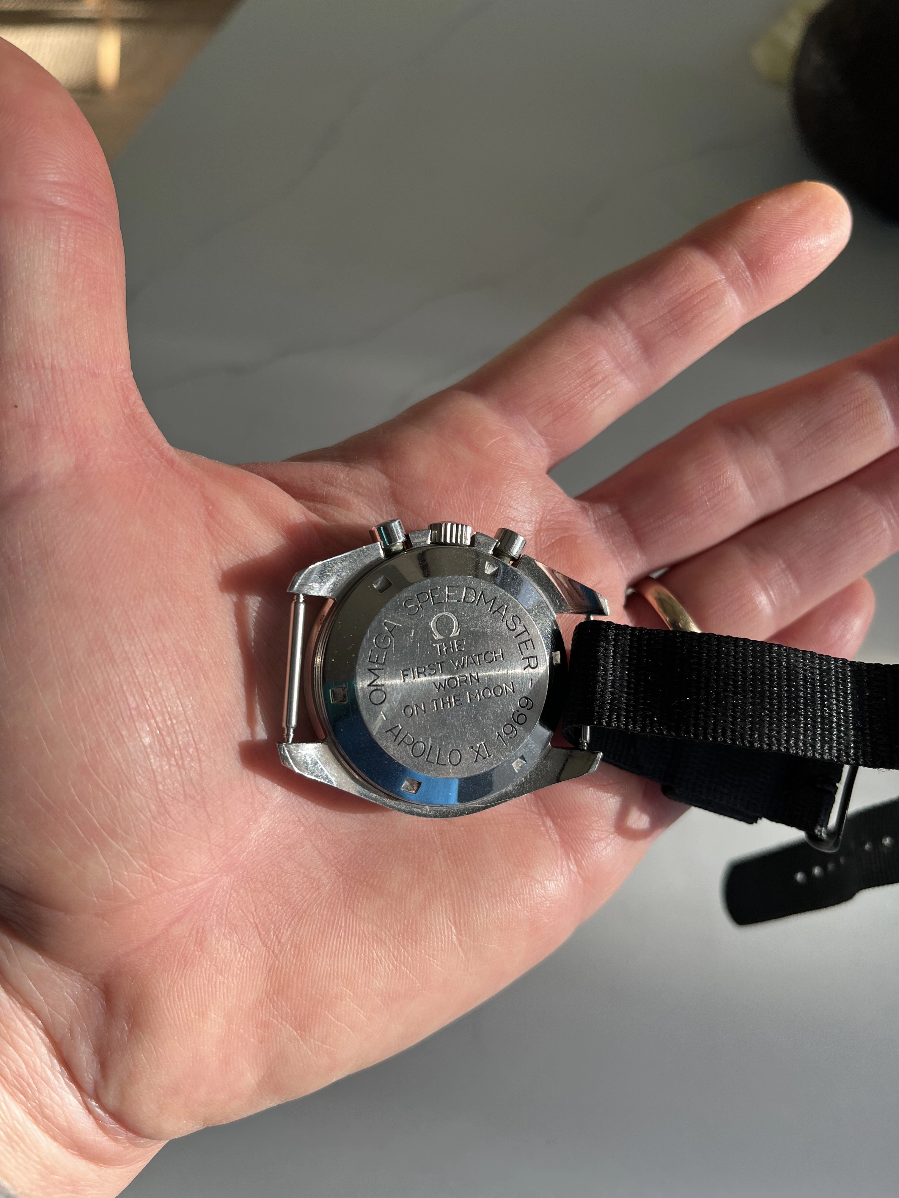 Time for a change from the two wrist watches I’d worn for a week or so (two Omegas as it happens). While rummaging through my collection, my eyes landed on my one owner (me) Speedmaster 345.0808. Why not, thought I? After all, it is Tuesday. I’ve owned this watch for 35 years, and only today, I spied an irregularity about it that would cause hand wringing among some collectors! Cudos to those who spot the irregularity!