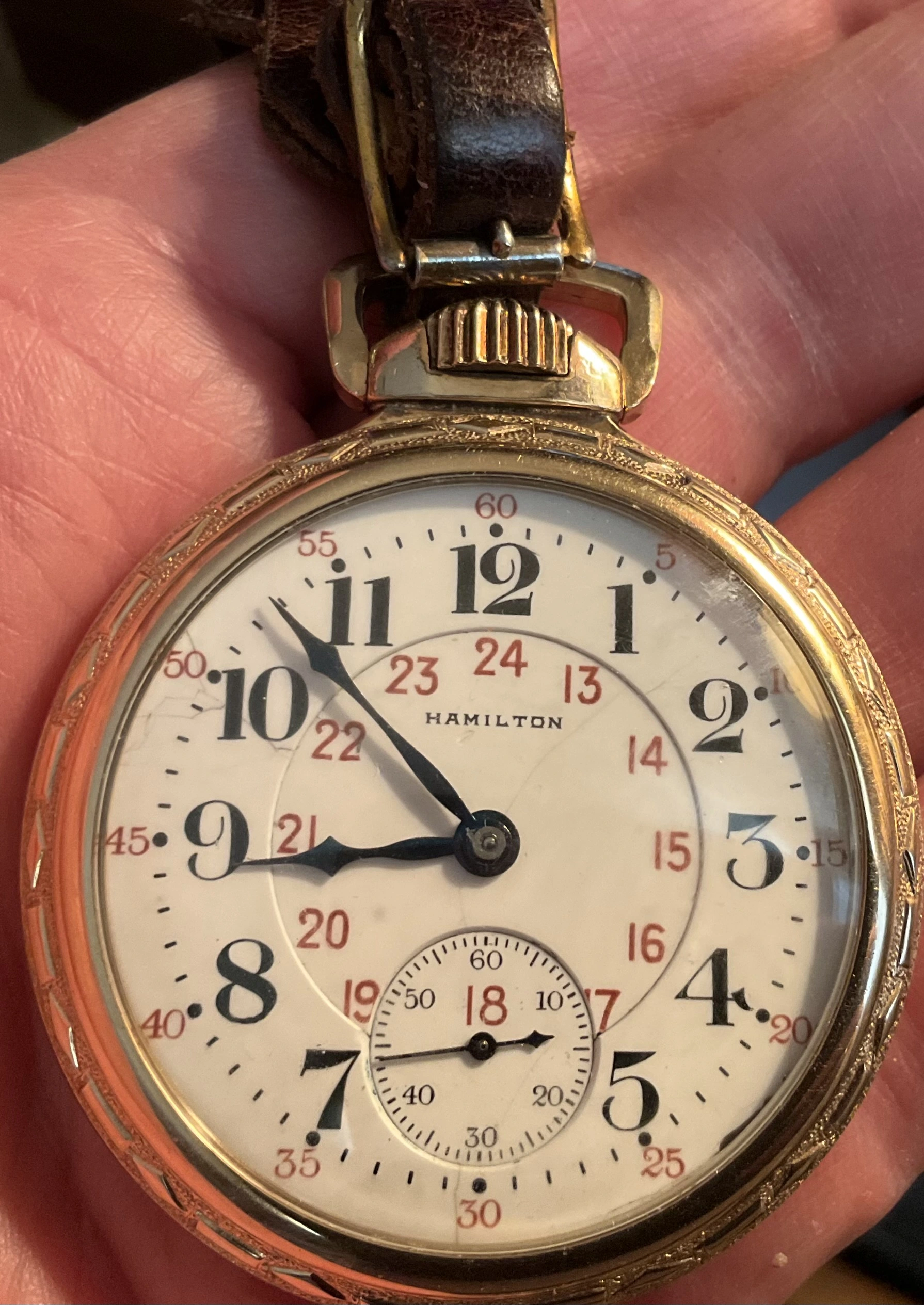 Posts 15,307 Likes 45,000 Canuck 路Oct 22, 2025 One of two today. My 112 year old Hamilton 992, serviced last week. On my @Duracuir1 leather lanyard. https://pocketwatchdatabase.com/search/result/hamilton/1321738