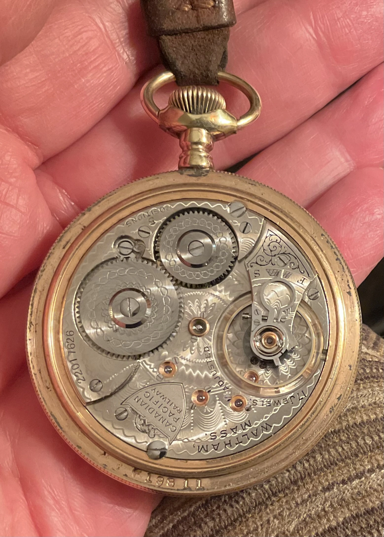 Today, and for the last 7 1/2 days, either stationary, face up for 12 hours, or in my watch pocket for 12 hours. It is 20 seconds fast, today. Pretty good for a 117 year old watch that the guy I bought it from, didn’t want! That is a gain of less than ~ 3.75 seconds per day. 1 of 2,500 CPR, 17-jewel, lever set, 1892 Walthams produced.